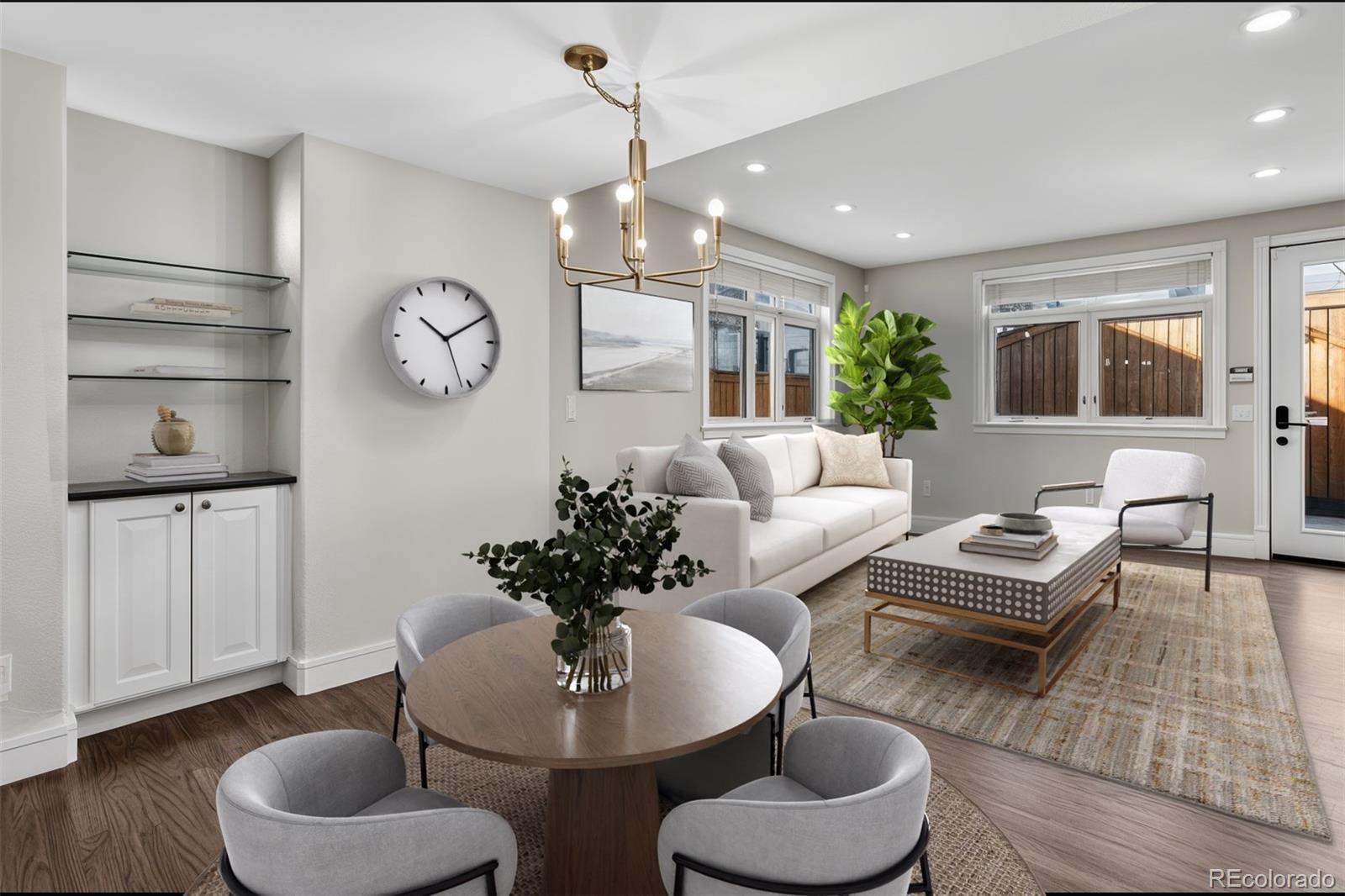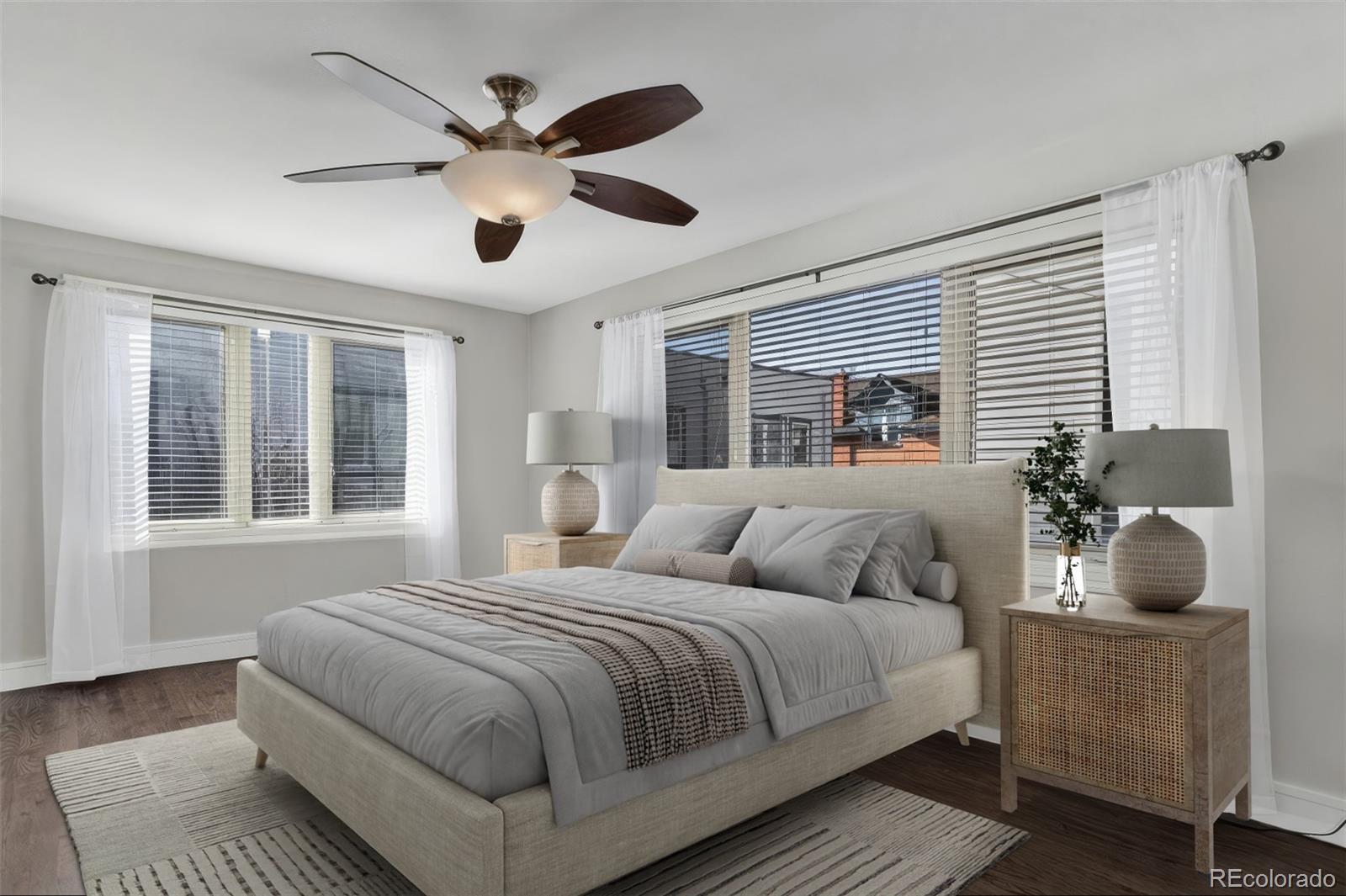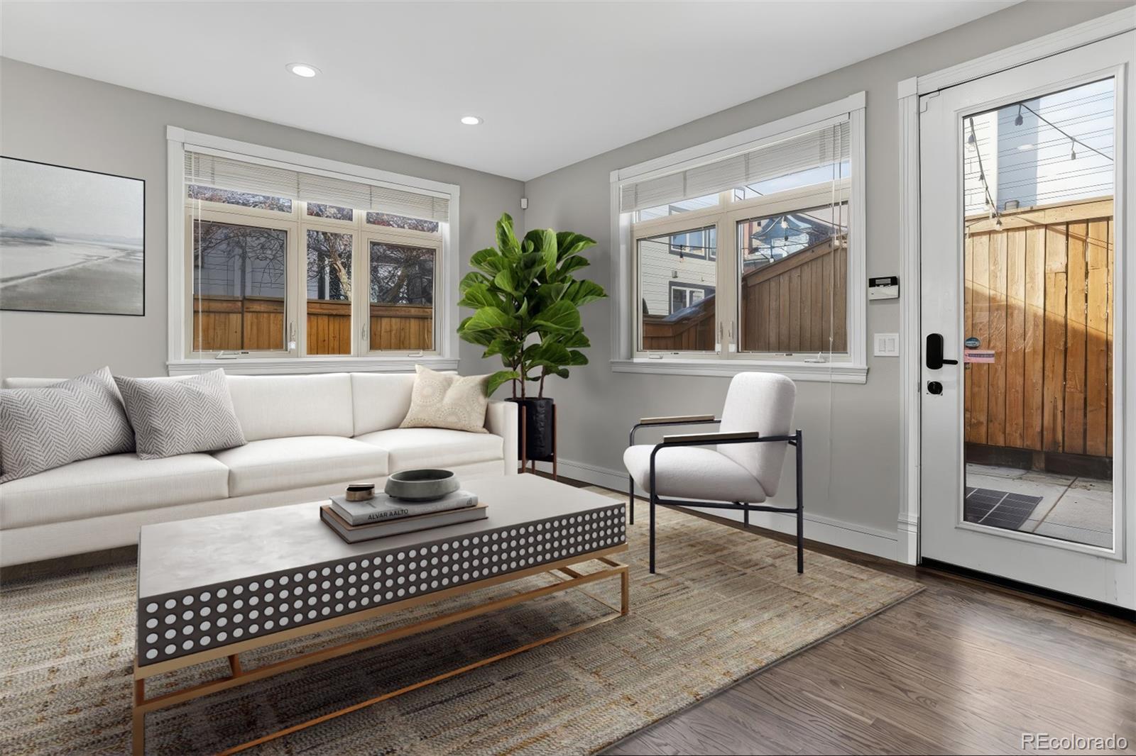 Claim your stunning row house in Jefferson Park, where abundant natural light fills the space through numerous large windows in this end unit. Ideally located across from Jefferson Park and just a short stroll from a variety of restaurants and entertainment options, this home boasts a remodeled kitchen, a central vacuum system, two modern fireplaces, hardwood flooring throughout, and stylish, upscale light fixtures. This residence features two primary suites, each with spacious ensuite bathrooms. The finished basement offers a spa-like bathroom, an additional bedroom for extra comfort, and a second living area. You'll love the generous closet space, ample storage options, and a serene patio perfect for enjoying the delightful Colorado weather. Additionally, benefit from two separate detached garages and plenty of street parking.