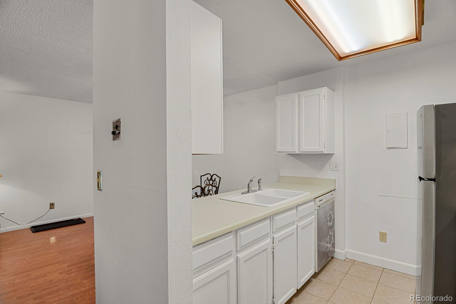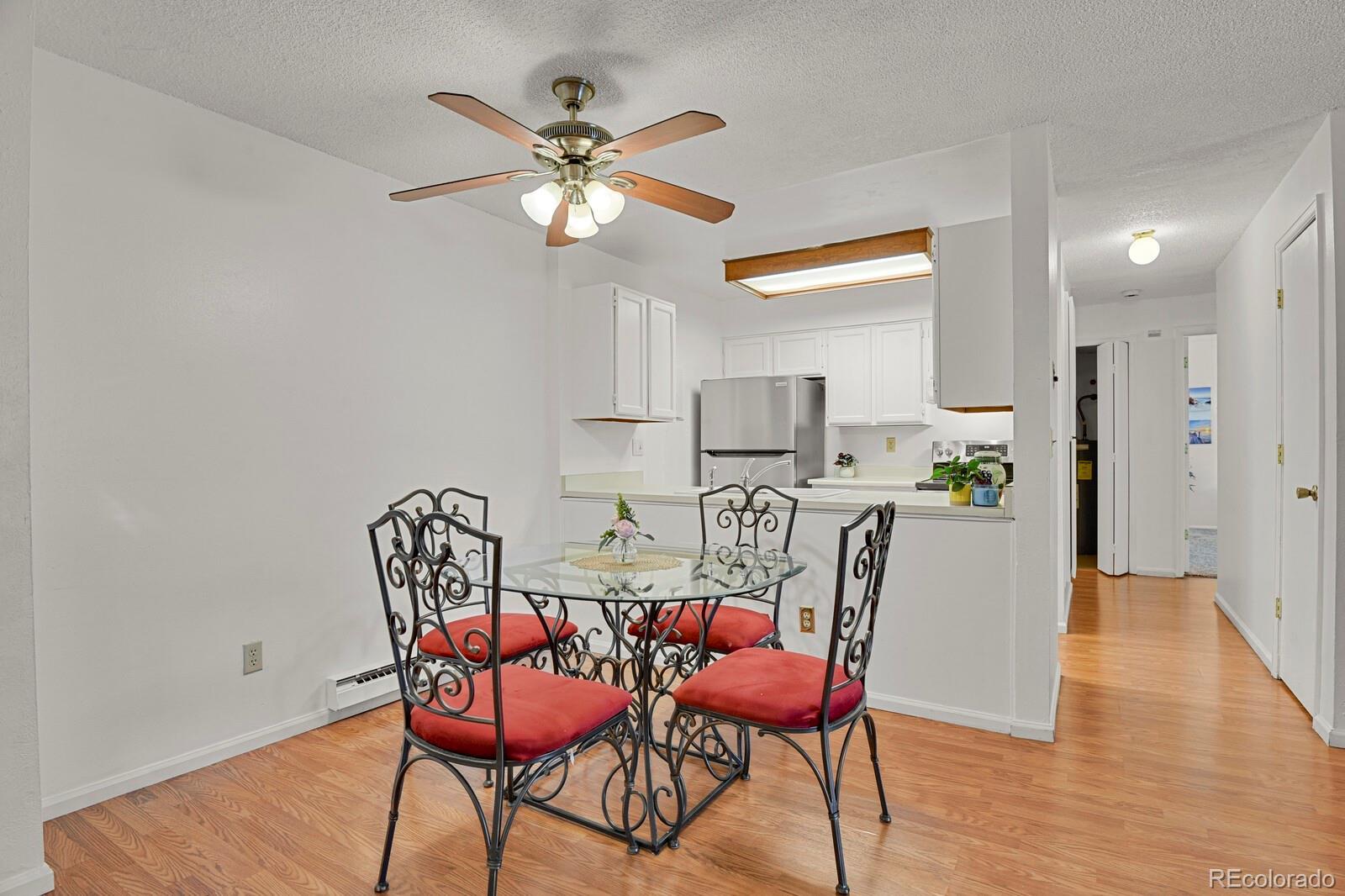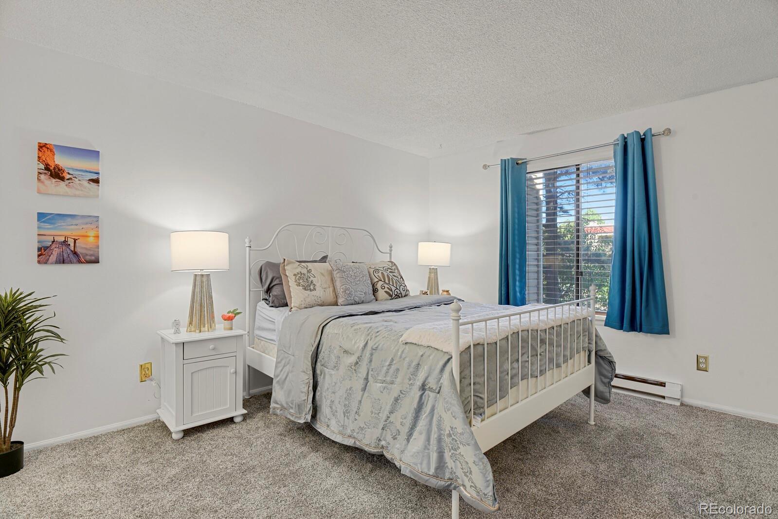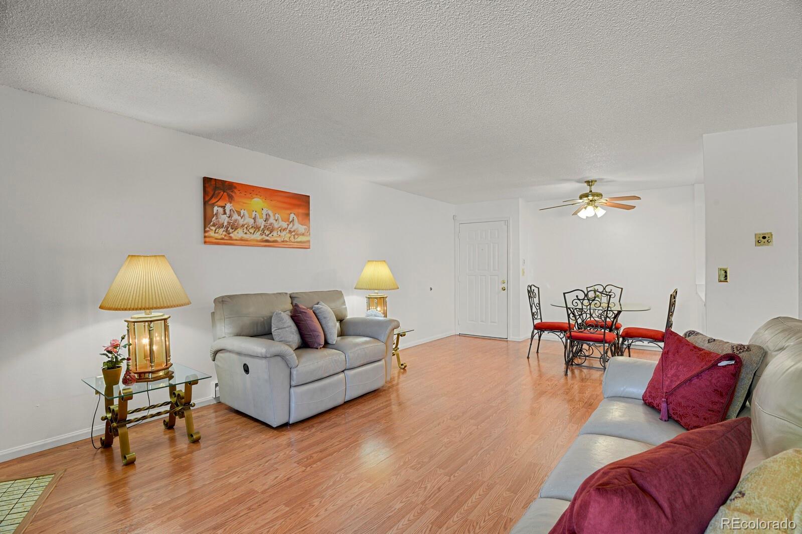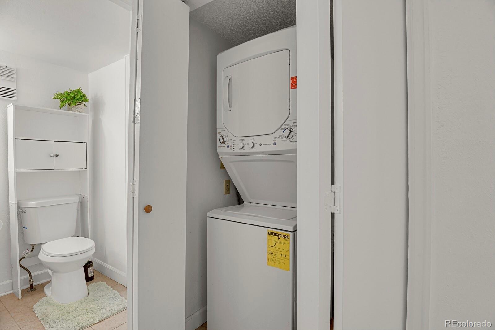 Welcome to this updated condo offering both comfort and convenience in a desirable community. Fresh paint and new carpet create a bright and welcoming feel throughout. The spacious living room features a wood-burning fireplace and opens to a large balcony overlooking the courtyard where you can enjoy morning coffee or evening relaxation, complete with a huge storage closet. The kitchen boasts a new stainless steel refrigerator and double oven with air fryer for the chef in the house. It connects to the dining area, where a ceiling fan adds comfort. A stackable washer and dryer are included for everyday ease. The spacious primary bedroom offers two closets and full bath, the second bedroom has a new a/c and easy access to a jack-and-jill style bathroom. This secure, elevator-access building is part of a pool community, with water and trash service included. With its thoughtful updates and community amenities, this condo has a one year transferable Home Warranty for your peace of mind and is move-in ready and waiting for you to make this your home! This condo is near Settler's Park, a beautiful park featuring picnic areas, open green space, and a playground. It is also conveniently located with easy access to I-225, the Anschutz Medical Campus, nearby shopping and dining options, and Buckley Air Force Base.