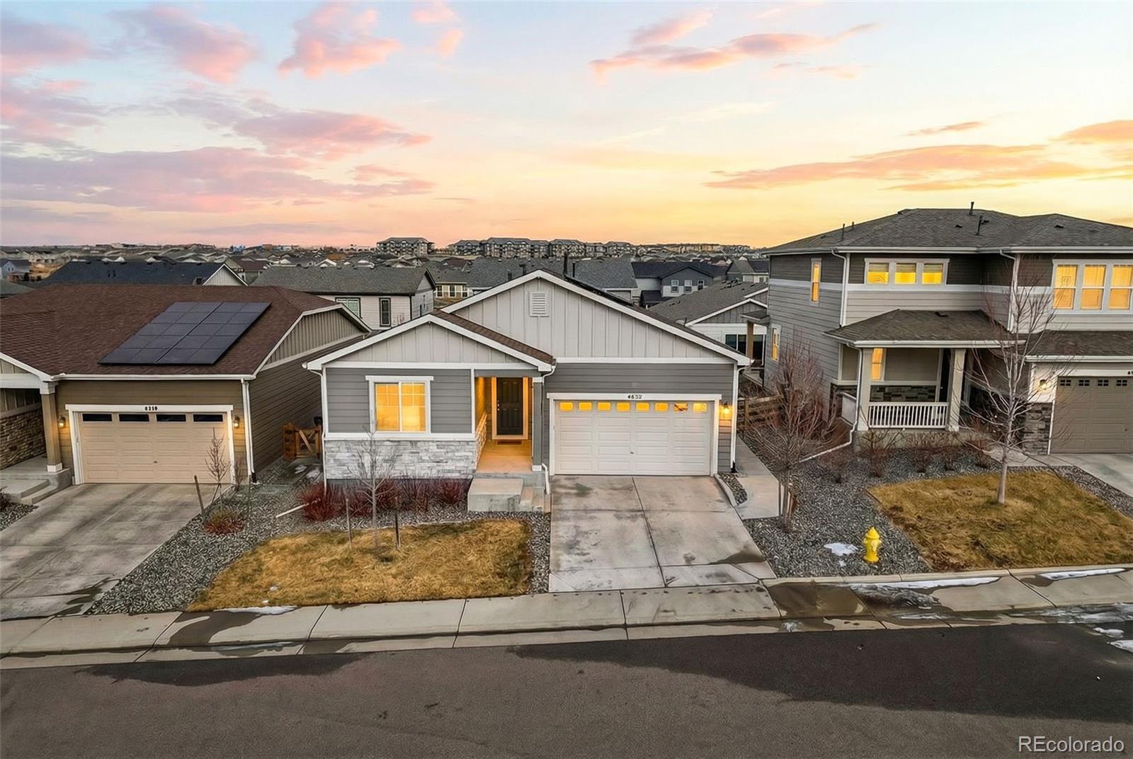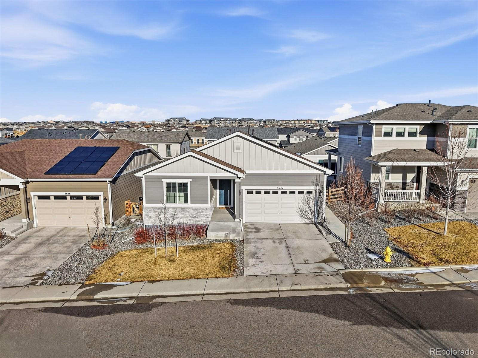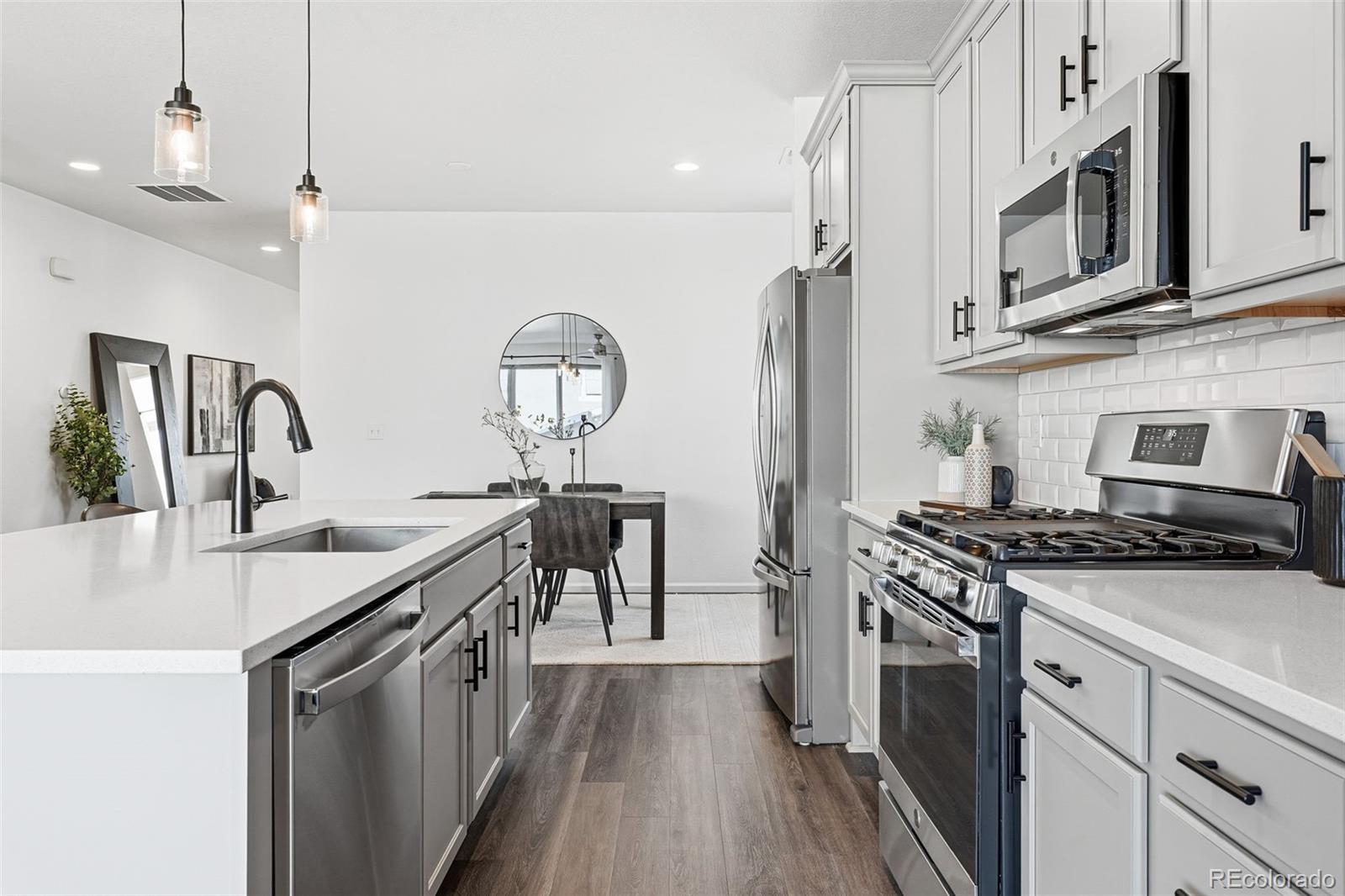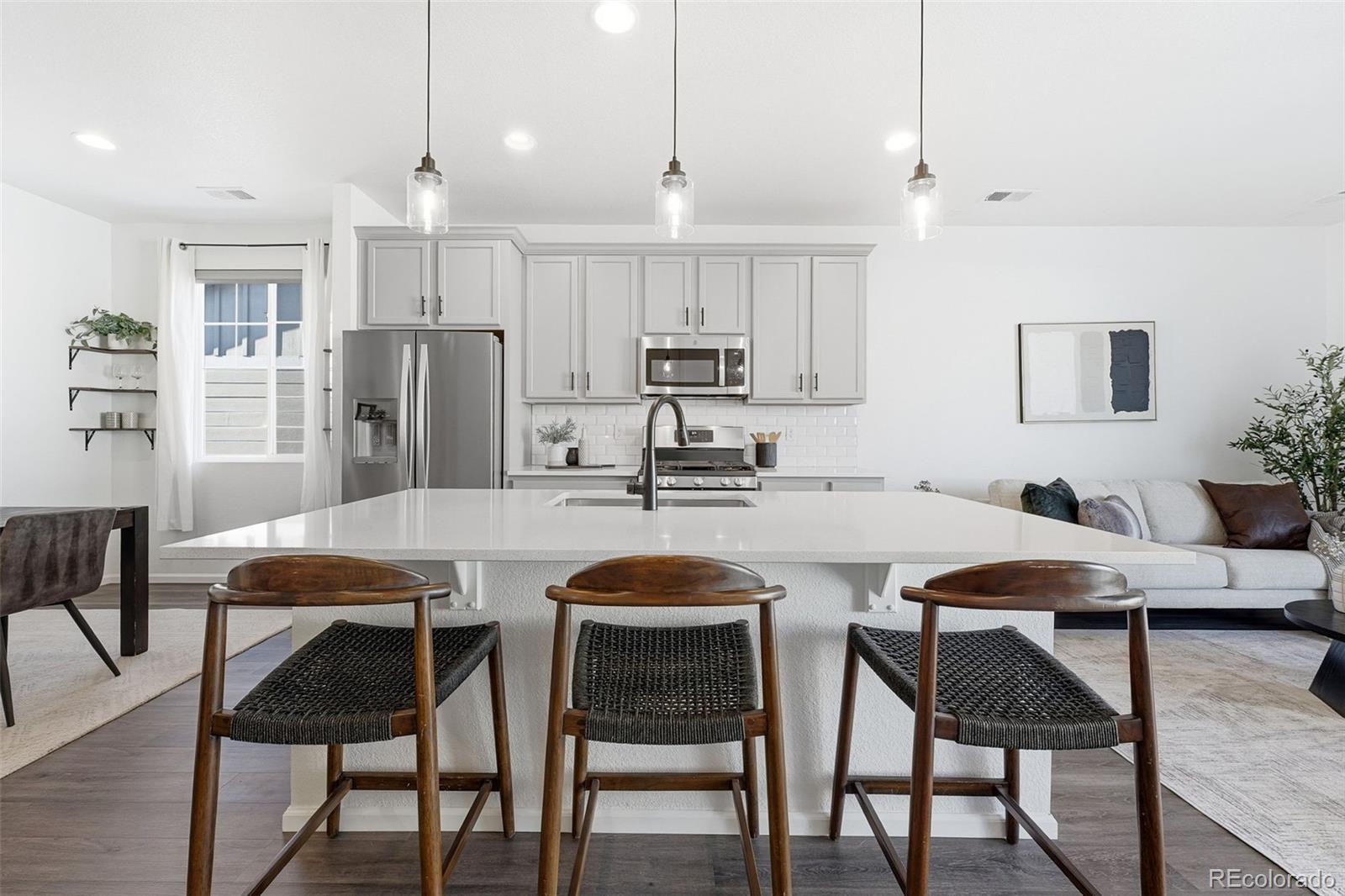 Experience the epitome of modern elegance in this pristine, newer-built residence where sophisticated design meets effortless functionality. From the moment you step inside, the expansive open-concept floor plan draws you in, showcasing a seamless flow accentuated by high-end finishes and an abundance of natural light. At the heart of the home, the chef-inspired kitchen serves as both a culinary sanctuary and a social hub, featuring stunning quartz countertops, upgraded cabinetry, a custom backsplash, and premium stainless steel appliances. Whether you are hosting an intimate dinner or enjoying a quiet morning coffee, this space radiates contemporary luxury. Designed for a high-quality, low-maintenance lifestyle, this property is the ultimate lock-and-leave solution for those who value both comfort and freedom. The interior layout is thoughtfully curated to include three generously sized bedrooms, headlined by a true primary suite that serves as a private retreat, complete with a massive walk-in closet and a spa-like ensuite bathroom. An additional dedicated office nook provides the perfect quiet corner for remote work or creative projects. Sustainability meets savings with an integrated solar lease, specifically designed to reduce monthly utility costs while minimizing your environmental footprint. Situated within the acclaimed Cherry Creek School District, the location offers unparalleled community perks, including access to a sparkling pool, a modern clubhouse, and a vast network of trails. Adventure is always nearby with the scenic beauty of Cherry Creek State Park and Quincy Reservoir just a short drive away. When you crave urban excitement, the premier shopping, diverse dining, and vibrant entertainment of Southlands are only minutes from your front door. This home is more than just a place to live; it is a gateway to a balanced life of convenience, recreation, and style.