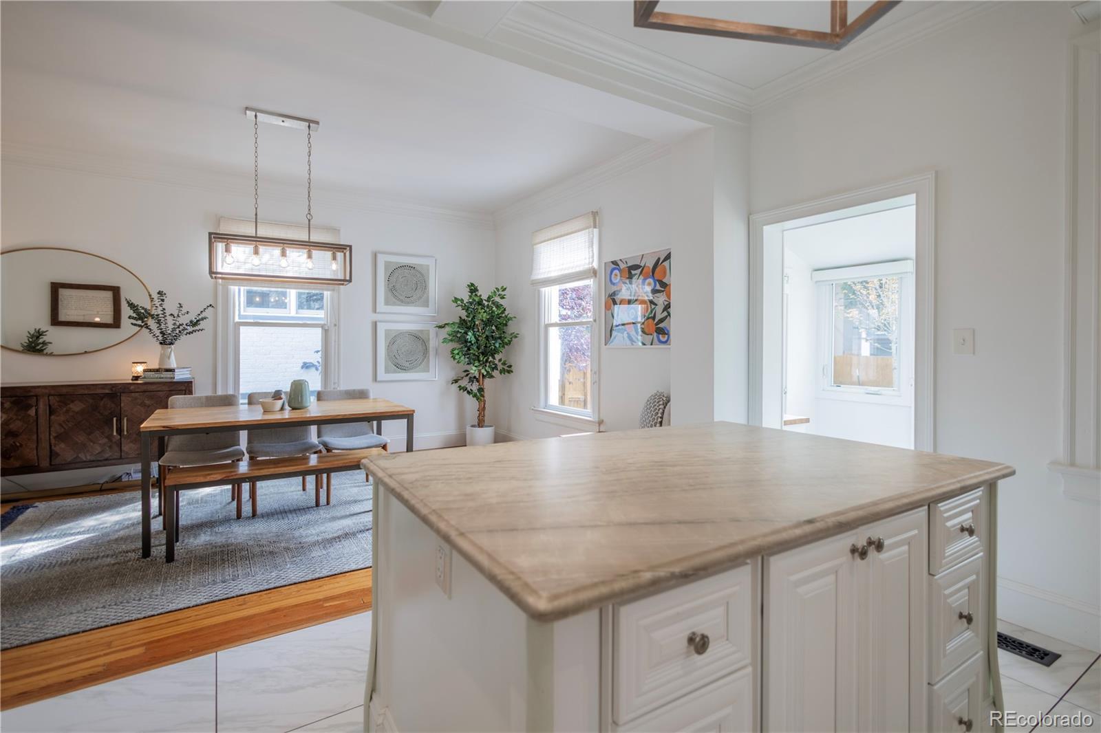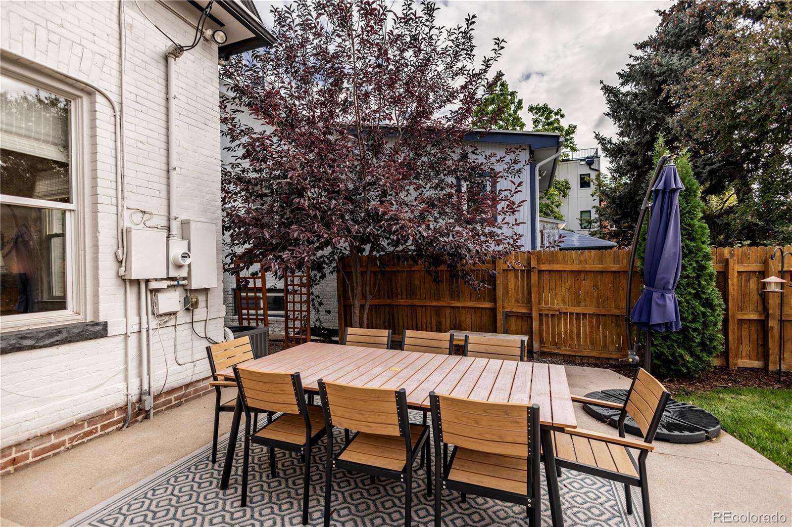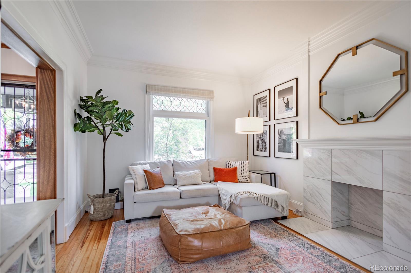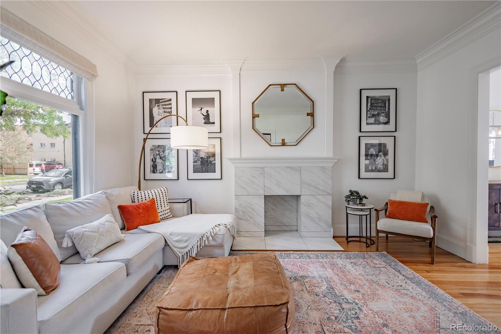 Step into timeless elegance with this masterfully restored 19th-century Victorian home, where historic charm meets modern sophistication. From the moment you enter into the grand foyer, you’ll be captivated by the classic architecture, soaring ceilings adorned with crown molding and artfully tiered trim. Original woodwork has been lovingly preserved, creating a warm, character-rich backdrop throughout the home. A fully renovated kitchen that seamlessly combines timeless elegance with modern convenience is a chef's dream. This space features a central island, marble countertops, stainless steel appliances, and a built-in beverage fridge. Just off the kitchen, an inviting dining room awaits, adorned with classic crown molding and bathed in natural light while a decorative fireplace serves as stunning feature in the living room. A dedicated main floor office space is situated at the back of the home. Upstairs, the primary suite is complete with open concept custom closets, a luxurious walk-in shower and a double sink vanity. Two additional bedrooms, each with spacious walk-in closets, are located on the second floor and are complemented by a beautifully appointed full bathroom. The basement has been thoughtfully expanded and structurally reinforced. Although the basement is considered unfinished, it has been furnished and adds 600+ square feet of additional living space. With soft carpeting, a large egress window, a dedicated laundry area and a rough-in for a future bathroom, this space is ready for your finishing touches. Outside, you are sure to enjoy the private oasis in the city. The oversized patio, tucked away side yard retreat, mature trees and grass area is a perfect place to spend the weekends. A spacious 2-car detached garage plus a 1-car off-street parking space is ideal for city living. Located minutes from Cherry Creek, Wash Park, local shops, restaurants and schools. This is more than a home—it’s a masterpiece of historic preservation and modern luxury.