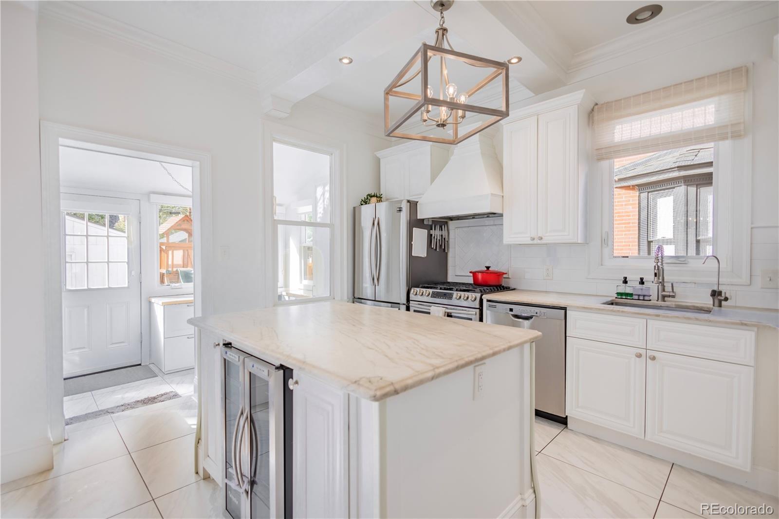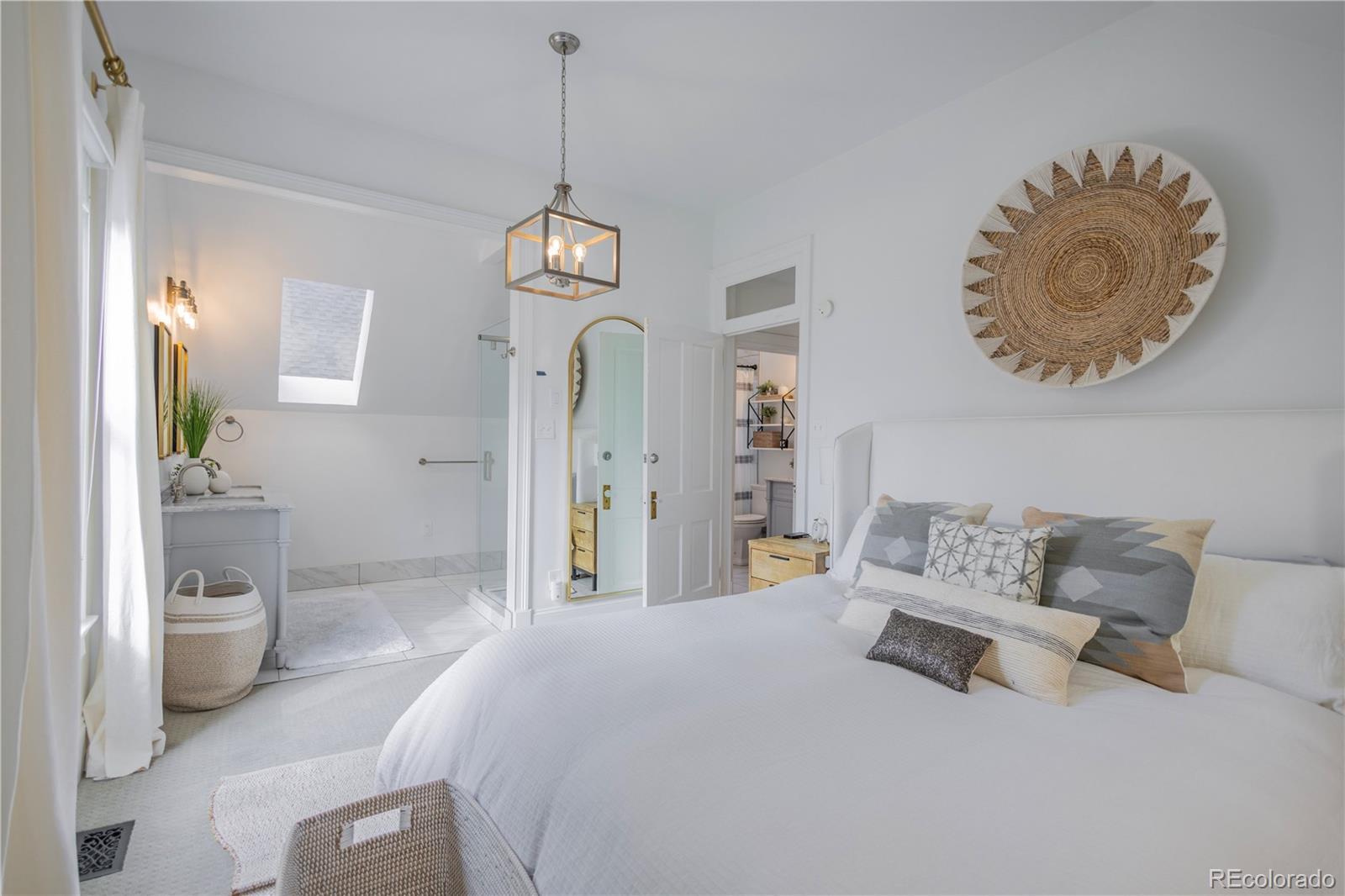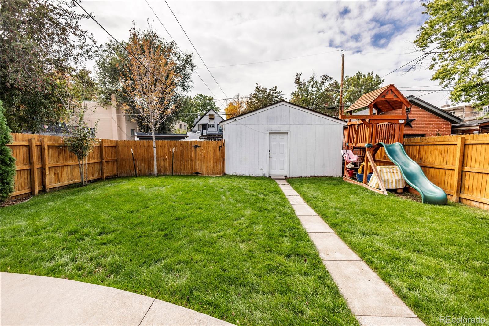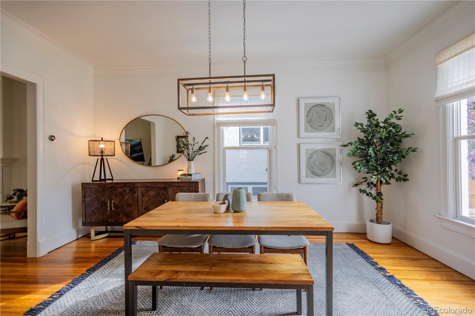 Step into timeless elegance with this masterfully restored 19th-century Victorian home, where historic charm meets modern sophistication. From the moment you enter into the grand foyer, you’ll be captivated by the classic architecture, soaring ceilings adorned with crown molding and artfully tiered trim. Original woodwork has been lovingly preserved, creating a warm, character-rich backdrop throughout the home. A fully renovated kitchen that seamlessly combines timeless elegance with modern convenience is a chef's dream. This space features a central island, marble countertops, stainless steel appliances, and a built-in beverage fridge. Just off the kitchen, an inviting dining room awaits, adorned with classic crown molding and bathed in natural light while a decorative fireplace serves as stunning feature in the living room. A dedicated main floor office space is situated at the back of the home. Upstairs, the primary suite is complete with open concept custom closets, a luxurious walk-in shower and a double sink vanity. Two additional bedrooms, each with spacious walk-in closets, are located on the second floor and are complemented by a beautifully appointed full bathroom. The basement has been thoughtfully expanded and structurally reinforced. Although the basement is considered unfinished, it has been furnished and adds 600+ square feet of additional living space. With soft carpeting, a large egress window, a dedicated laundry area and a rough-in for a future bathroom, this space is ready for your finishing touches. Outside, you are sure to enjoy the private oasis in the city. The oversized patio, tucked away side yard retreat, mature trees and grass area is a perfect place to spend the weekends. A spacious 2-car detached garage plus a 1-car off-street parking space is ideal for city living. Located minutes from Cherry Creek, Wash Park, local shops, restaurants and schools. This is more than a home—it’s a masterpiece of historic preservation and modern luxury.