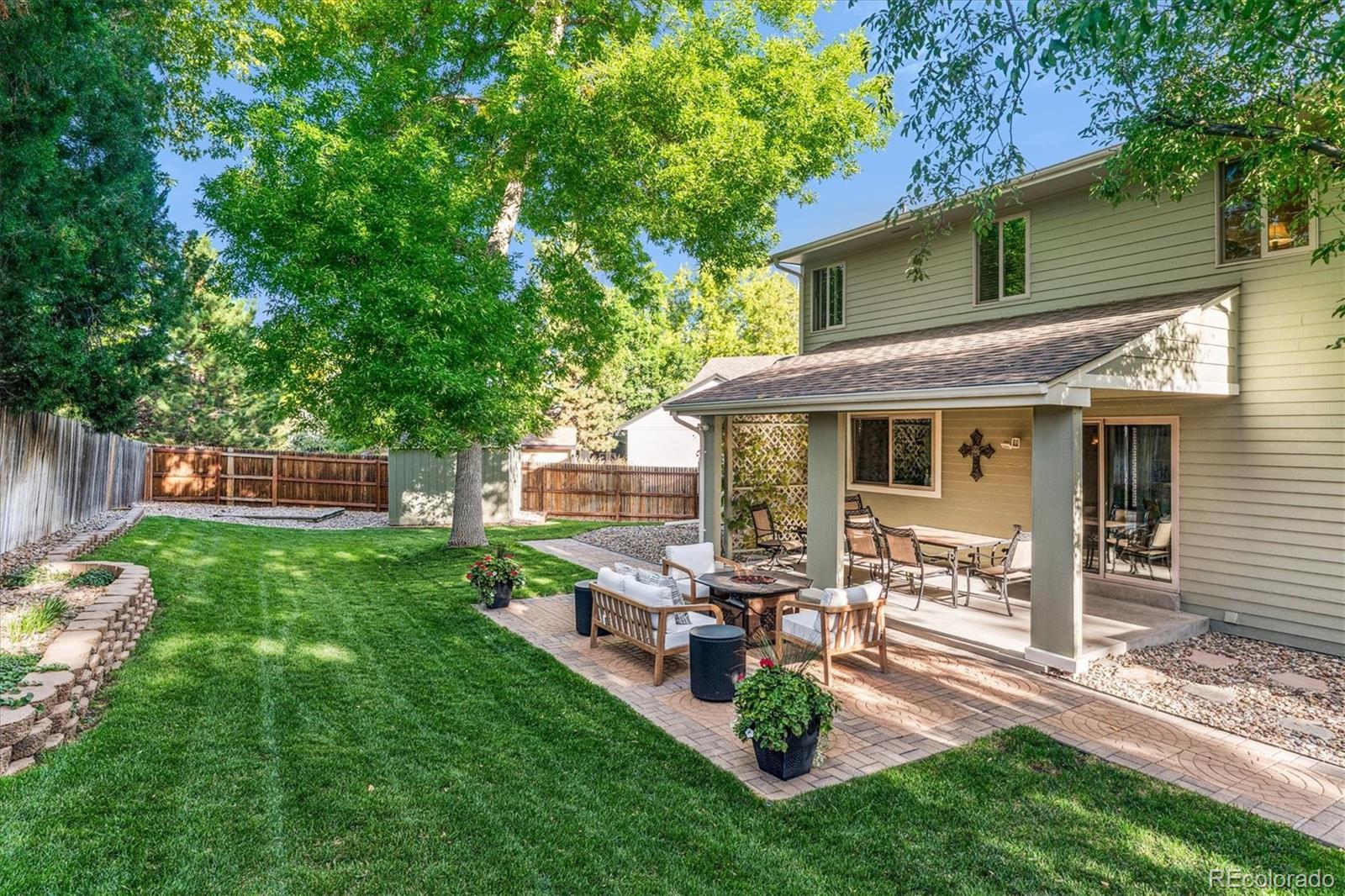 Ooooooh-la-la!! What a LOVELY home! Cul-de-sac location in desirable neighborhood with fully-fenced private yard * Many updates over the years - nearly every inch has been touched * Main floor BR could make a fabulous office space * Central A/C + newer attic fan * Voluntary HOA * Radon system * Class IV hail impact resistant roof (new 2021) * Newer front door * Security door * Cement parking bay for RV/camper * Newer outdoor storage shed * Private and lovely expanded patio * Upgraded garage with epoxy floor, extra insulation, cabinets, new exterior door, new overhead door * Gleaming hardwood floors * Dual pane argon-filled windows * Newer patio door * Family room remodeled 3 yrs ago: stack stone, gas FP w/blower fan and remote, newer carpet, stone hearth, wired for surround sound, very cozy * Updated kitchen: maple cabinetry, composite sink, new gas stove, silestone counters; * Breakfast nook * New central duct system to improve HVAC efficiency * Huge linen closet with laundry chute * Jetted tub - shower combo * Quality improvements throughout * Super close to all schools; middle school and high school within quick walking distance *Convenient to major streets and highways (5 min drive to C-470), restaurants, shopping, Southglen Entertainment Center * Quiet community of young families * An impeccable home with beautiful upgrades on an awesome lot!