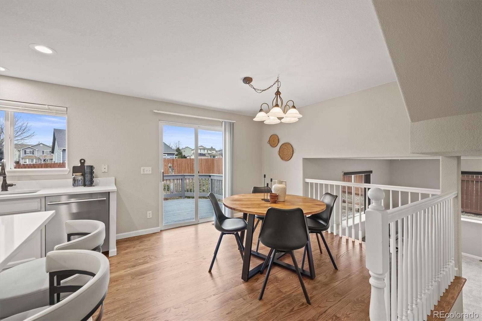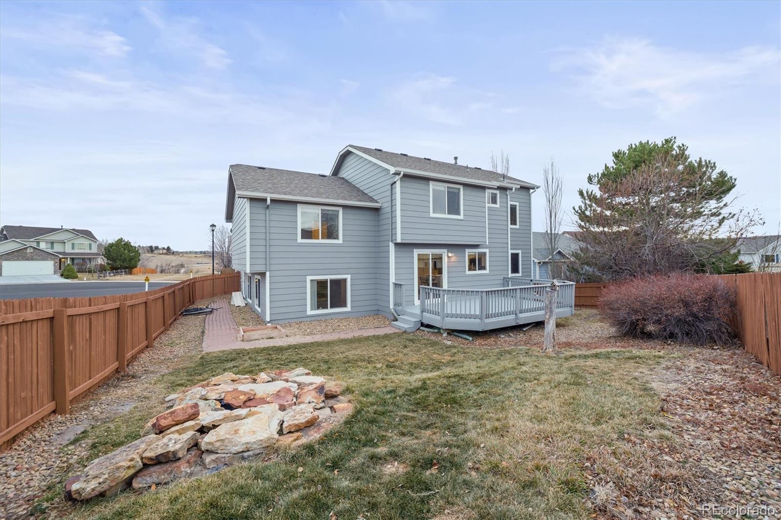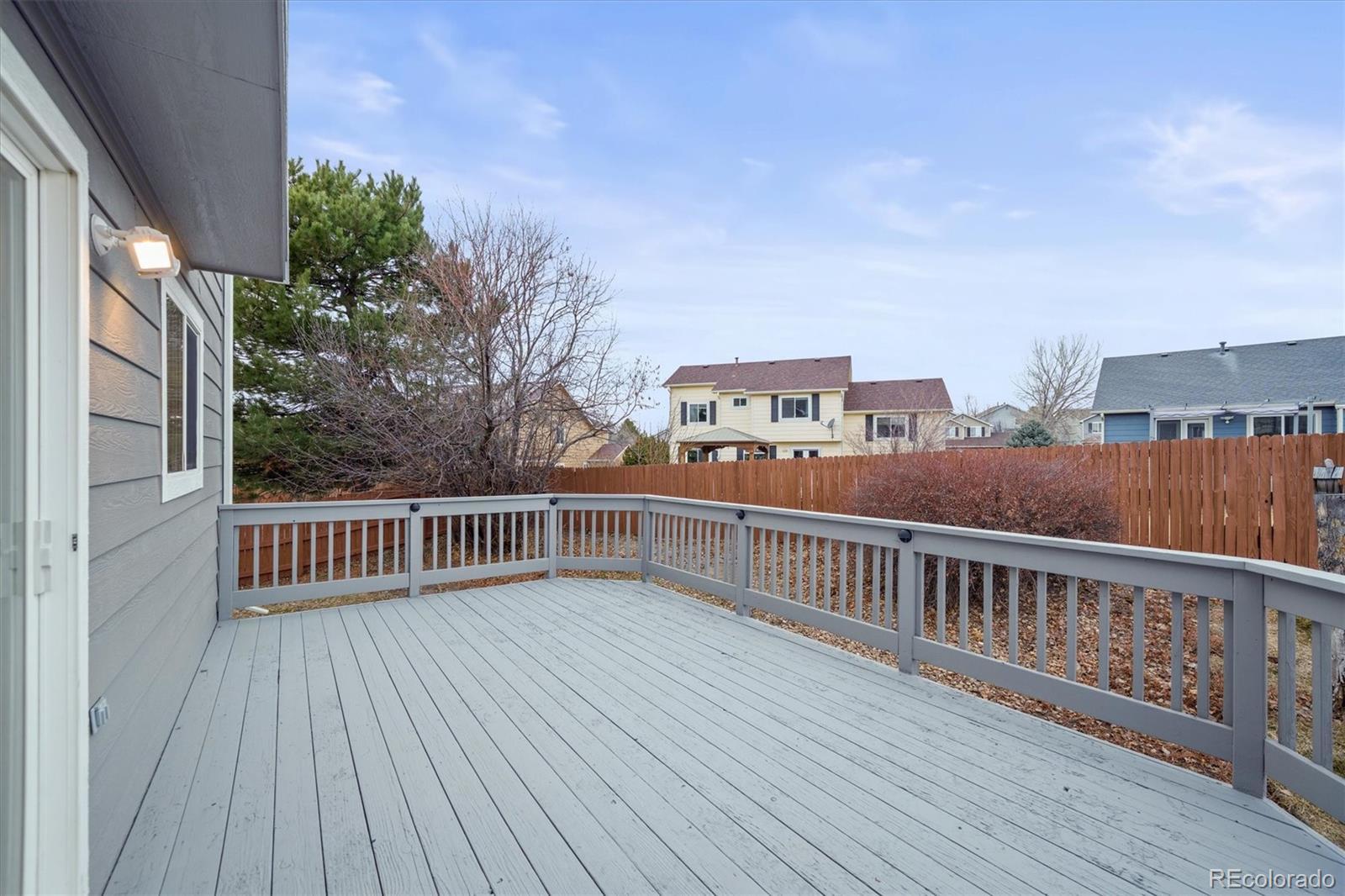 This beautifully updated 5 Bedroom, 4 Bathroom home is located in Canterberry Crossings, a sought-after master-planned community near Black Bear Golf Club, a premier Parker golf course, plus exceptional neighborhood amenities including a pool, tennis and trails. This gorgeous home is situated on a serene corner lot that sides to an open area for enhanced privacy. The interior has been thoughtfully updated throughout, showcasing a newly remodeled kitchen with breakfast nook and new stainless steel appliances, quartz countertops, and a center island ideal for both everyday living and entertaining. The spacious primary suite is a true retreat, complete with a luxurious five-piece bath. Cozy family room with gas fireplace. Finished basement featuring a Rec/Media Room, plus a bedroom and a ¾ bath. Recent improvements include new interior and exterior paint, new carpet, refinished oak hardwood floors, updated light fixtures, a new garage door and smart opener, and a new water heater. The home also benefits from newer roof shingles, providing added peace of mind. With its extensive upgrades, functional layout, and prime location within the community, this residence offers a turnkey opportunity for refined and comfortable living. This is truly the dream home you have been looking for!