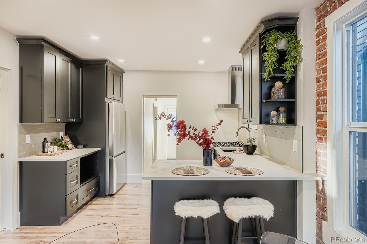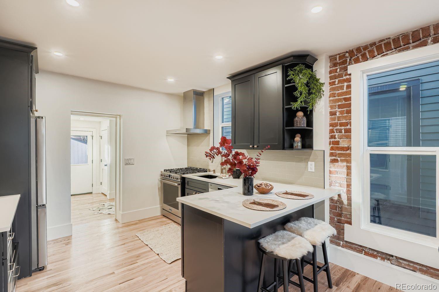 **OPEN HOUSE SATURDAY 1/10 FROM 12PM-2PM AND SUNDAY 1/11 FROM 11AM-2PM** Come check out this newly remodeled single family home in the heart of the Baker neighborhood! This vibrant neighborhood is centrally located to all the great things Denver has to offer. This 2 bedroom, 2 bathroom home features updates throughout. The original hardwood floors have been refinished and flow through the main living area and bedrooms. The living room features exposed brick walls and flows right into the dining area and kitchen. The kitchen has new high end stainless steel appliances, black cabinets, and a beautiful designer tile backsplash. The bathrooms were fully updated with new tile and champagne bronze Delta bath fixtures. A partial unfinished basement with easy access is perfect for storage. The front and back yards are fully fenced in and are xeriscaped for low maintenance. A storage shed in the backyard is color matched to the house and has plenty of additional secure storage. The Baker neighborhood has experienced a great deal of transformation in recent years with more exciting nearby projects underway. The newly announced Broncos stadium and NWSL women's soccer stadium will be located within a mile of this home.