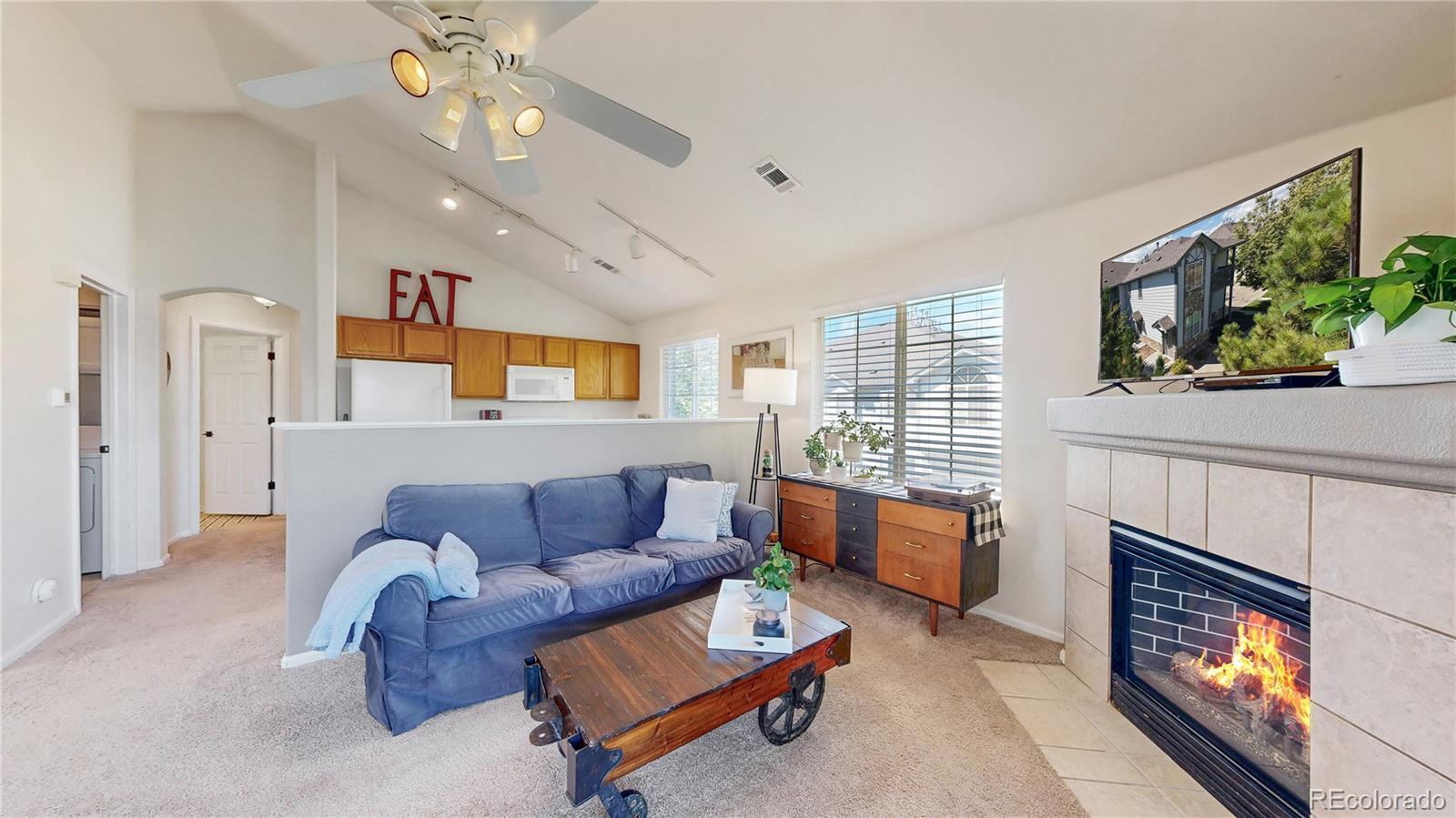 This is THE ONE! Relish in the comfort and low-maintenance living that come together in this stylish condo, featuring an open floorplan with an attached garage, Newer Furnace, Newer Air-Conditioning System and Newer Hot Water Heater! The main living area is open and inviting, with large windows that bring in natural light and gorgeous vaulted ceilings that highlight the home’s spacious layout. A cozy fireplace anchors the living room, making it the perfect place to relax at the end of the day. Sliding glass doors lead to a private balcony, extending the living space outdoors for morning coffee or evening unwinding. The kitchen is thoughtfully designed with plenty of cabinetry, generous counter space, and modern appliances. Its open flow into the dining and living areas makes entertaining seamless. The primary suite serves as a private retreat, featuring a large bedroom, walk-in closet, and more natural light from a phenomenal arched window. The tastefully updated bathroom has plenty of space featuring a generously sized oval soaking tub and linen closet. Additional conveniences include a large laundry room and the attached garage, ensuring both comfort and secure parking. This gated community is well-maintained, with landscaped grounds and shared amenities that enhance the living experience with the Clubhouse and outdoor pool. Location is yet another highlight—just a short distance from Rotella Park, Carpenter Park, and the Thornton Crossroads & 104th Ave light rail station, making commuting into Denver and surrounding areas simple! This home offers move-in-ready convenience and a lifestyle that fits modern Colorado living. Come make this gem yours today!