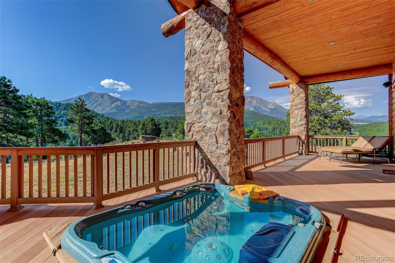 Whiskey Springs Ranch ... This Magnificent 8,000+ sqft Log and Stone Mountain Retreat has no restrictions or covenants and is located in Southern Colorado near La Veta and Cuchara. An unspoiled High Alpine area with views of the Spanish Peaks and Sangre de Cristo Mountain Range. Built by One of Arizona's Premiere Custom Home Builders, he put his heart and soul in every detail of this Treasure as his own Retreat and Lodge. Walk through the Stone Entry into the Great Room which is flanked with Massive Timber Vigas, Vaulted Ceilings, and Stone Floors. The lodge features Stone Accents throughout and includes 5 stone propane Fireplaces with the most magnificent Fireplace in the Great Room. A Wet Bar adjoins the Great Room with a wall of windows with no homes in sight. You may catch a glimpse of Elk, Wild Turkey, Deer, or an occasional Black Bear surrounded by approximately 4000 acres of private ranch land protected by a conservation easement. The Main Lodge consists of 3 Bedrooms, 4 Baths with a Library, Office, Wine Cellar, and Theatre. The Guest House has 2 Bedrooms, 3 Baths ,a kitchen and a living room with a stone Fireplace as well as a 6 car garage including an RV Bay. The Main Lodge has an Oversized 3 Car Attached Garage with plenty of storage just off the laundry room. This Incredible property is designed for Family gatherings and entertaining with a Chef's kitchen equipped with a Wolf 6 burner stove, Dual ovens, subzero Refrigerator, two Granite Islands with Bar stool seating area that opens to the Dining Area with yet another Stone Fireplace and sliding Glass doors that lead to Covered Trex Decks with a built in Grill for Outside cooking and fun. The Primary Bedroom has large Stone Fireplace and Bath with Two Separate Granite Countertops, Raised Soaking Tub with yet another Fireplace, Walk-in Shower with Custom Tile and Huge Walk-in Closet. Outside the Primary Bedroom is a sunken hot tub under the covered deck. This Ranch is a Retreat like none other.