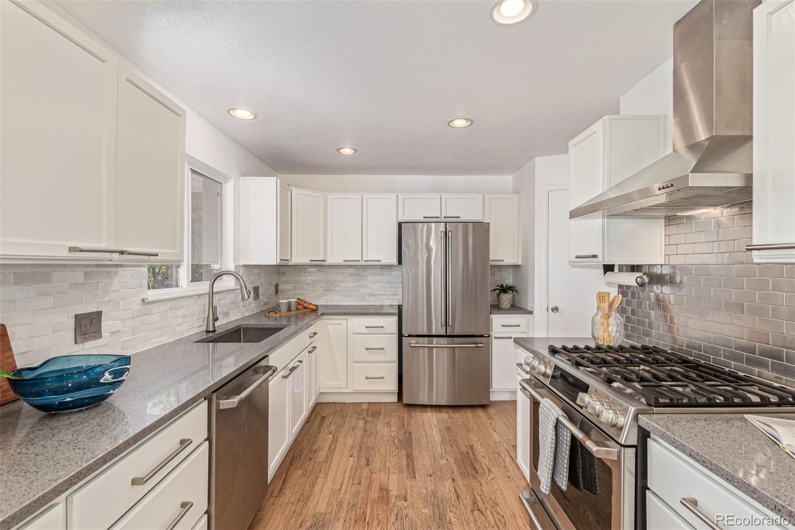 Welcome to this charming corner-lot home in one of Littleton’s most desirable neighborhoods—where timeless character meets an unbeatable Colorado lifestyle. Set on a spacious and private 1/3 acre lot, this 3 bedroom and 3 bathroom property offers plenty of room to garden, play, or entertain outdoors under the shade of mature trees and covered back patio. Inside, the home features a classic layout with warm and inviting living spaces, including a living room with gas fireplace and a finished lower family room. With 3 bedrooms and 3 bathrooms, there’s room to live comfortably. Hardwood floors throughout the entire main level. The kitchen has been tastefully updated with slab quartz countertops, and newer stainless steel appliances—including a gas stove. Recent updates throughout the home include a newer boiler, roof and gutters, exterior and interior paint, and a remodeled primary bathroom. A two-car attached garage plus an additional detached one-car garage provide plenty of storage and hobby areas. All of this in a peaceful, established neighborhood with no HOA just moments from Belleview Park and top-rated Littleton schools.