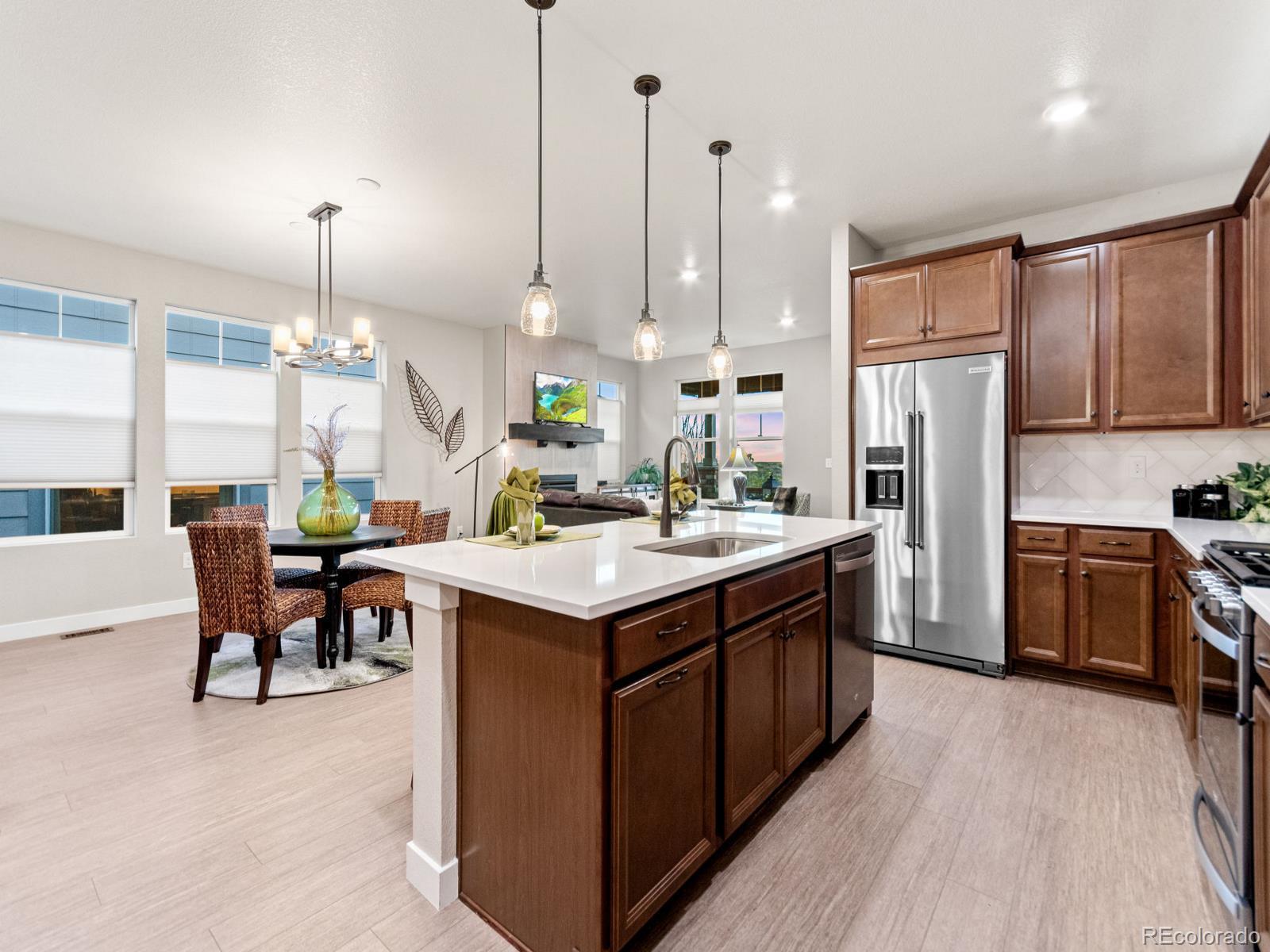 Excellent opportunity! The seller will pay one year of HOA dues at closing with an acceptable offer. Low-Maintenance Luxury Living in The Canyons! This immaculate ranch style home shows like a model and is loaded with upgrades, ideally located steps from open space, trails, and the lake. The open-concept layout is anchored by a chef’s kitchen with quartz countertops, rich truffle cabinetry, stainless steel appliances, and a generous island that’s perfect for entertaining. The great room’s cozy gas fireplace sets the stage for relaxing evenings. This home is loaded with upgrades and special features throughout, including luxury vinyl plank flooring and newer high-end carpet. The private primary suite feels like a spa retreat with dual sinks, an oversized shower, and a spacious walk-in closet. Outside, enjoy a covered front and back porch, along with a beautifully landscaped backyard featuring turf and a spacious covered patio—perfect for entertaining without the maintenance. The full basement, complete with rough-in plumbing, provides room for future expansion. Life in The Canyons offers more than a home—it’s a resort lifestyle. Lounge at the pool, grab coffee at The Exchange, meet friends at the clubhouse and bar, or enjoy a game of pickleball before exploring miles of trails and parks. Truly a gem—move in and relax. Hurry on this one!