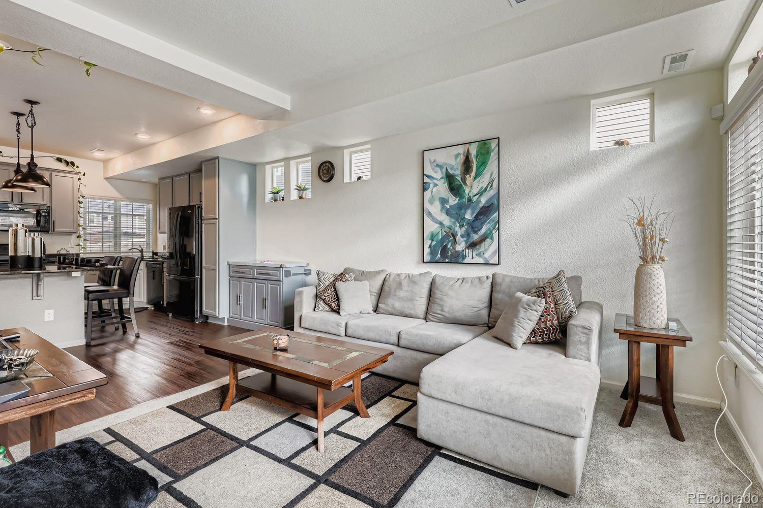 Welcome to this beautifully maintained, turnkey home on a corner lot with park and green space right down the street! The open-concept main level is filled with natural light. It features a spacious living and dining area, a stunning island kitchen with updated lighting fixtures, and a patio for grilling just off the kitchen. A powder room and front closet complete the main floor for easy living and entertaining. Upstairs, enjoy a serene primary suite with a large walk-in closet and an ensuite bathroom, two additional bedrooms, and another full bathroom perfect for guests. Also upstairs, a laundry room and thoughtful finishes throughout make this home truly special. Enjoy low-maintenance living with a brand-new Recreation center, HOA-covered snow removal and grounds maintenance plus solar to keep your utility bills low. The location provides nearby access to I-70, for an easy commute to Denver International Airport (DIA), Downtown Denver, and the Anschutz Medical Campus. Shopping and many restaurants are nearby, as well as many entertainment options. ***Incentive Alert*** Use our preferred lender, and your buyer can receive up to 1% of the loan amount in lender credits (up to $5,000) when not using a down payment assistance program.