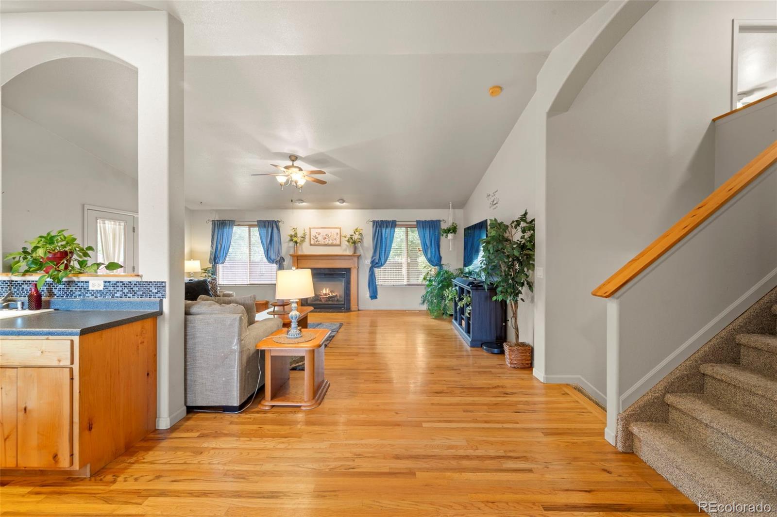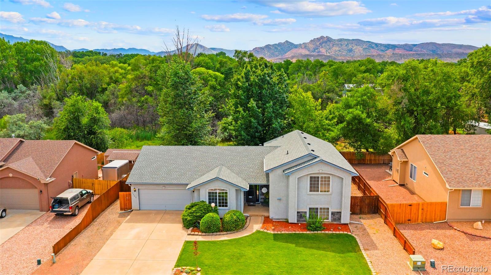 Introducing a rare find. This beautifully maintained 5-bedroom, 3-bathroom home offers the perfect blend of space, comfort, and privacy, nestled on a meticulously cared-for lot that backs to open space and mature trees. Tucked away in a peaceful neighborhood, this property delivers a sense of seclusion while still being close to everything you need. Inside, you’ll find soaring vaulted ceilings, rich hardwood floors, and an inviting open-concept layout filled with natural light. The living room centers around a cozy gas fireplace, creating a warm and welcoming space to unwind or host friends and family. The kitchen features knotty pine cabinetry, ample counter space, a center island, and custom tile backsplash—ideal for both daily living and entertaining. The primary suite offers a private retreat with a walk-in closet and attached en-suite bath. With five true bedrooms and a finished lower level, there's plenty of space for guests, hobbies, or a home office. Step outside to a fully fenced backyard designed for relaxation, featuring mature landscaping, a lush lawn, and a covered patio perfect for year-round enjoyment. The two-car garage, extended driveway, and side-yard access for trailers or RVs add even more value. Located just minutes from schools, parks, downtown Canon City, and the Arkansas Riverwalk, this home offers the perfect balance of privacy, space, and convenience. Don’t miss your chance to own this exceptional property—369 Sunlight Way is the one you’ve been waiting for.