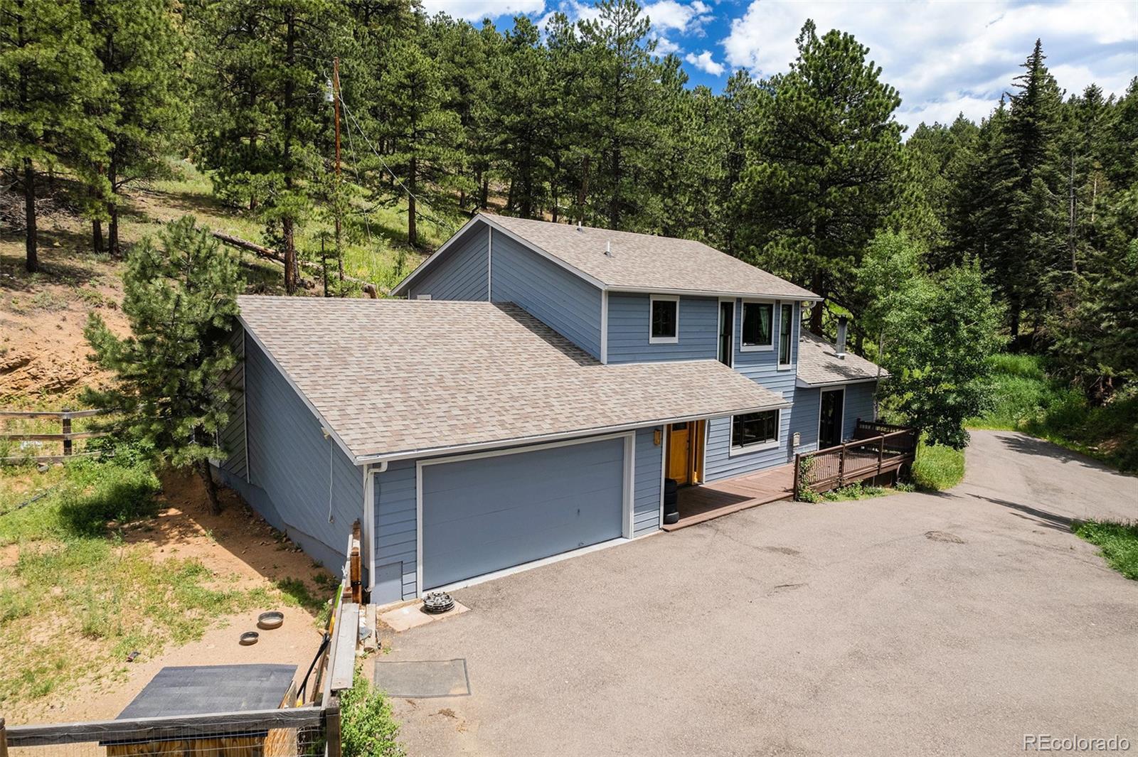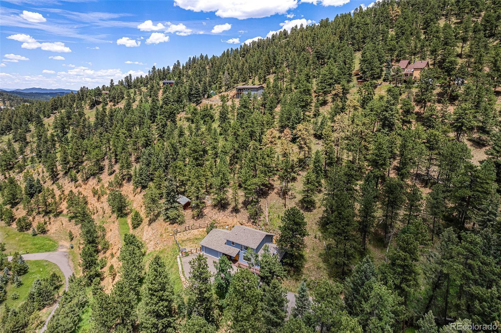 Welcome to your private mountain retreat on 4.28 acres, just minutes from Conifer amenities and a quick commute to Denver. This updated 4-bed, 3-bath home with office / flex room blends modern finishes with rustic charm—featuring a bright open floor plan, vaulted ceilings, new windows, and a chef’s kitchen with stainless appliances and quartz counters. The spacious primary suite offers a luxuriously renovated bathroom and serene views. Multiple living areas, a cozy fireplace, and seamless indoor-outdoor flow make entertaining effortless. Step outside to your deck, flat yard space, and mature pines that frame sweeping foothill vistas of Flying J Ranch Park and beyond. Easy access off Hwy 73 means year-round convenience, primary plowed routes, with upgraded windows for quiet comfort inside. Brand new septic, high-speed internet, a large two-car garage, and room for hobbies complete the package. Don’t miss this rare acreage opportunity with both seclusion and access—schedule your showing today! Click the Virtual Tour link to view the 3D walkthrough. Discounted rate options and no lender fee future refinancing may be available for qualified buyers of this home.