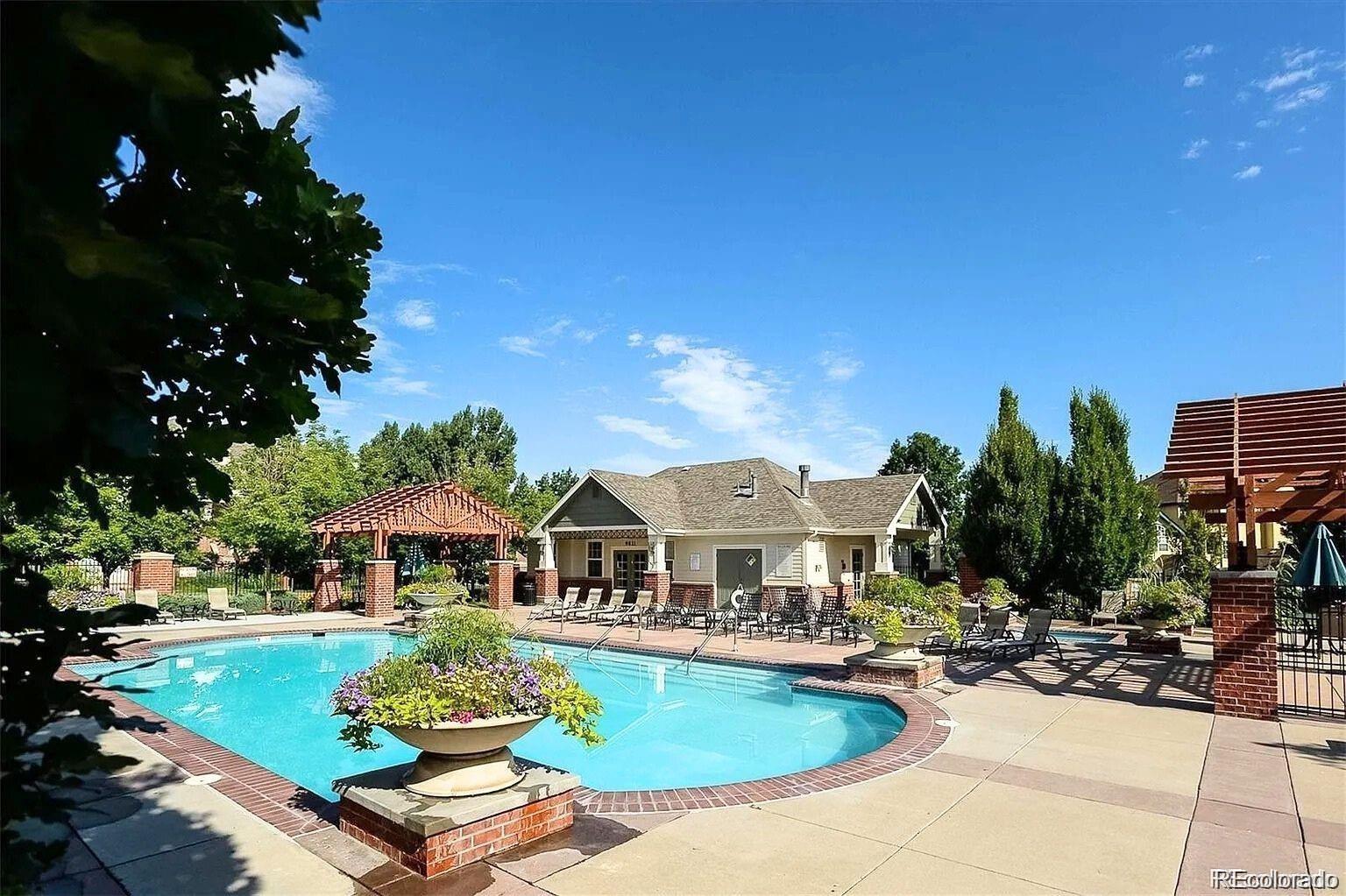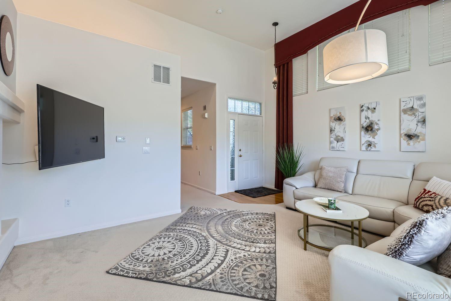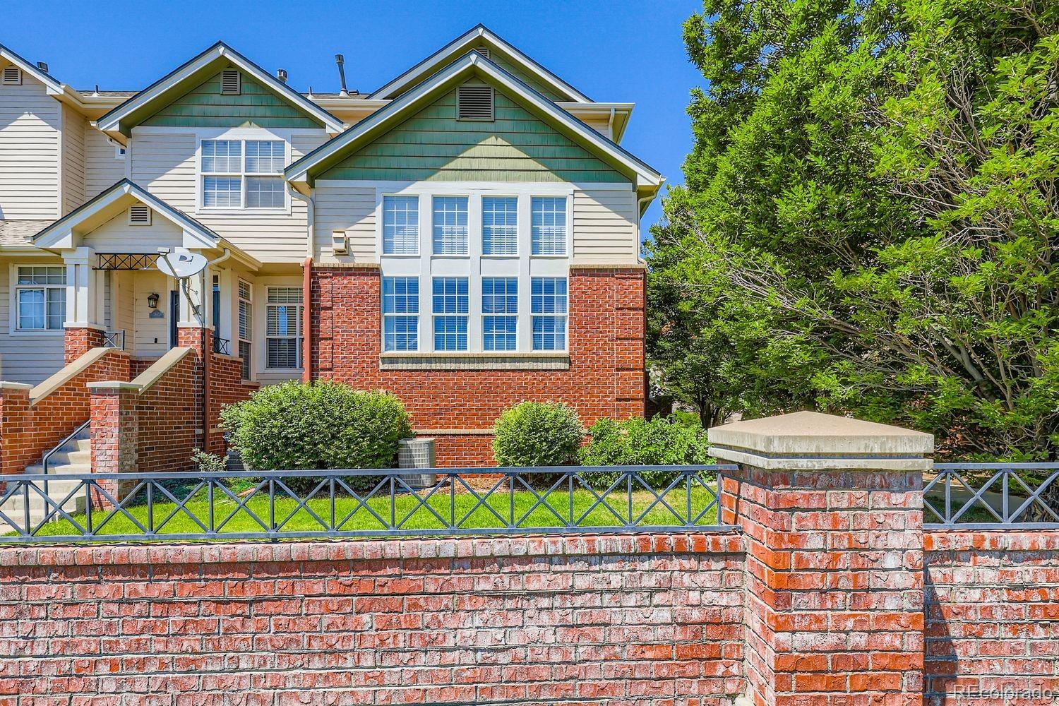 Pet Free & Smoke Free Home! Rare large and beautiful end-unit townhome available in desirable Kensington community. This spacious light and bright 3-bedroom, 3.5-bathroom home features a 13’ vaulted ceiling in the living room, wood blinds throughout, wood floors in kitchen and dining room, and an attached 2-car garage. From the minute you walk in the front door, you’ll notice the architectural details that flow throughout—arch niches, ledges, shelves, tray ceiling in the dining room, French doors to the dining and master-bedroom patios—all giving you an individualized custom-built feeling. Upgraded features include custom drapery in the living room, marble backsplash in the kitchen, Elfa closet system in master bedroom, retractable sunscreen on the kitchen patio, security alarm, and hook-up ready television wall mounts in master bedroom and living room. A Cherry Creek school community, this townhome also features a resort-like swimming pool, hot tub, and several dog walk areas. Nestled-in highly desirable & centrally-located neighborhood – a prime, convenient location with easy access to excellent dining, entertainment, Denver International Airport (DIA), and shopping, including Costco, Target, Sprouts, TJ Maxx, and so much more! Don’t miss out this one will go quickly!!!