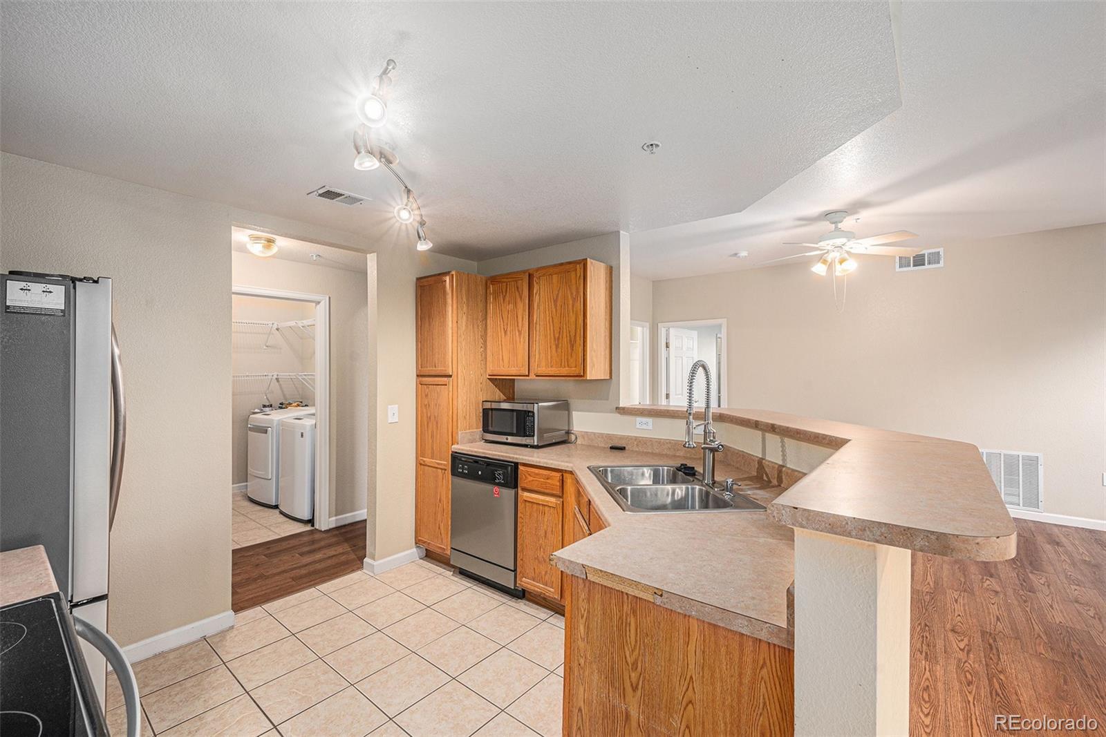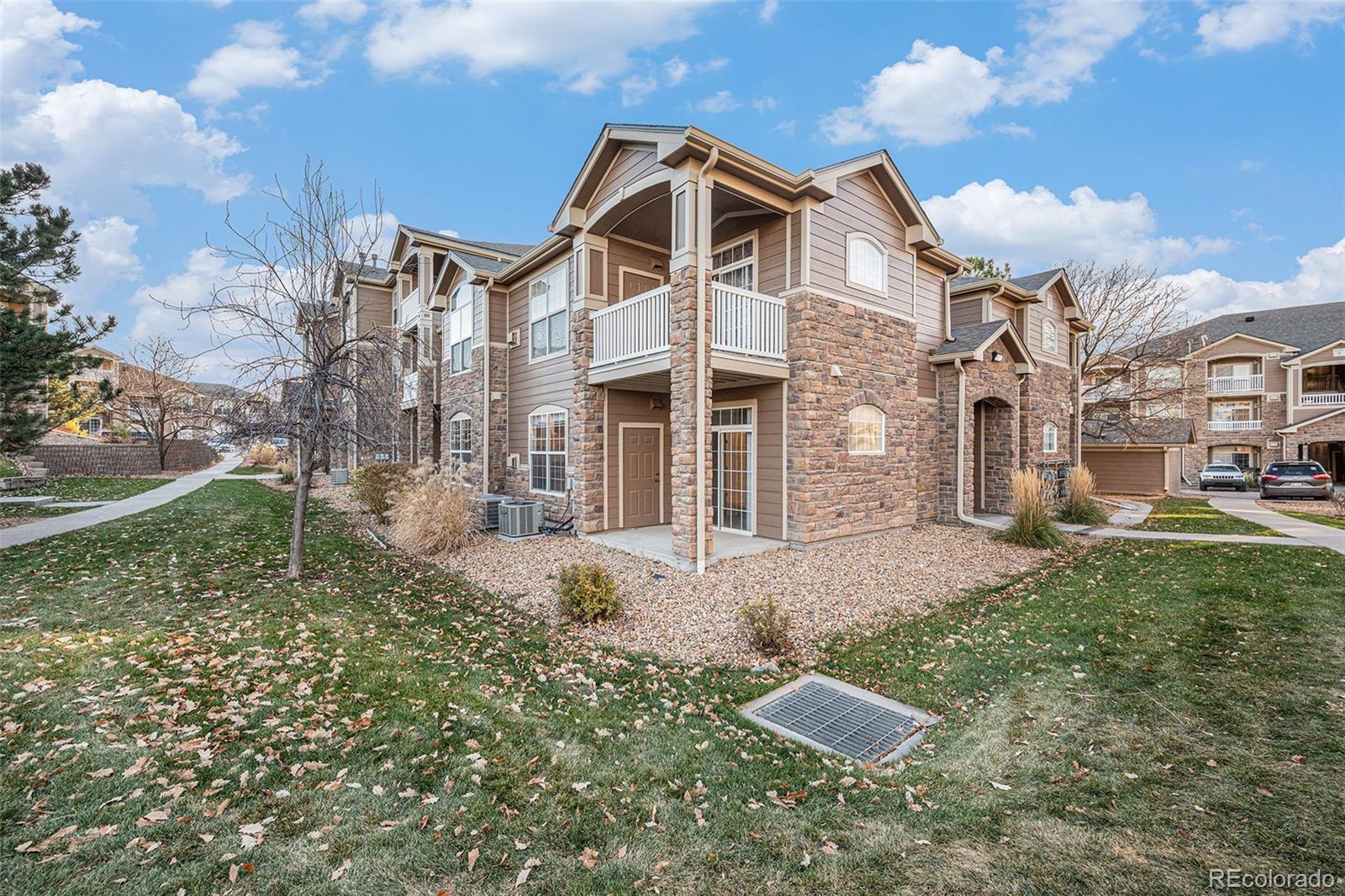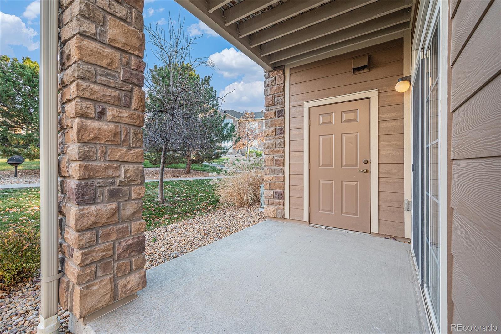Discover easy ground-floor living in highly sought-after Windmill Creek. This bright and airy end unit features an open-concept layout with high ceilings and abundant natural light streaming through oversized windows. Cozy up by the gas fireplace or step outside to one of the two private patios—each connected to its own en-suite bedroom with walk-in closet. Enjoy the comfort of central A/C, in-unit laundry, and plenty of open parking. The back patios overlook a spacious, park-like courtyard that creates a peaceful, community feel. Access to the community pool, playground, fitness center, and clubhouse. All of this in a prime location with quick access to Dove Valley, the Denver Tech Center, and award-winning Cherry Creek Schools.