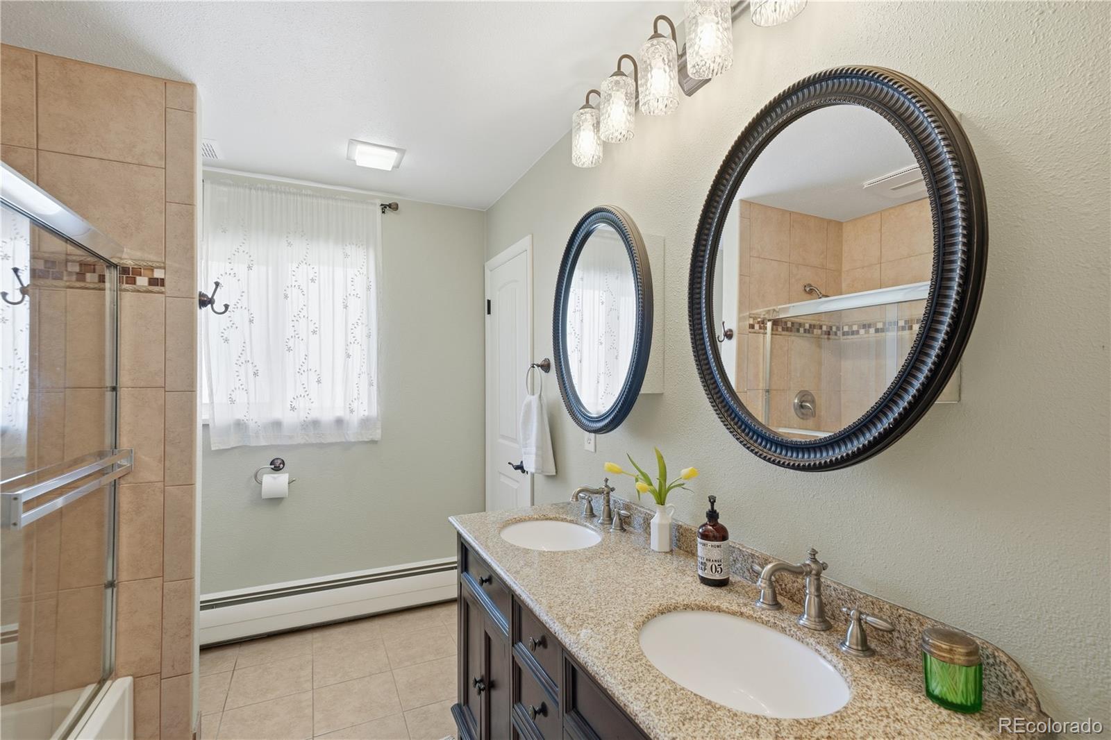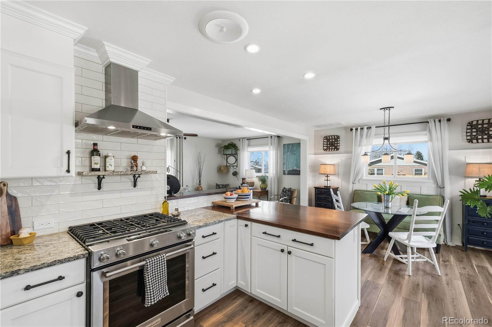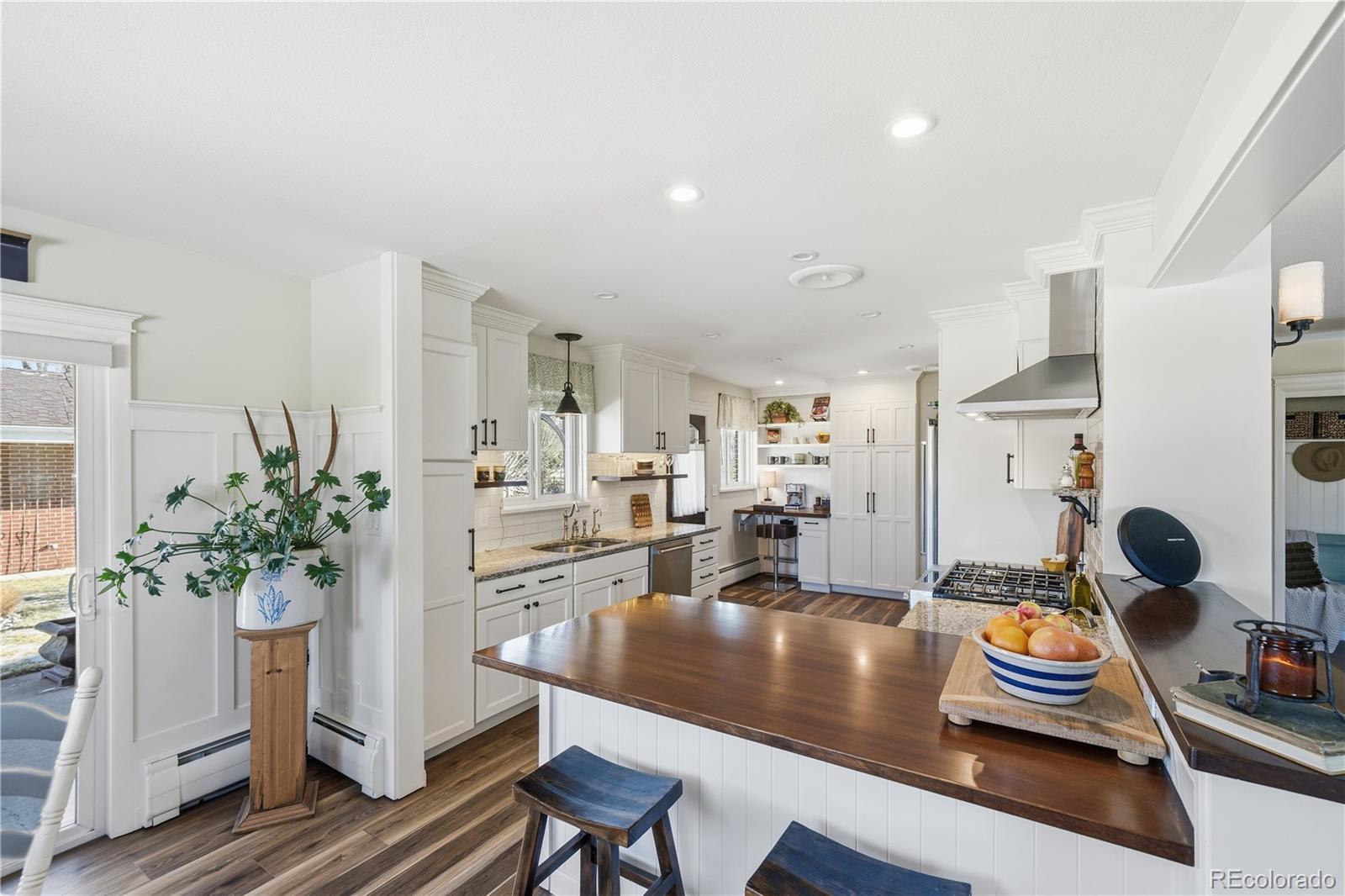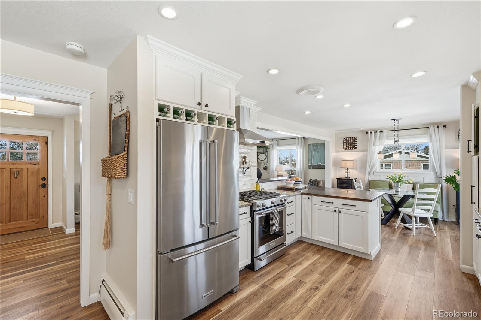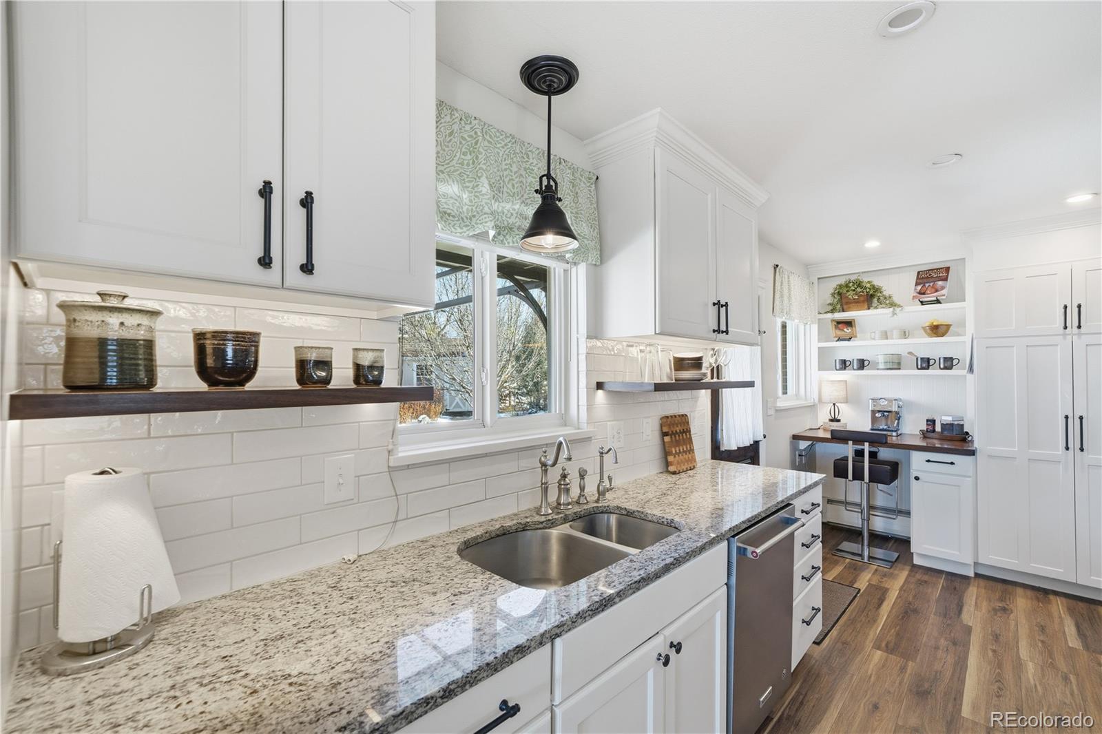 This beautifully reimagined brick home blends timeless 1967 character with modern farmhouse style and comfort. Step inside to find beautiful Luxury Vinyl plank flooring throughout the entire main level, a cozy electric fireplace, custom built- in entertainment center in the living room & entry, custom paneling accents in the charming dining area, designer lighting. All flowing seamlessly to the fully remodeled kitchen, a chef’s delight, featuring all newer custom cabinetry, crown molding, a coffee bar area with floating shelves, lots of pantry space, granite countertops, a designer wood lacquer counter/island bar, stainless steel appliances, gas stove, recessed lights and a stunning white subway tile backsplash to top off the finishes. From the kitchen you have access to a true backyard sanctuary with a pergola, water feature, lush flower gardens, mini trees, accent grass, landscape lighting, well placed landscape rock and an abundance of mature trees all complimenting each other throughout the space. Upstairs, discover three bright and spacious bedrooms plus a full bath with double vanity, soaking bath tub with semi frameless glass doors, designer mirrors and warm lighting. The lower level offers a large family or bonus room, an additional bright bedroom, charming three-quarter bath, and laundry area. A few steps away you have a large 703 sqft unfinished basement with rough-ins for an additional bath & a space that provides endless possibilities for expansion. The oversized, insulated, fully finished and heated 2 1/2 car 625sq ft garage, ADU option, storage shed Additional features include newer windows, new doors, multi zone heating & air conditioning w/ designer ducts, hot water heater 5 years old, low profile radiant heating, and brand-new carpet in the lower level. Just 1.5 Miles from downtown Englewood & Littleton. Less than a mile to light rail 2 blks from Mary Carter Greenway Trail. This home is filled with love, charm & thoughtful details.