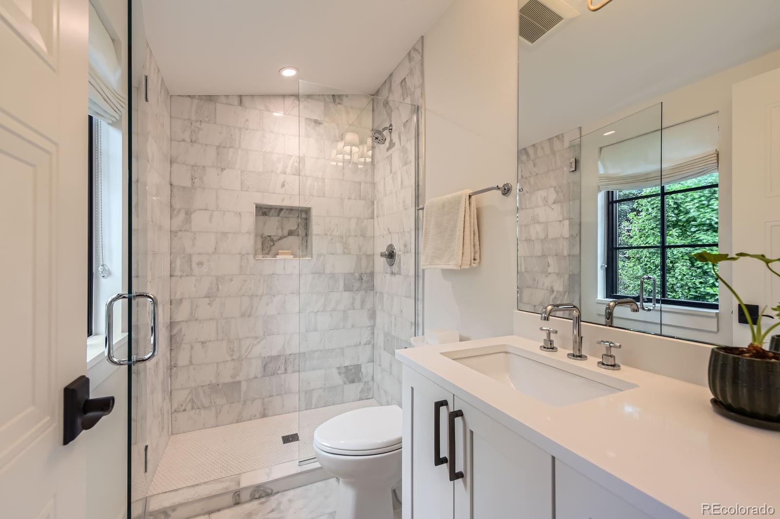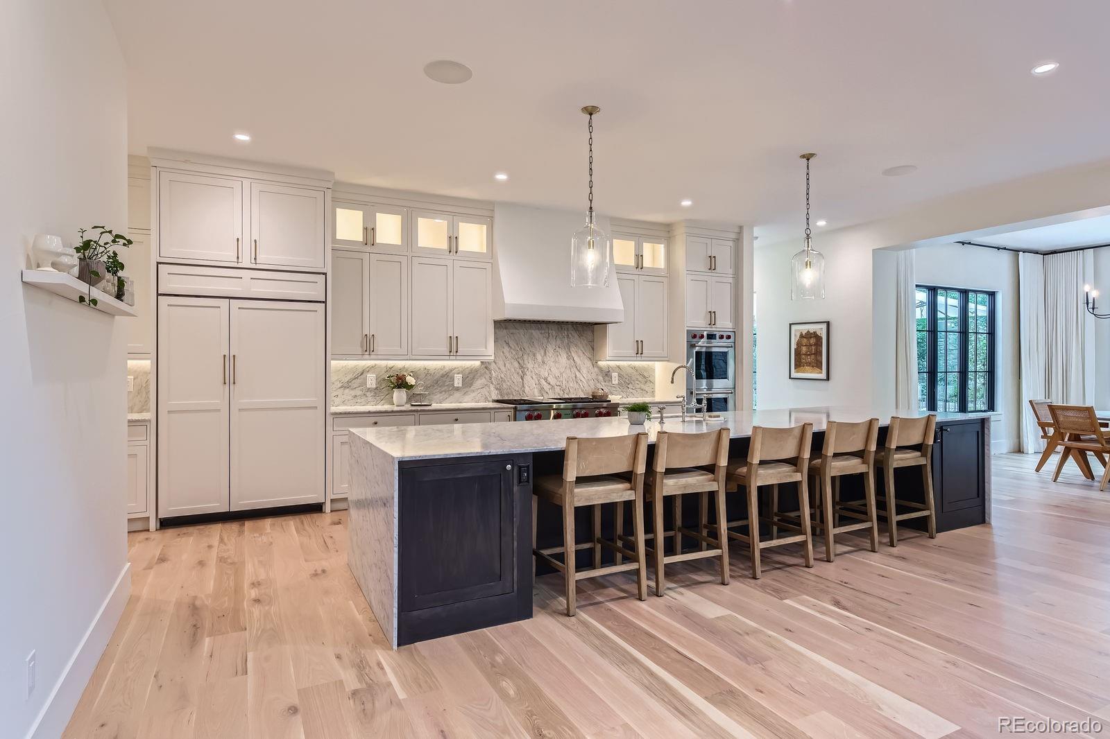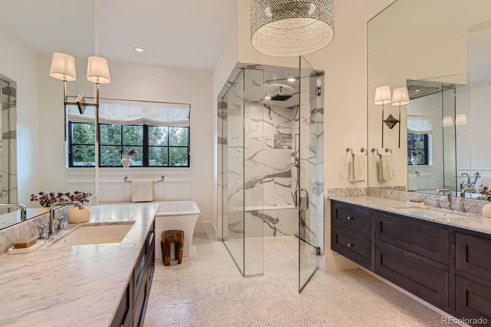 LOCATION, LOCATION, LOCATION! Welcome to the exclusive, gated Cedar Lane community, just a short walk from the premier shops & dining of Cherry Creek North w easy access to the Cherry Creek Trail. This 7-bedroom, 7-bath estate sits on a private, oversized corner lot, blending sophisticated design, cutting-edge technology, & over $900,000 in curated upgrades. Step in to the sun-drenched main floor to find soaring high ceilings & a wide open floor plan that seamlessly integrates w your outdoor resort style backyard. Create a meal in the amazing gourmet kitchen featuring high-end appliances, dual dishwashers, huge island w breakfast bar seating and slab marble counters w waterfall edges. Designed for both daily living & elevated entertaining, every detail of this amazing floorplan was meticulously designed for comfort, convenience & socializing. The home features a dedicated office, dual laundry rooms, sound system throughout, comprehensive security system w cameras surrounding the exterior & built-in sauna. All four beds up are en-suite, incl the luxurious primary suite, w steam shower, heated floors, large soaker tub & impressively sized dual walk-ins. The expansive basement space features a great room, wet bar, custom home theater w super high-end A/V & luxury seating included, guest suite & home gym. Outside you'll find your personal oasis: a saltwater swim motor pool & jacuzzi, outdoor fireplace, built-in BBQ & stovetop, pizza oven, outdoor TV/audio, & built-in patio heaters, perfect for year-round enjoyment. Large backyard offers unmatched privacy w plenty of space for relaxing w multiple seating areas, surrounded by mature trees & meticulously landscaped gardens. Optimized for pets, the home incls a built-in dog door & dog run, safely separated from pool area. Features*16kW solar system & 5 Tesla Powerwalls (paid for)*Whole-home air filtration/humidifier/water filtration*EV charging/3 cars*heated garage w epoxy floor & built-in storage*elevator to all levels*