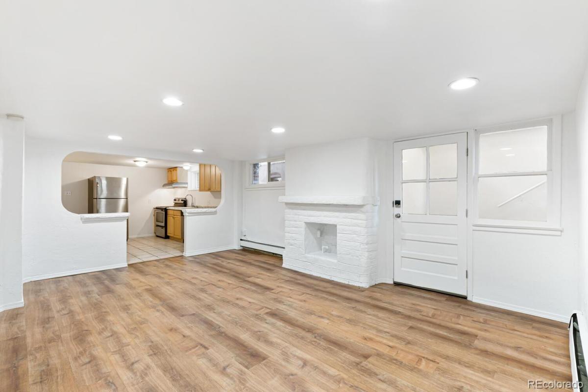 2 bed, 1 bath garden level unit in a well-maintained multifamily property. This unit has a separate entrance and features a large open living and dining area with recessed lighting and wood-style flooring. The kitchen includes stainless steel appliances, good cabinet space, tile flooring, and a pass-through opening to the living area. Both bedrooms are well-sized with neutral finishes and closet space. The bathroom includes a full tub/shower with tile surround and updated fixtures. Coin-operated laundry is available on-site. Off-street parking is located in the rear of the property. There is also a shared front porch area. Clean, functional layout with good natural light for a garden level unit. Move-in ready. 12-18 Month Lease Base Rent - $1,550/mo 6 Month option - $1,700/mo Sewer, Water, Trash - $75/mo Pet Deposit - $300 nonrefundable Pet Fee - $35/mo Tenant is responsible for Xcel and Internet