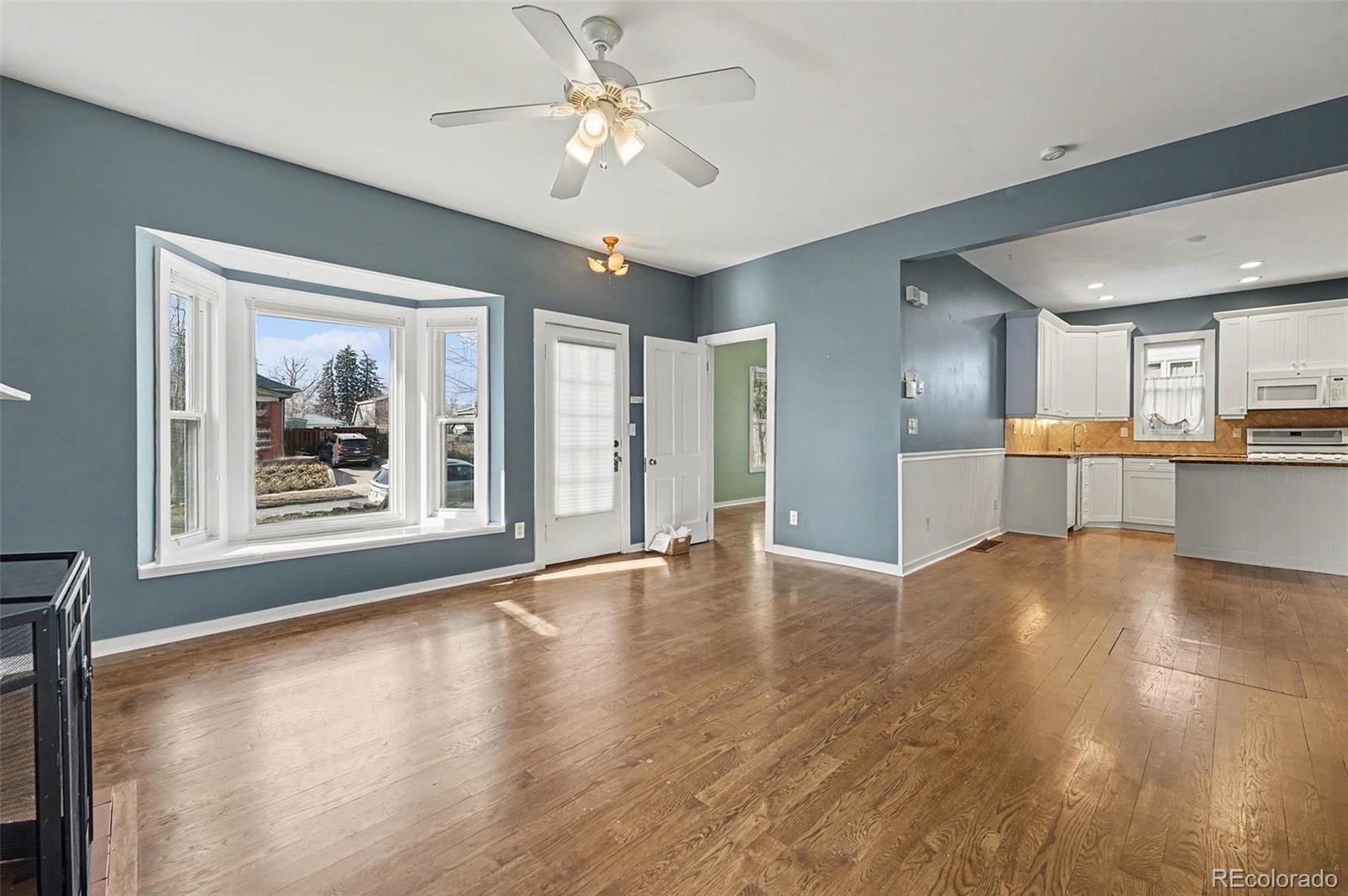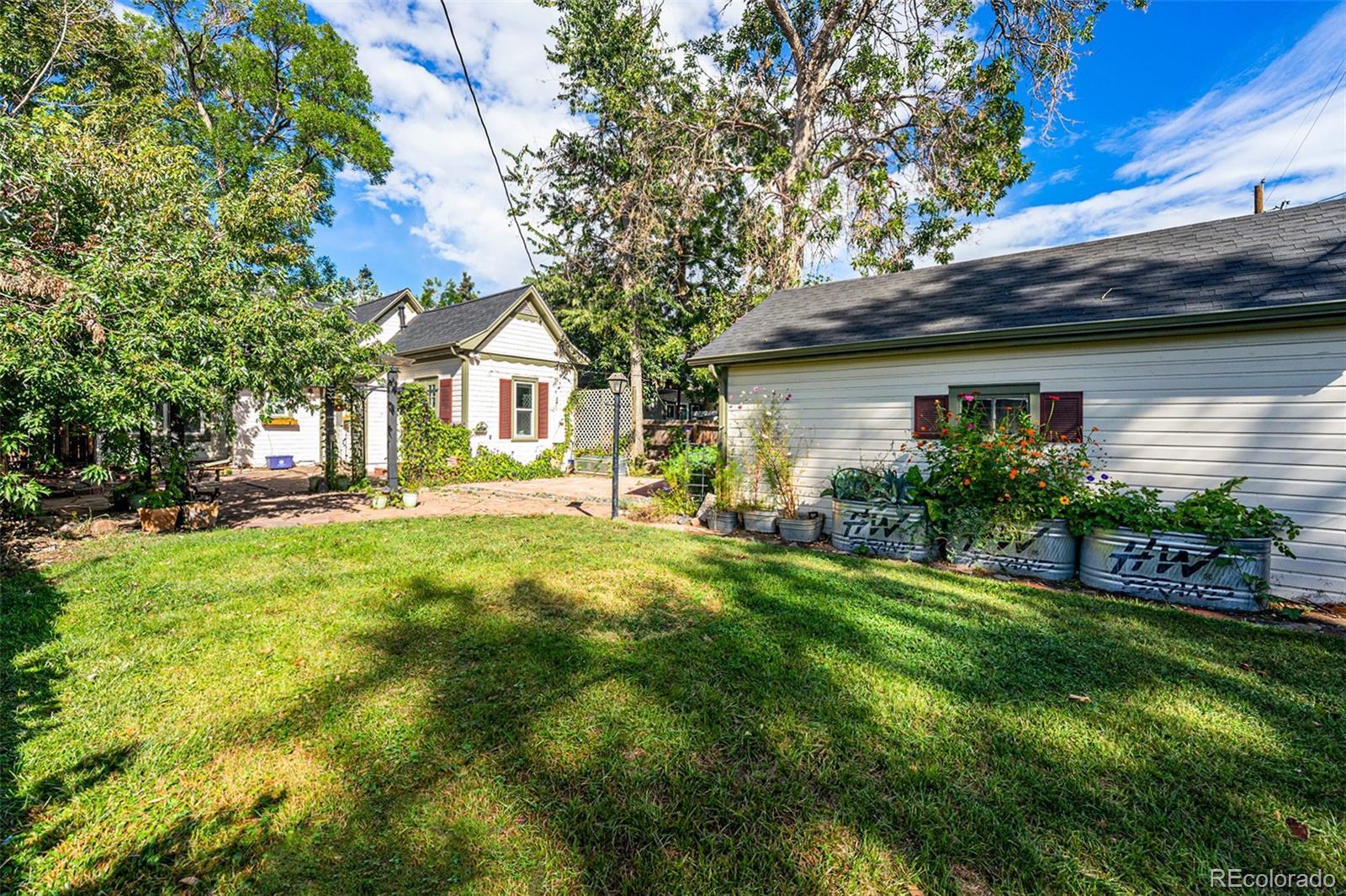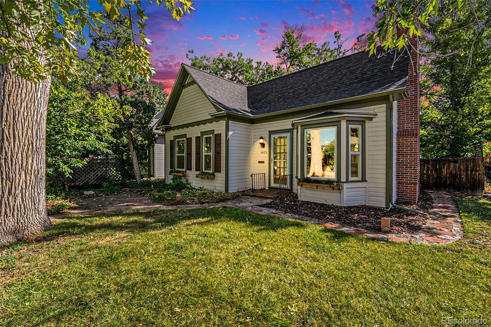 Charm abounds in this 1915 Victorian with hardwood floors, a brick fireplace, and vintage trim. The open floor plan with modern updates makes the home immediately livable, and you'll be enchanted by the incredible back yard. Step through the french doors from your bedroom out to your morning-glory draped pergola to enjoy morning coffee. Mature trees adorn the large lot that features multiple patios and gardens, and a one car garage is ready to charge your EV or to store your gear. A quick jaunt over to dining and shopping on Tennyson and Regis shops and restaurants on Lowell, both Berkeley Lake Park and Rocky Mountain Lake Park, Willis Case golf course, Regis University, and access to I-70 (in just minutes) makes this location a true find. The oversized lot offers good potential for construction of a larger garage and/or an accessory dwelling unit (ADU).