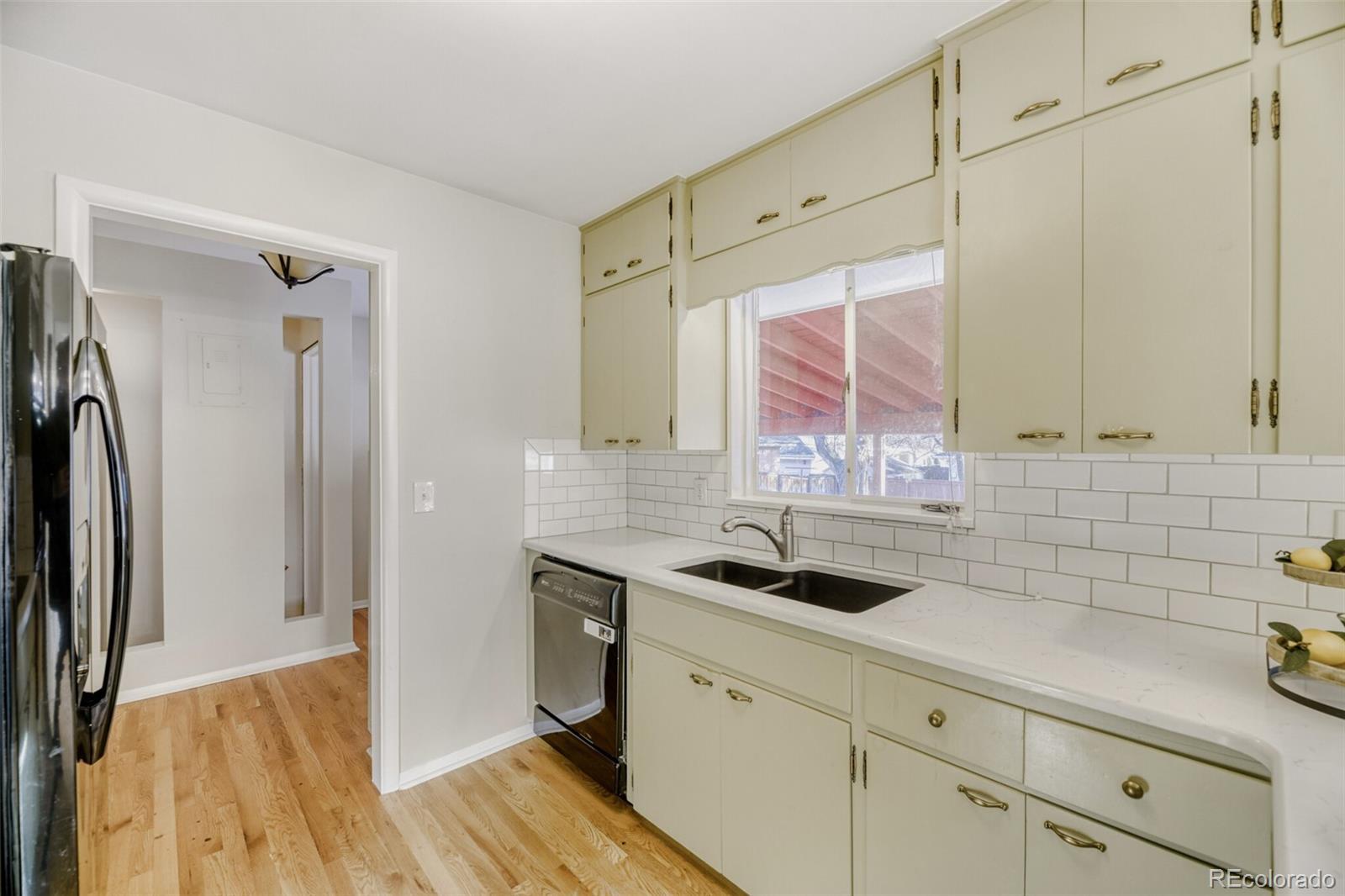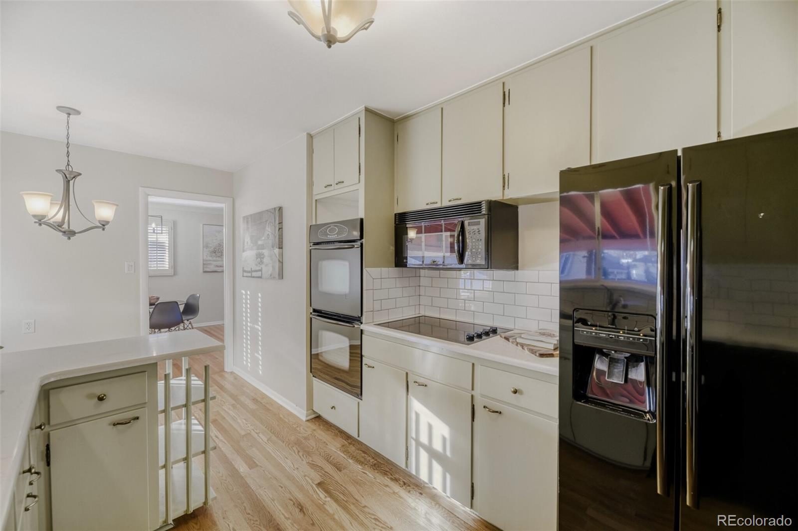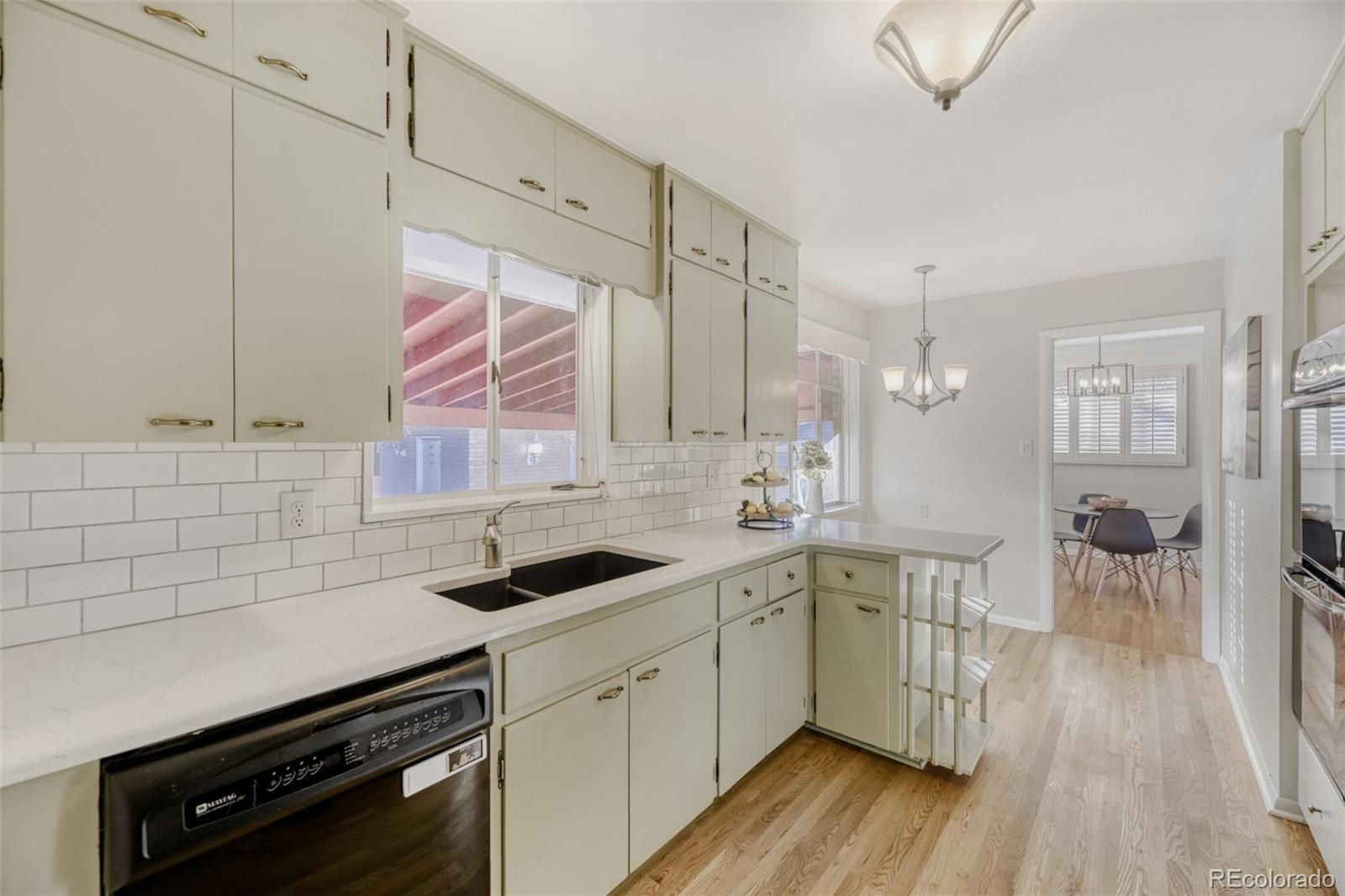 Welcome to your new home! A classic brick ranch located in the highly desirable Cherry Creek School District and zoned for Cherry Creek High School, West Middle School, and Cherry Hills Village Elementary, offering privacy, a surprising amount of space, and long-term upside in a prime Englewood location. The main level features original hardwood floors, plantation shutters, and great natural light throughout. The kitchen has a wonderful eat-in area, quartz countertops, subway tile backsplash, and light-sage painted cabinetry, blending modern updates with the home’s original character. A spacious living room with fireplace and a dedicated dining area create a comfortable, functional layout. The finished basement adds valuable living space with a large rec/great room, new carpet, a large utility room with storage area, an accessible crawl space with more storage, and a bedroom that would be great for a guest space. A true standout is the oversized detached two-car garage with even more storage in the attic. The large, private backyard is fully fenced and includes a large covered patio, offering great outdoor living space. Recent updates to the home include full interior paint, updated lighting, and basement carpet, while still allowing room for a buyer to update the bathrooms or preserve some of the home’s original charm. A well-maintained home with great bones, thoughtful updates, and additional room to make it your own—all in one of the area’s most sought-after school districts.