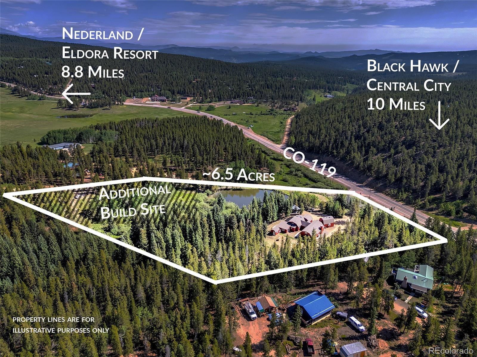 Come for the views, stay for the vibes! Trout Dance Ranch is a wild & wonderful mountain retreat where creativity, recreation & self-reliance meet. Spanning two separately deeded & buildable parcels - each with its own well permit - this rare offering combines live water, income potential & lifestyle versatility. Whether you’re dreaming of a short-term rental setup, hobby farm, alternative wellness retreat or artist’s hideaway, this is a space that invites imagination. The original 1965 barn-style home, expanded in 2011, offers a flexible floor plan ready to finish to taste. A large entertainer’s kitchen flows into the main living room, where vaulted ceilings & a wood stove create a warm gathering hub. A spacious family room, 2 primary suites (one with updated bath & dual closets) and a loft-style third bedroom in the northern wing provide ample room for guests, multigen living or remote work. In the southern wing, a concealed entry opens to nearly 800 sqft of hidden loft space above the kitchen & primary suite - ideal for a game room, media lounge or private retreat. Outside, the magic continues. A spring-fed, trout-stocked lake anchors the property, bordered by aspen groves & visited by moose, elk & hummingbirds. A handcrafted beach, boat launch & whimsical gazebo with barbacoa pit create a unique lakeside gathering spot. A year-round artesian spring supports the land, which also includes a chicken coop, trail network & a shipping container “ham house” - perfect for a recording studio or creative outpost. An oversized 2-car garage includes workshop space & lofted storage. Additional building sites offer room to grow - think guest cabins, yurts or more. Fiber internet is available & the property sees excellent sun exposure for solar potential. Located just off paved Hwy 119 with flat access to Nederland, Eldora & the Front Range, this is a rare chance to own live water & create your own mountain lifestyle playground.