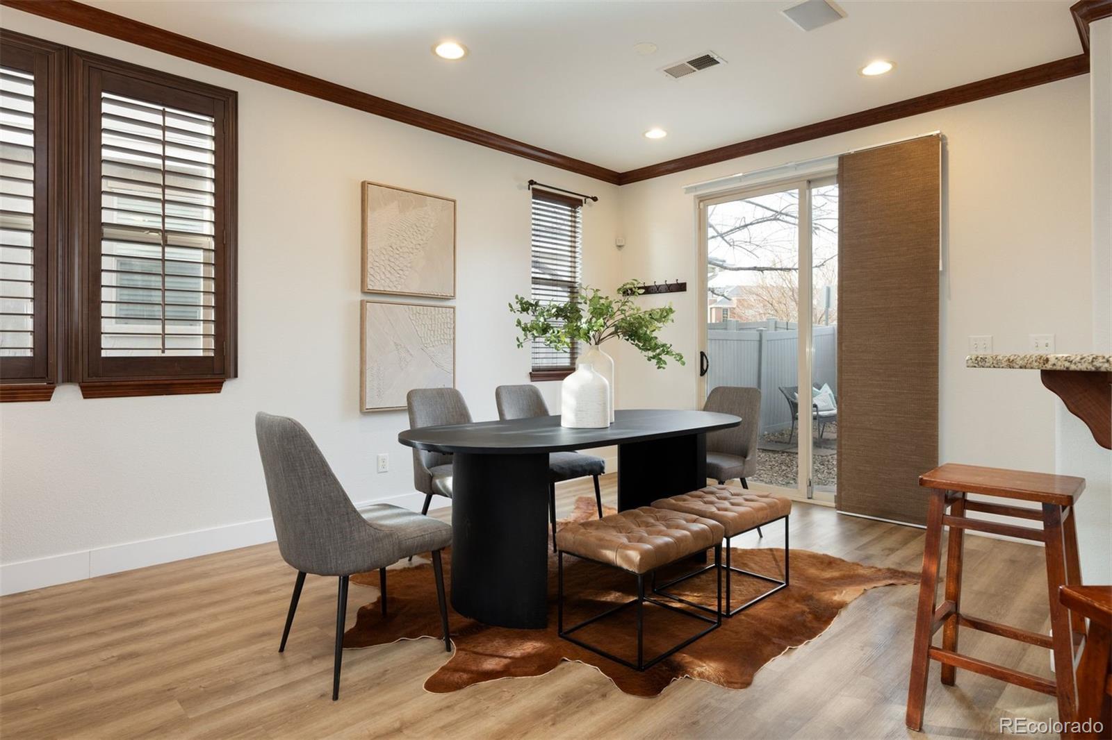 Bright and beautifully updated end-unit townhome in Cherry Creek Schools with 3 bedrooms, 3 baths, private fenced yard, and attached 2-car garage. This spacious home offers 1,758 finished square feet, tall ceilings, and an open, inviting floor plan filled with natural light. Thoughtful updates throughout include fresh interior paint, brand new carpet, updated lighting, and elegant plantation shutters - creating a move-in ready, polished feel. The kitchen flows seamlessly into the dining and living areas, perfect for everyday living and entertaining. Large windows and the end-unit location provide extra privacy and brightness rarely found in townhome living. Upstairs, enjoy a generous primary suite featuring dual sinks, a large walk-in closet, and a beautifully appointed en suite bath. Two additional bedrooms and a full bath complete the upper level, offering excellent space and flexibility. Step outside to your own private, fully fenced yard, ideal for pets, relaxing, or outdoor gatherings. The attached two-car garage adds convenience and great storage. Fantastic location just north of Arapahoe Road, minutes from Cherry Creek State Park, trails, parks, shopping, and dining, with easy access to major commuting routes. Enjoy low-maintenance living in a well-kept community close to everything. Don’t miss this exceptional home!