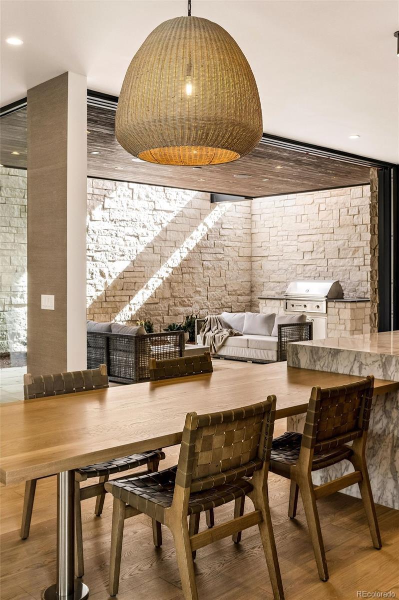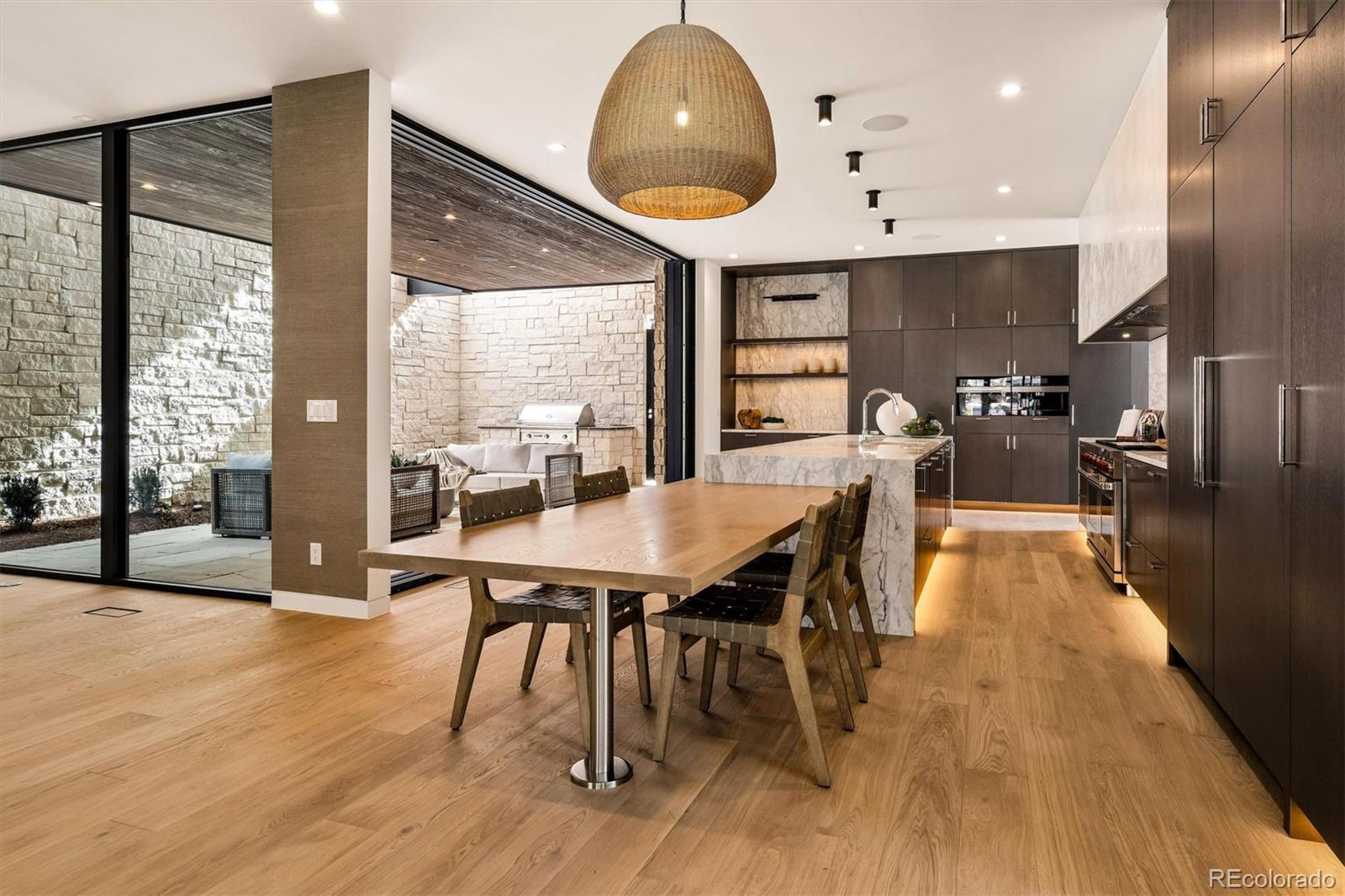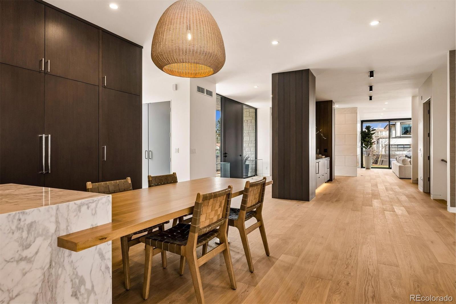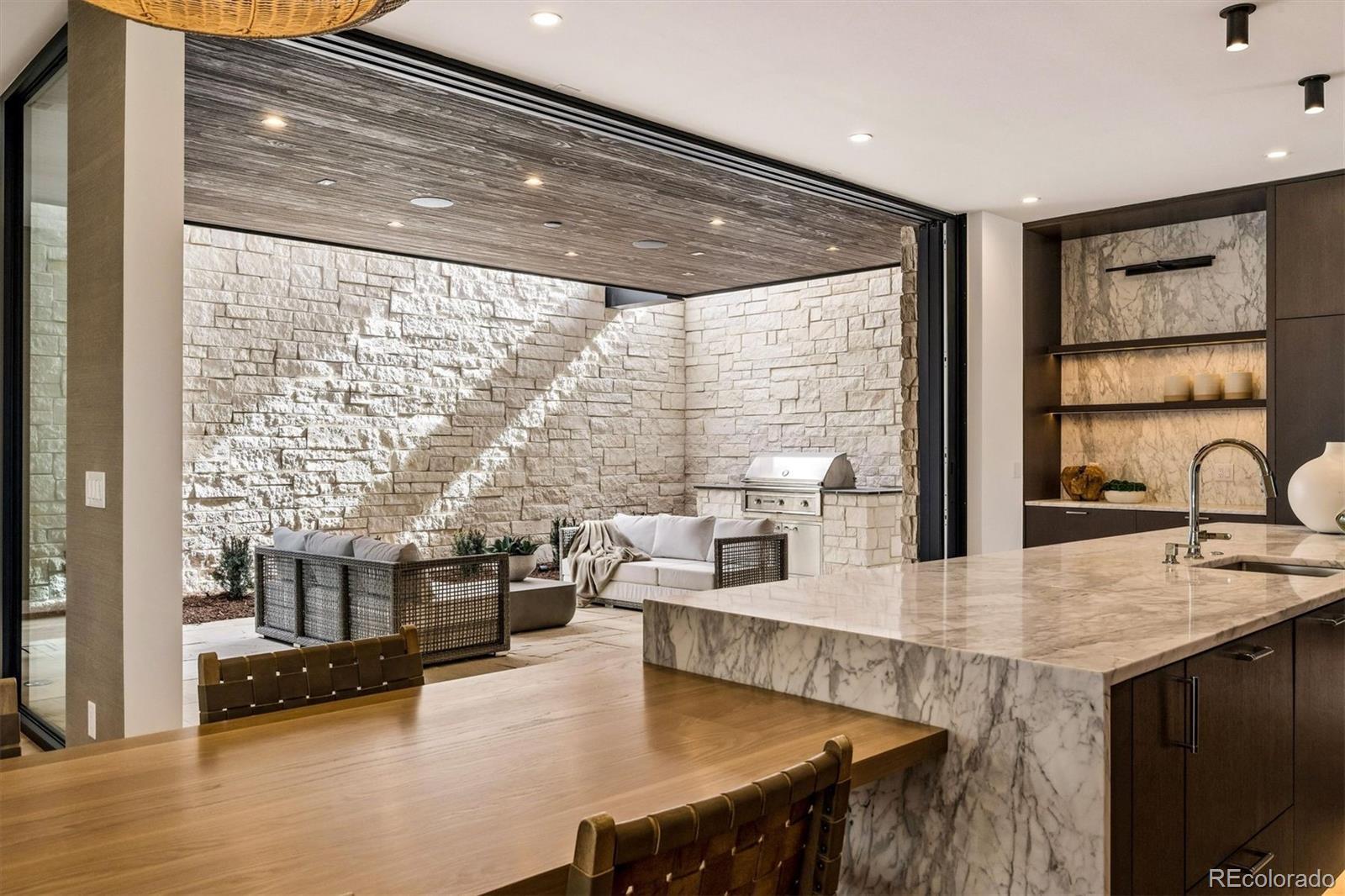 Located moments from Cherry Creek North—walkable to Denver’s premiere dining and retail, yet privately set apart—this newly constructed contemporary residence offers architectural integrity and highly curated design. Clad in natural limestone with accoya wood and copper detailing, the home is part of a thoughtfully-reviewed architectural community and gated enclave that ensures exceptional quality, lasting materials and cohesive design throughout. Interior finishes were curated by New York designer David Frazier, whose work has been featured in Architectural Digest, Elle Décor and Veranda. His signature use of layered wall coverings, natural stone, deep saturated hues and sculptural lighting creates warm interiors with depth, texture and timeless appeal. The home includes four bedrooms, each with an ensuite bath. The primary suite features heated floors, steam shower, bidet and a beautifully curated walk-in closet. Wide-plank oil finished white oak floors, honed marble counters, hydraulic elevator and seamless museum-quality baseboards highlight the exceptional level of finish throughout. Designed for entertaining, the kitchen centers on a Calacatta marble island and opens to a covered, stone patio through expansive sliding doors for seamless indoor-outdoor living. Wolf /Sub-Zero appliances, built-in Miele coffee maker, multiple dishwashers, wine refrigeration and generous prep space elevate the experience. A bar connects dining and family room. The lower level features an 800-bottle temperature-controlled wine cellar designed for collectors. Savant whole-home audio, Lutron lighting control, dual Navien tankless systems, whole-house humidification, and three independent AC condensers provide exceptional climate, efficiency and year-round comfort. This is the only newly constructed home available in Cedar Estates, offering it new owner a refined architectural setting and minimal upkeep. True lock-and-leave living steps from Cherry Creek’s energy and amenities.