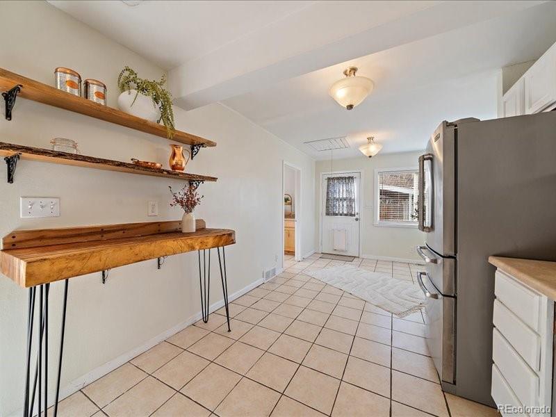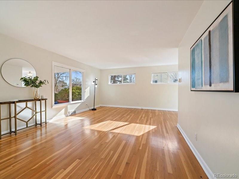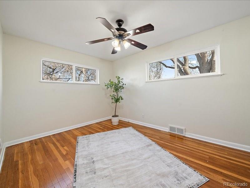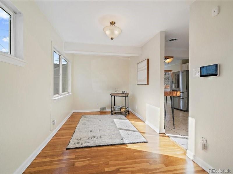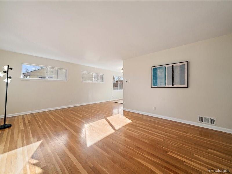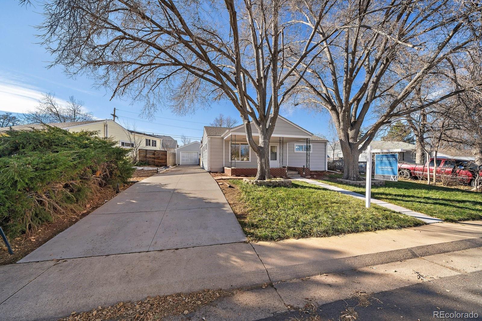 Welcome home to this light-filled Harvey Park ranch offering smart space, future potential, and a hard-to-find oversized garage with an attached workshop and small finished storage room or studio. Inside, real hardwood floors, fresh interior paint, updated fixtures, and large windows create a bright, welcoming, main level floor plan. The spacious kitchen has stainless steel appliances and plenty of room to cook, gather, and possibly reconfigure down the road if you decide to add a second bath. A true bonus at this price point is the full, dedicated main-level laundry room with full-size washer and dryer—no more hauling baskets through kitchens or the basement. Flexible living and dining areas give you options for a home office, play space, or future bedroom conversion. Newer AC water heater. Step outside to a fully fenced yard with covered front and back patios, ready for summer grilling, pets, and outdoor living. An extended solid-slab concrete driveway provides off-street parking for an RV or multiple vehicles, giving you the space you need for cars, toys, and guests. All of this sits in Denver’s Harvey Park neighborhood, known for its mid-century homes, parks, and easy access to downtown and the mountains. The area is also included in Denver’s new Far Southwest Area Plan—a 20-year, council-adopted vision guiding future growth, transportation, and reinvestment in Harvey Park and Harvey Park South—plus the nearby 72-acre Loretto Heights campus is being transformed into a mixed-use hub with shopping, housing, and preserved open spaces, adding long-term momentum to this corner of the city.
