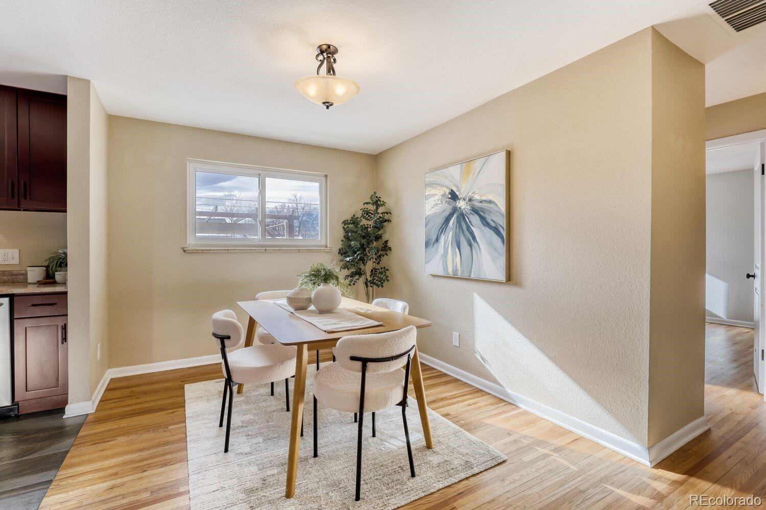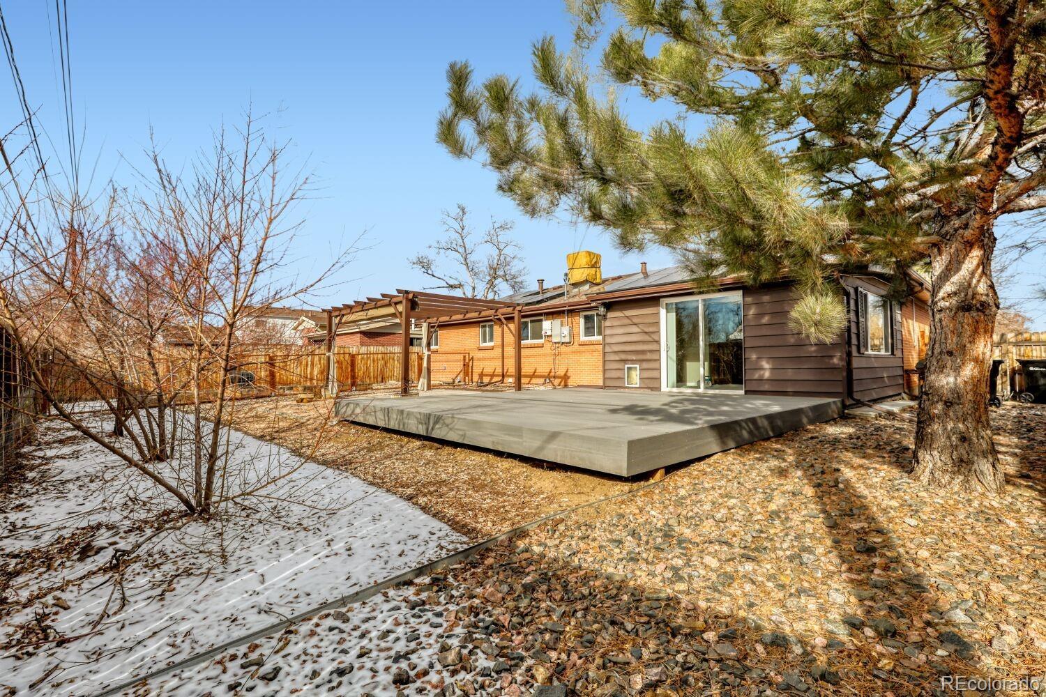 Tucked away in the desirable Allendale neighborhood, this well-maintained brick ranch offers thoughtful updating and abundant living space. The main level features a sunny living room, dining area, and a spacious kitchen with stainless steel appliances, granite countertops and views to the backyard. The primary bedroom includes corner windows and ample closet space. A full bath with stone surfaces accompany two additional main-floor bedrooms. The finished basement provides two additional bedrooms, an office, a second bath, large family room and a laundry with a built-in kitchenette. Enjoy the expansive backyard, featuring a raised deck, pergola, garden boxes, and fruit trees: ideal for entertaining or relaxing throughout the seasons. Recent upgrades include a newer electrical panel (2019), newer roof (2019), owned solar (2021), radon mitigation (2019), fully permitted deck(2023), fresh paint and carpet. Conveniently located near Old Town Arvada, Golden-Union Station light rail, shopping, dining, I-70 Mountain Access, schools, and parks.