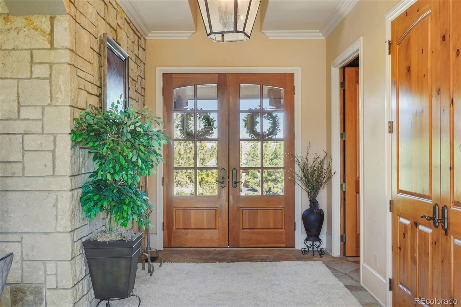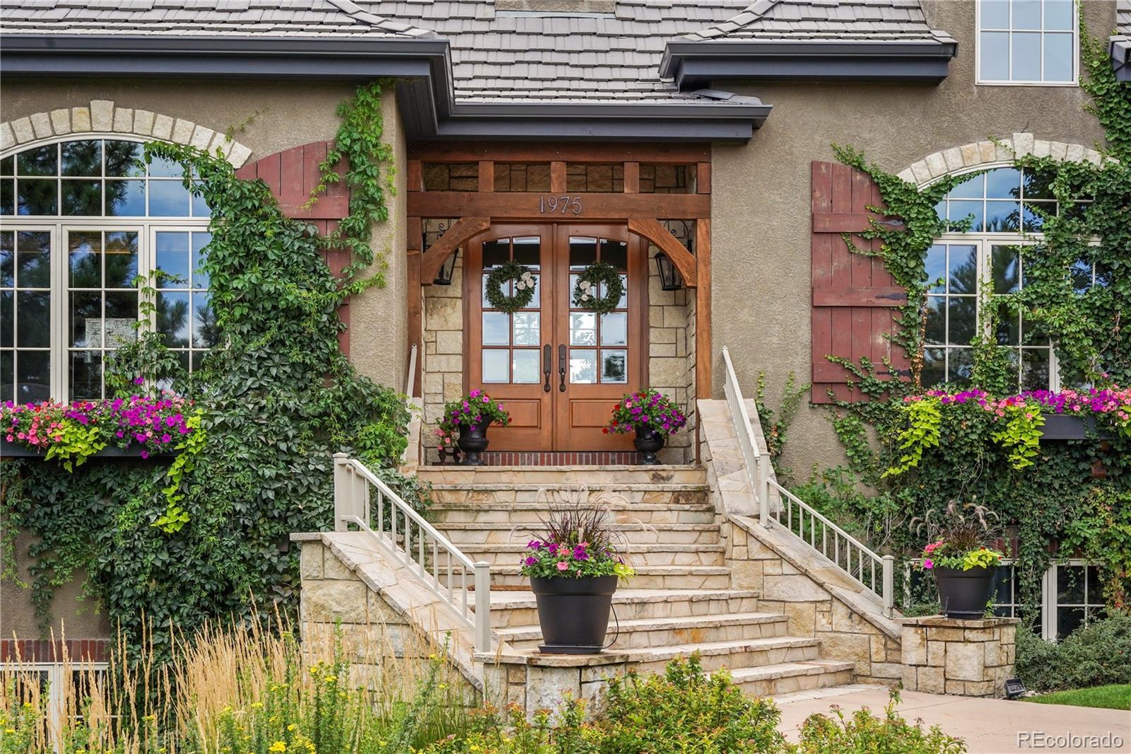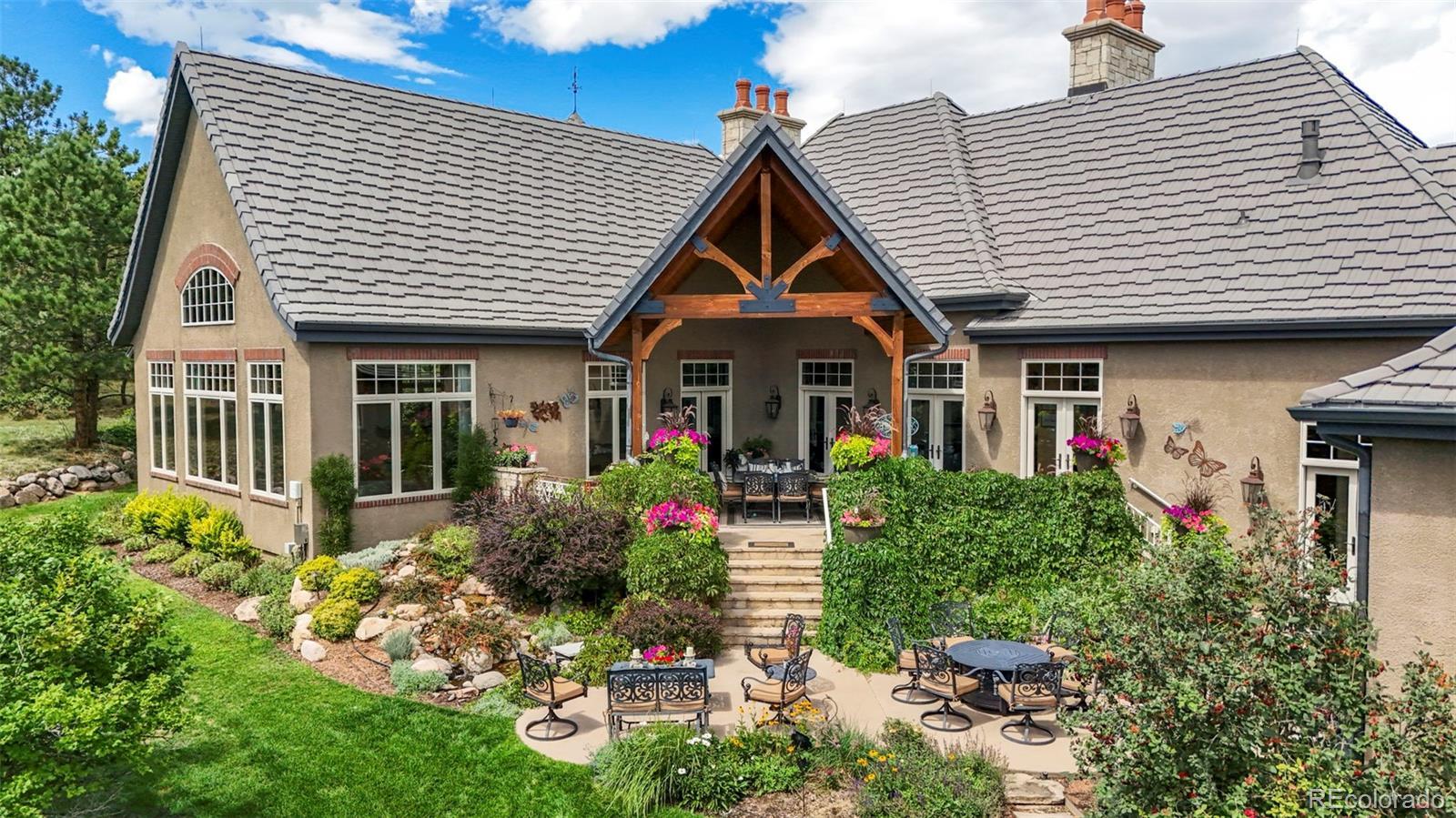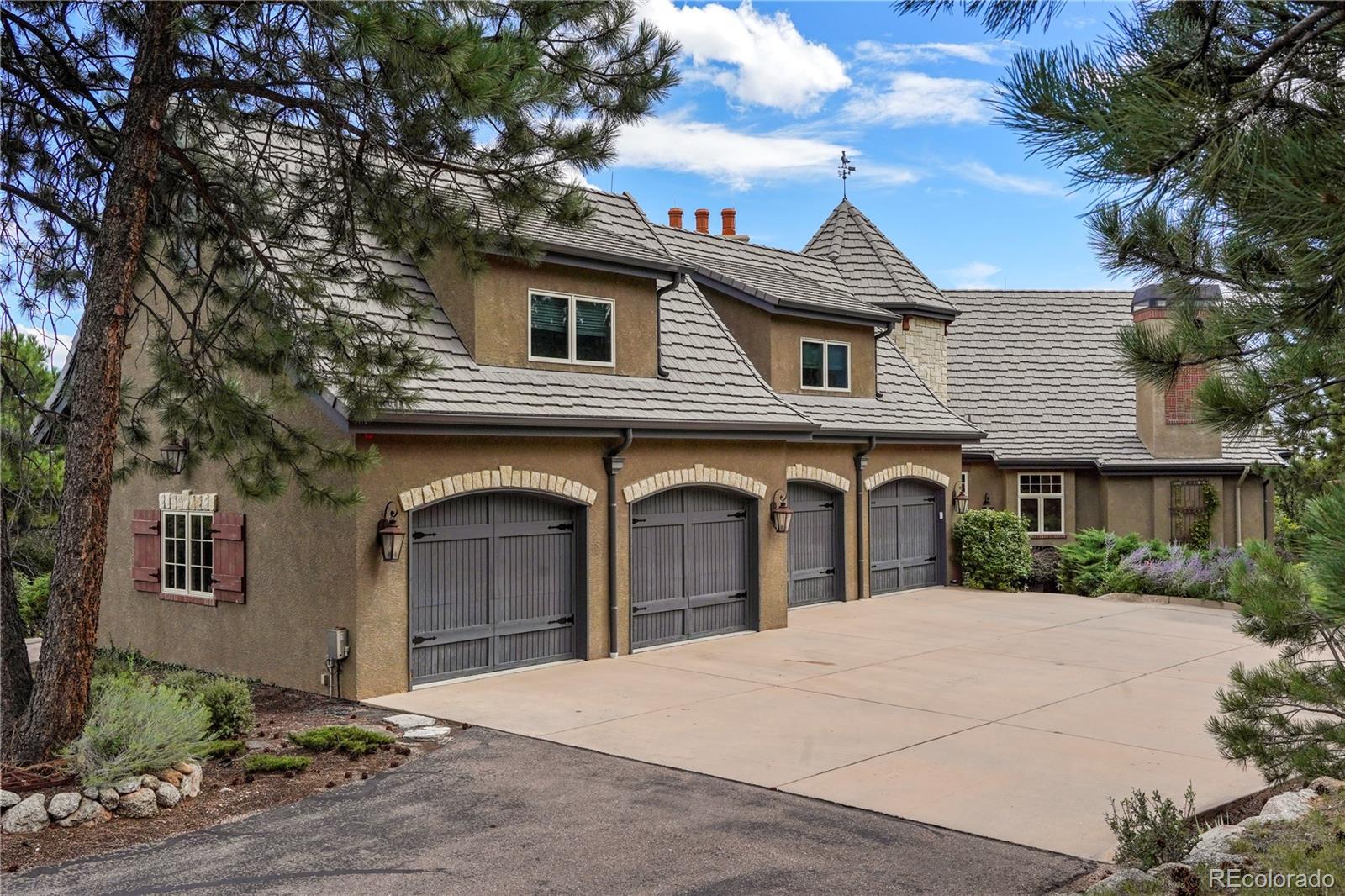European inspiration… Exceptional architecture, fine craftsmanship and exquisite materials blend to create this one-of-a-kind getaway in the sought after Stratton Preserve. Set on 2 private and tranquil acres, the lot overlooks Cheyenne Mountain to the back and city lights to the front. True quality on display as you enter the house. Flagstone entry extends through the main corridor. The great room style living and dining room features vaulted ceilings with dormer windows, a woodburning fireplace at each end. The spacious gourmet kitchen connects to the hearth room to the back that opens to a cozy entertaining patio. The front landscaping is mature and designed for low maintenance while the back contains lush gardens and a water feature. Rounding out the main level is the primary suite with tandem baths and large walk-in closet and a study with gas fireplace and built ins. Above the spacious four car garage is a guest suite with living area. The lower level contains three en-suite bedrooms, large recreation room, wet bar, extensive wine cellar and theatre room. The home is located close to the Stratton Open Space, schools, downtown, hospitals, and I-25.
