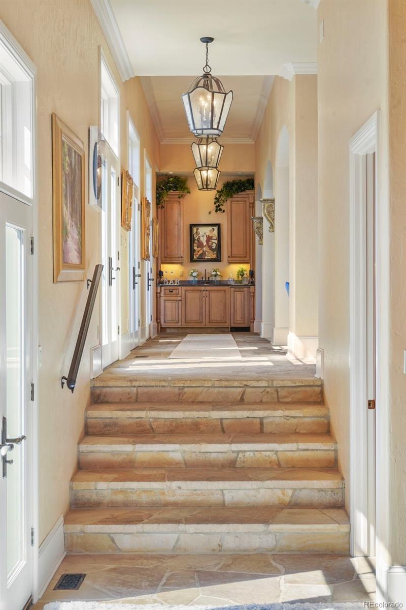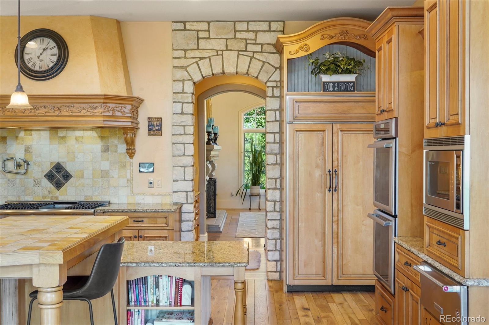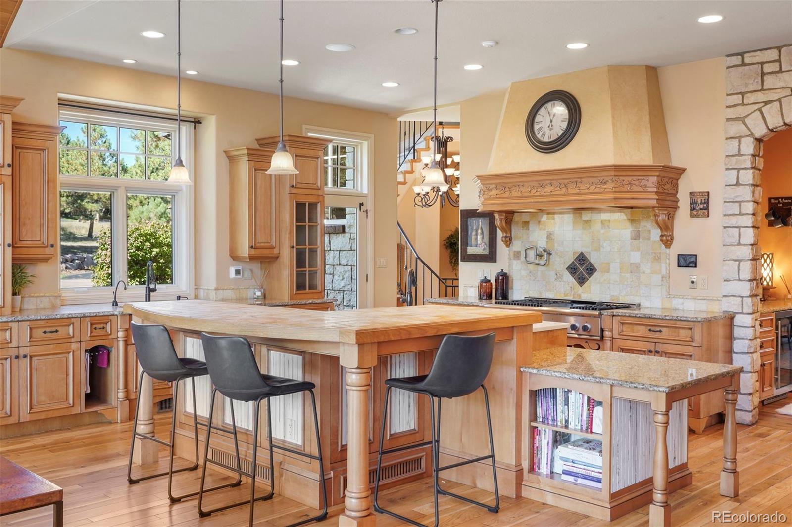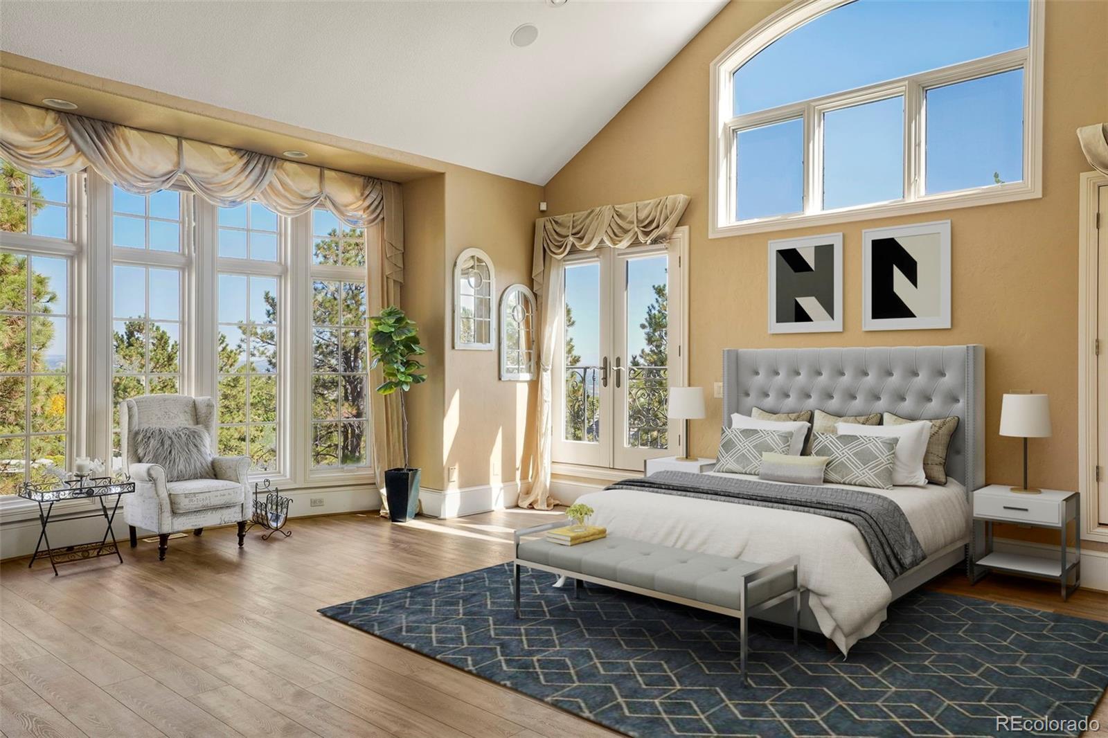 European inspiration… Exceptional architecture, fine craftsmanship and exquisite materials blend to create this one-of-a-kind getaway in the sought after Stratton Preserve. Set on 2 private and tranquil acres, the lot overlooks Cheyenne Mountain to the back and city lights to the front. True quality on display as you enter the house. Flagstone entry extends through the main corridor. The great room style living and dining room features vaulted ceilings with dormer windows, a woodburning fireplace at each end. The spacious gourmet kitchen connects to the hearth room to the back that opens to a cozy entertaining patio. The front landscaping is mature and designed for low maintenance while the back contains lush gardens and a water feature. Rounding out the main level is the primary suite with tandem baths and large walk-in closet and a study with gas fireplace and built ins. Above the spacious four car garage is a guest suite with living area. The lower level contains three en-suite bedrooms, large recreation room, wet bar, extensive wine cellar and theatre room. The home is located close to the Stratton Open Space, schools, downtown, hospitals, and I-25.