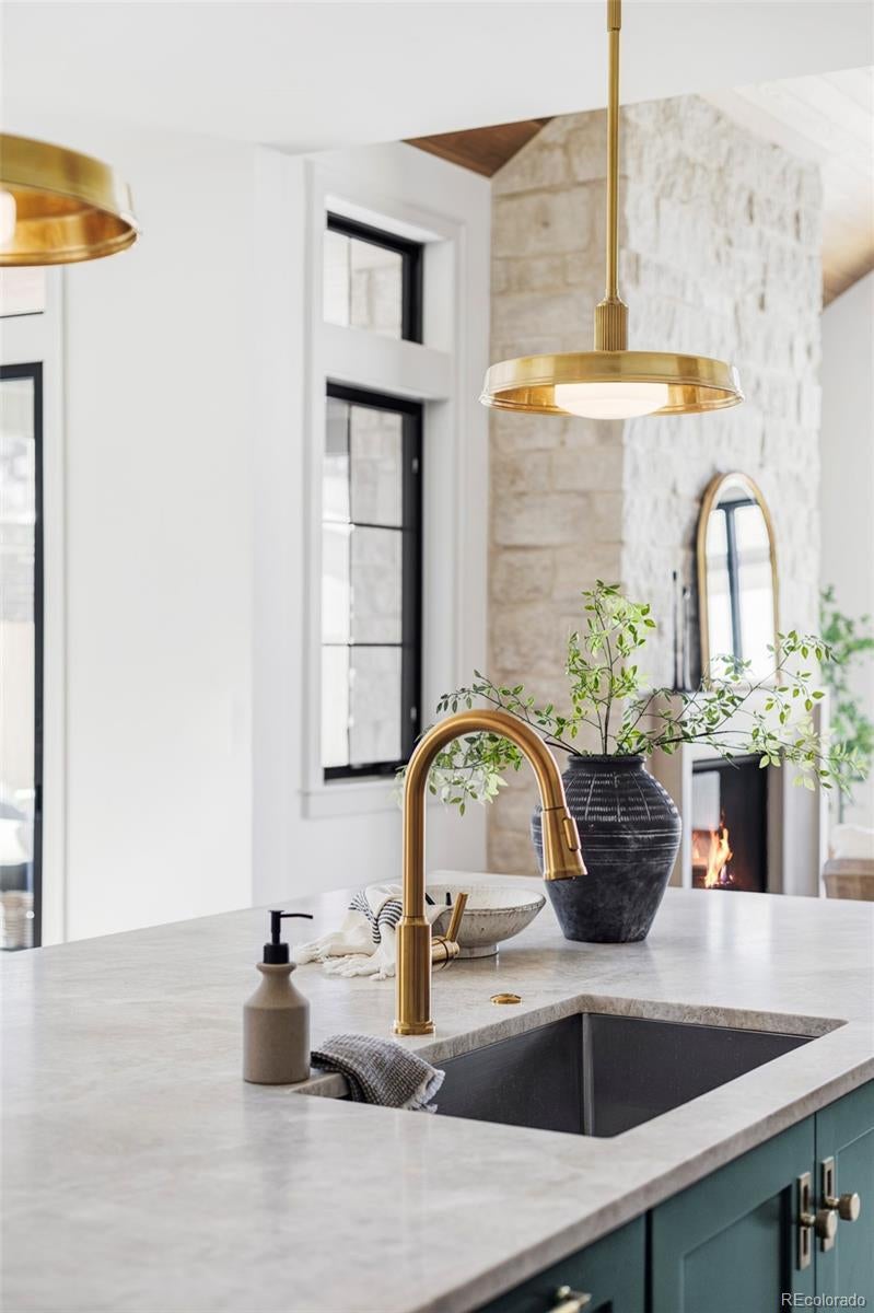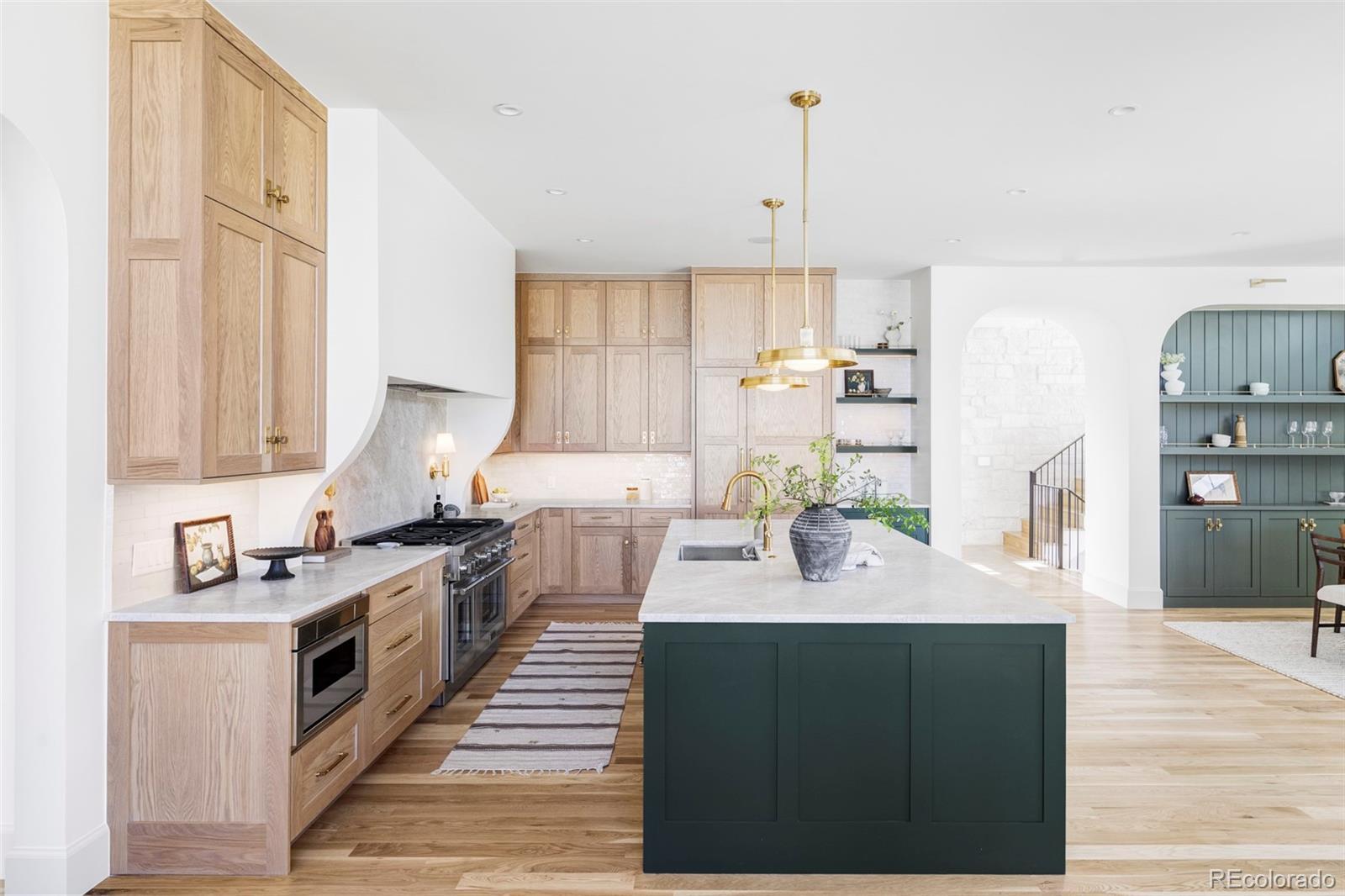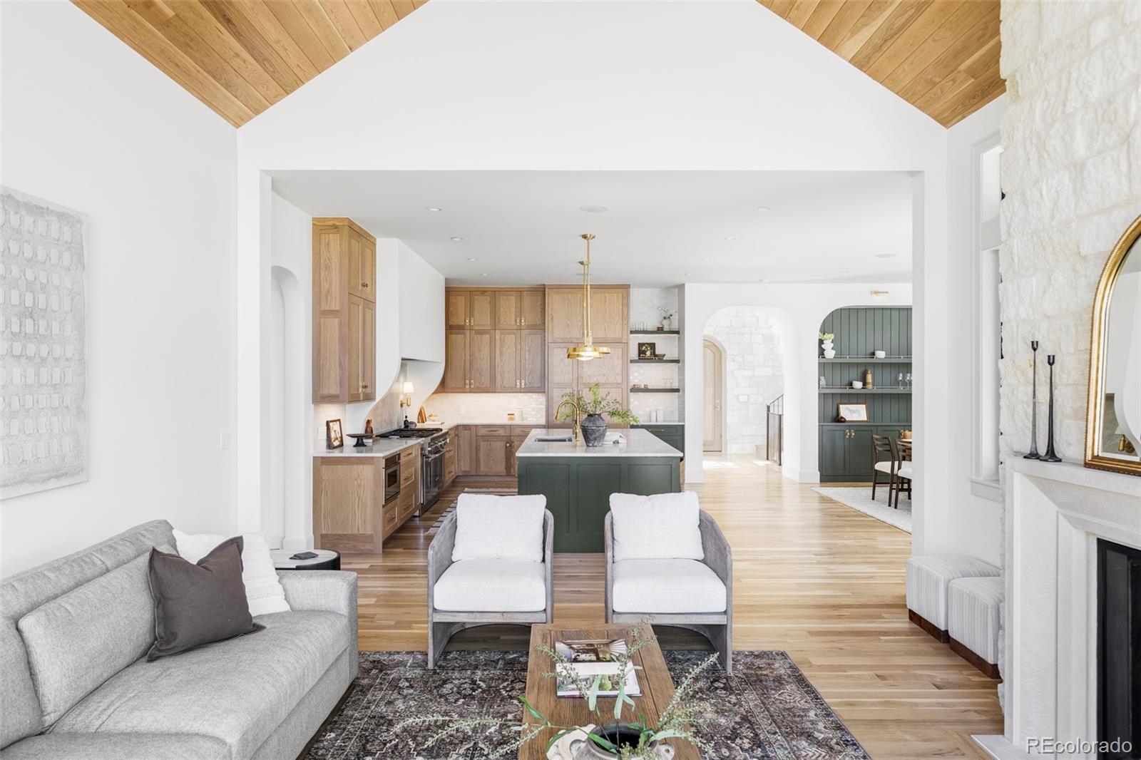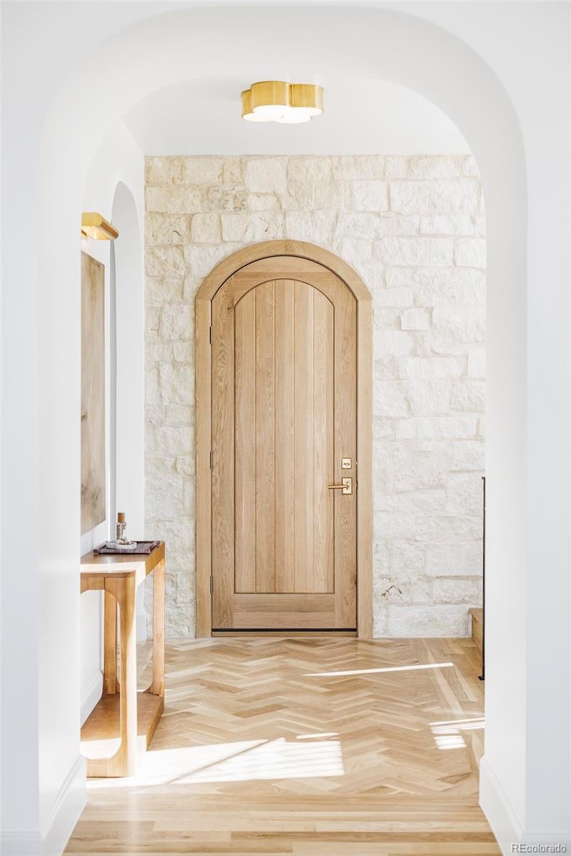 Welcome to this exceptional newly constructed modern Tudor, where timeless architecture meets curated design. Wrapped in natural quarried stone, this striking home makes an unforgettable first impression with sculptural rooflines, an arched entry, dramatic floor-to-ceiling windows, and a refined classic façade. Inside, wide-plank 4” natural white oak floors, designer wallcoverings, Visual Comfort lighting, artisan hand-made Moroccan tile, wood-accented vaulted ceilings, three fireplaces, arched openings, custom trim and built-ins, and Emtek hardware reflect thoughtful craftsmanship throughout. At the heart of the home, the chef’s kitchen features a professional-grade Thermador appliance package and stunning Taj Mahal quartzite surfaces—blending everyday function with elevated style. Upstairs, the serene primary suite offers heated bathroom floors and enhanced sound insulation, including R19 between floors and targeted sound batts for added privacy. Built for performance as well as beauty, the home was energy tested at 1.22 ACH and includes an R60 spray foam attic, dual HVAC systems with steam humidifier, Energy Recovery Ventilation (ERV), and a hot water recirculation system. Whole-home CAT6 wiring, prewiring for 5.1 surround sound and security cameras, and a dedicated office support modern living. Thoughtfully built. Exceptionally finished. This is a rare opportunity to own a home where craftsmanship, comfort, and performance come together seamlessly.
