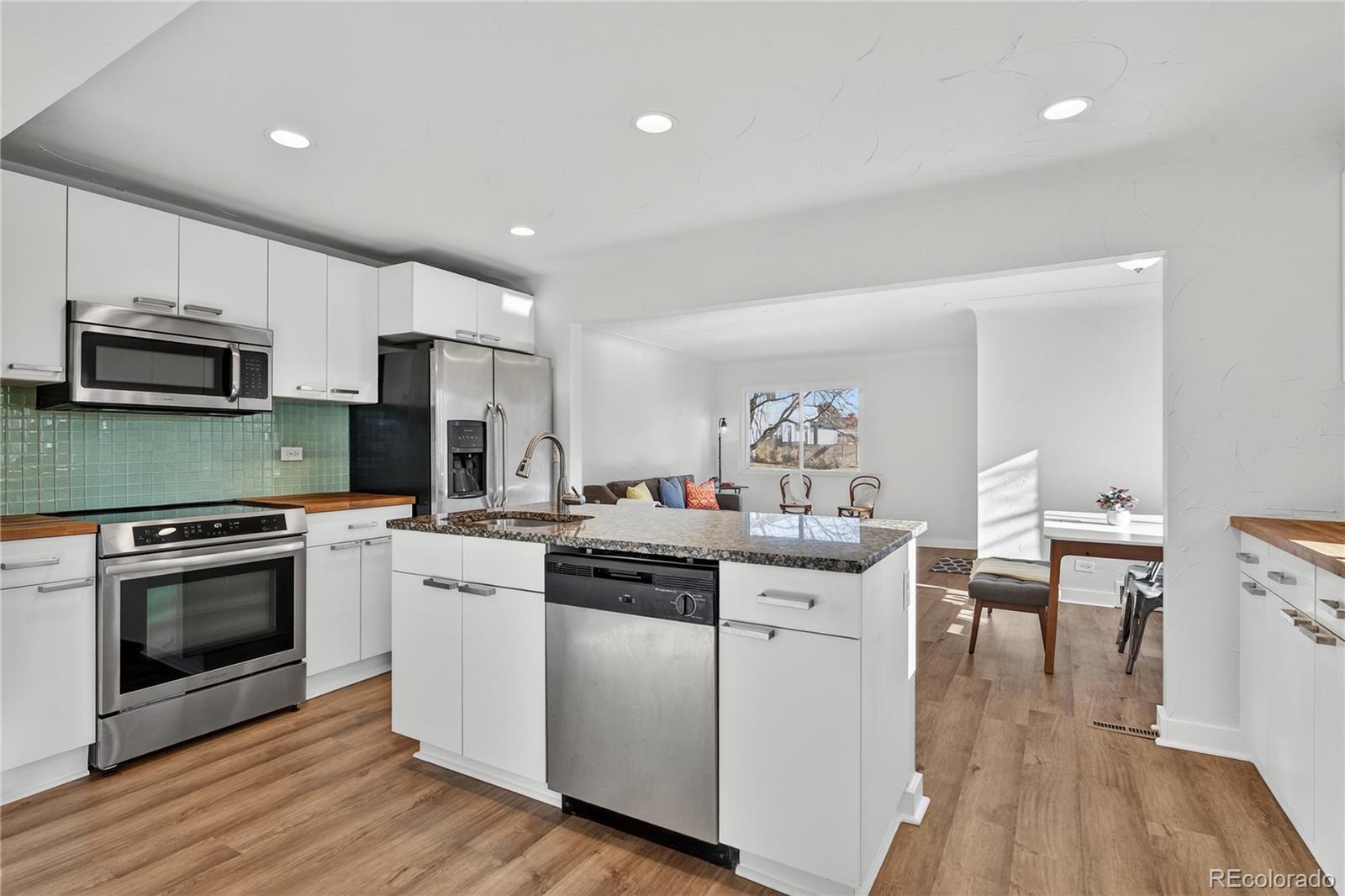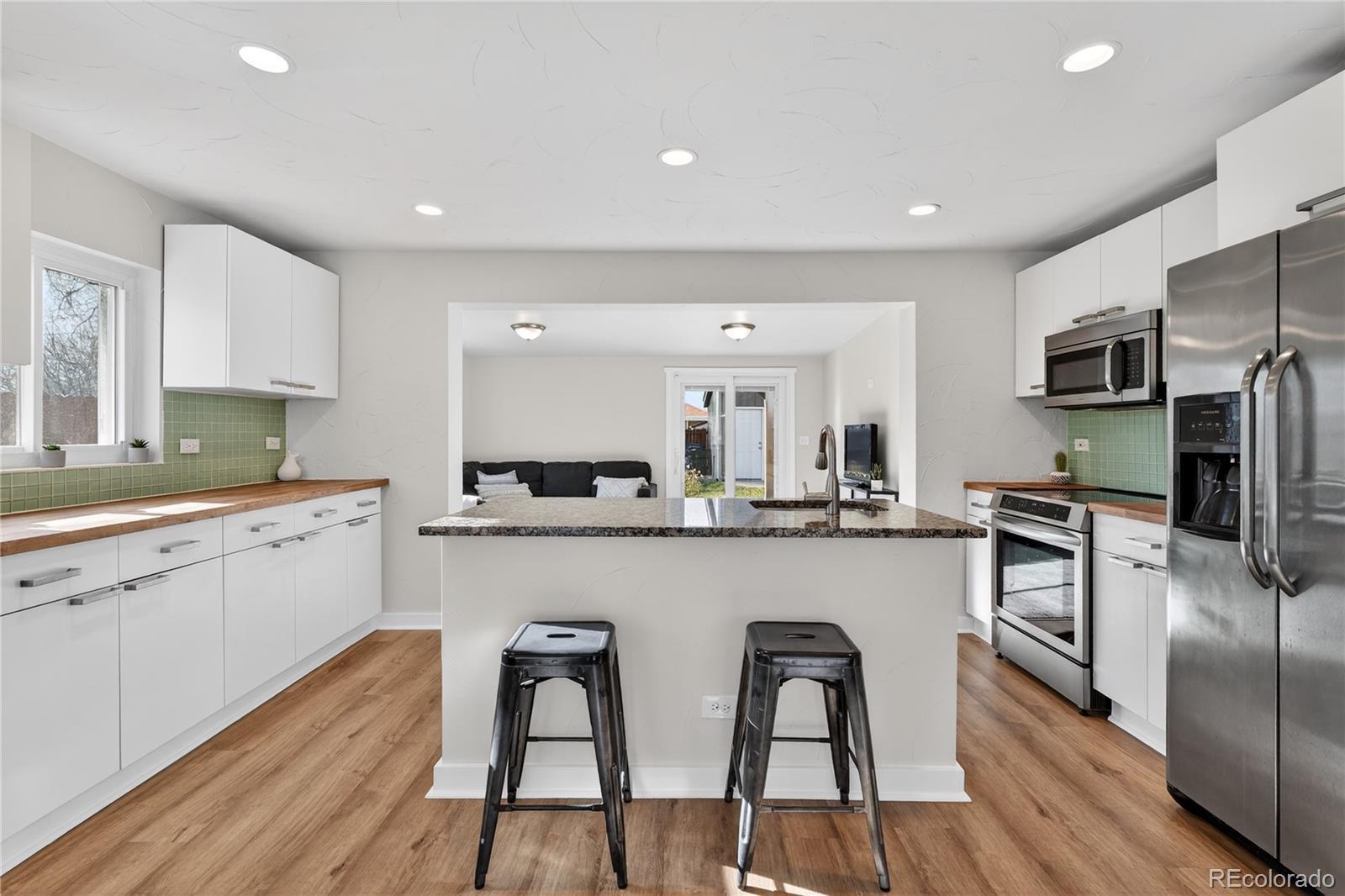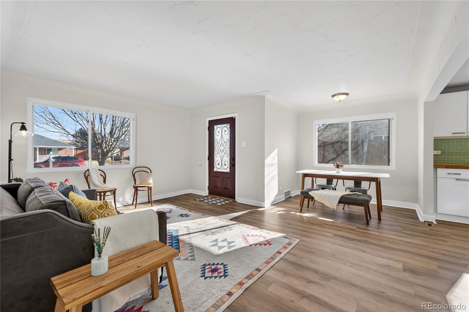 Welcome to this move-in-ready, beautifully updated three-bedroom ranch with a family room on an oversized lot in highly sought-after Park Hill. Recently enhanced with a brand new sewer line from the house to the main and many newer windows, this home blends classic charm with modern style. Enjoy original cove ceilings, abundant natural light, and brand-new durable LVP flooring throughout. The open layout flows easily from the spacious living room to the stunning kitchen, where warm wood countertops, a large center island, and a breakfast bar create the perfect space for gathering, cooking, and baking. A cozy family room offers a second living area with direct access to the peaceful backyard and the fantastic newer garage with exceptional storage. The home features three generous bedrooms, including a primary suite complete with a huge walk-in closet and private en-suite bath. A guest bathroom and full-size stacked washer/dryer add everyday convenience. Step outside to your backyard oasis—an expansive, serene retreat ideal for relaxing or entertaining. Enjoy mature shade trees, raised garden beds ready for spring planting, and a spacious patio with a pergola for outdoor dining or lounging. Extensive updates include a new kitchen range (2024), new disposal (2024), new carpet and flooring (April 2025), a 2021 roof, encapsulated crawl space with waterproof membrane, and refreshed landscaping with new trees in both the front and back yards. All of this in a prime location—just a short walk to the shops and restaurants on Kearney and 23rd, minutes from City Park and the Denver Zoo, and with quick access to downtown. Sellers are also including a one-year home warranty for added peace of mind.
