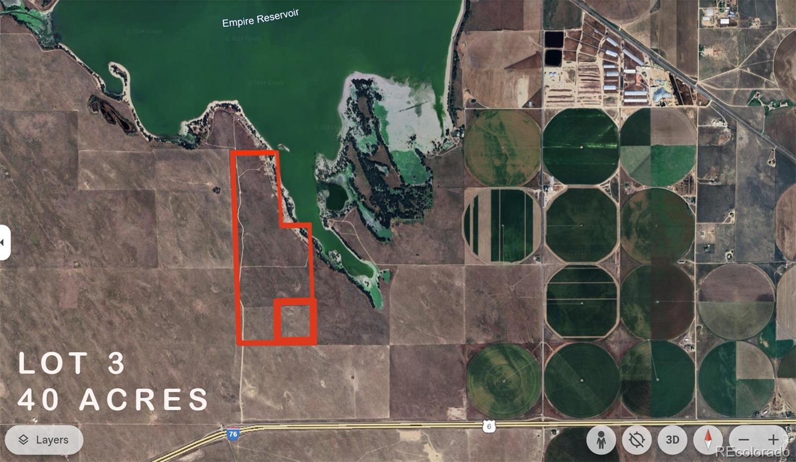 Introducing an exceptional 40-acre land parcel in Orchard, Colorado, where the possibilities are as vast as the landscape itself. This undeveloped property is your blank canvas, offering the potential to create not just one, but two single-family homes, allowing you to craft your ideal living space in this picturesque setting. As if that weren't enough, this property also includes two boating permits for the exclusive Empire Reservoir. Imagine having the privilege of enjoying your favorite water sports in the serene waters of your own private lake. Convenience and access to amenities are key features of this location, with Denver just under an hour away, the Denver International Airport a mere 45 minutes, and the upcoming Rodeo Dunes golf course only 15 minutes from your future doorstep. Whether you seek the tranquility of nature or the excitement of nearby urban attractions, this property offers the perfect balance. This is a rare opportunity to bring your vision to life on a grand scale in Orchard, Colorado. Don't miss out on the chance to create your own private oasis in this stunning and versatile location. If 40 acres isn't enough for your needs, the sellers are also selling the adjacent 40 acre parcel (MLS ID# 5081932) and they are also open to selling the entire 320 acre property (which include a private boat club). Please reach out for more information, questions or to schedule a tour.