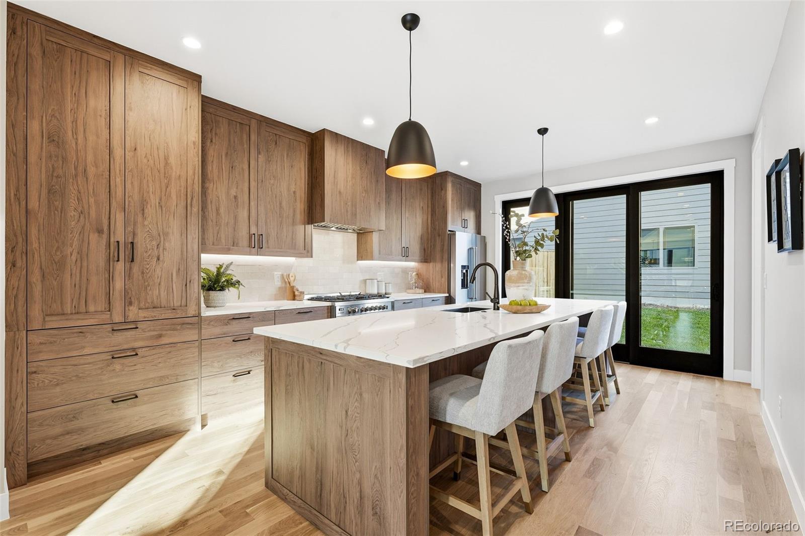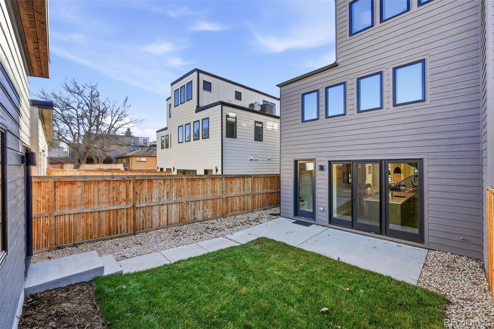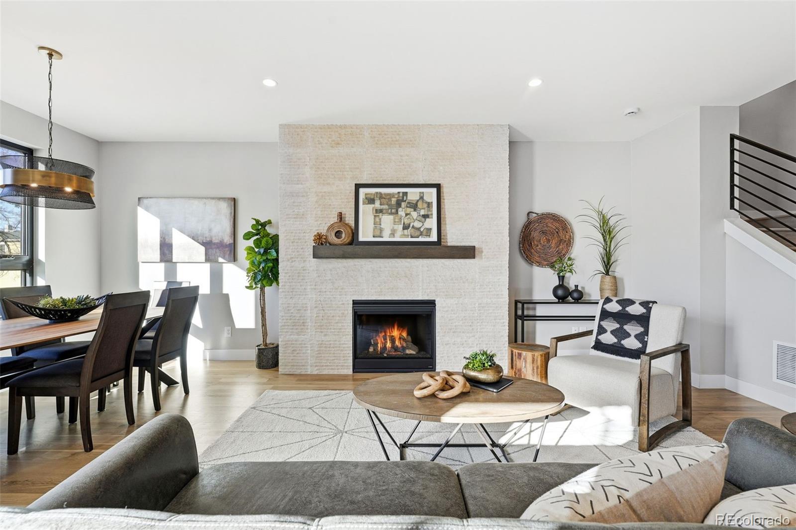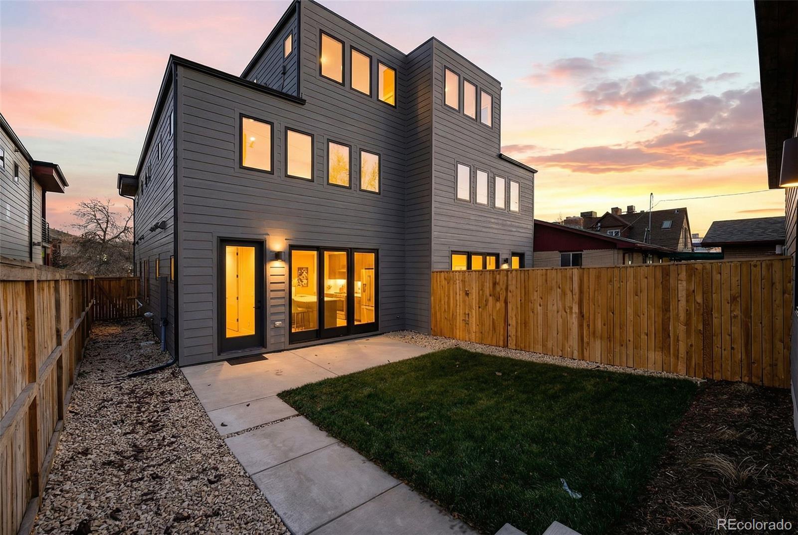 Modern Duplex with Stunning Mountain Views in vibrant Platt Park/Rosedale neighborhood. Meticulously crafted modern duplex, designed with both style and sustainability in mind. Just steps away from the heart of South Broadway and Pearl Street, known for its eclectic mix of boutiques, restaurants, and parks. A perfect blend of cutting-edge design and eco-conscious features that prioritize energy efficiency and sustainability. Main floor features a bright and airy open concept, highlighted by soaring 9-foot ceilings and sliding glass doors that flood the space with natural light. Gourmet kitchen, with a large island, is a chef’s dream, equipped with quartz counters, high-end tile, pendant lighting, and stainless steel appliances. Living room boasts an open concept floorplan with seamless transition to the private back patio extending your living space outdoors. Dining room is spacious and offers the ideal entertaining floor plan. Every inch of this home is thoughtfully designed, with custom stained hardwood floors, sophisticated tile selections, and modern lighting that add character and warmth. Primary suite is a luxurious retreat, featuring an oversized walk-in closet, double vanity, and a spacious shower and freestanding soaker tub. Two additional bedrooms and a full bath, along with a conveniently located walk-in laundry room, complete the second floor. Third floor is the perfect space to unwind, featuring a sitting room, wet bar, 4th Bedroom or office, a full bath, and an incredible rooftop deck with views of the mountains. The versatile bonus room can be tailored to your needs—whether you want a home office, gym, or private place to watch TV or read a book. There is no shortage of space for all your belongings with a two-car garage with 8' doors for easy access for you snowboards/skis or Thule racks. Prime location with a mountain view.