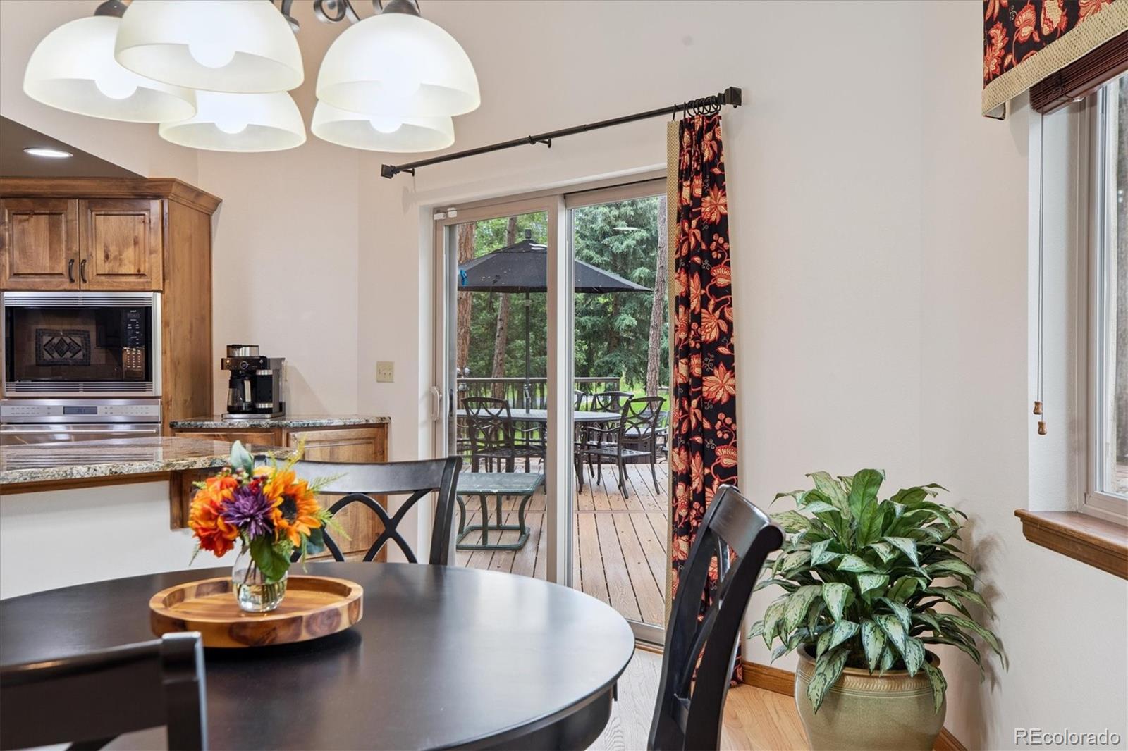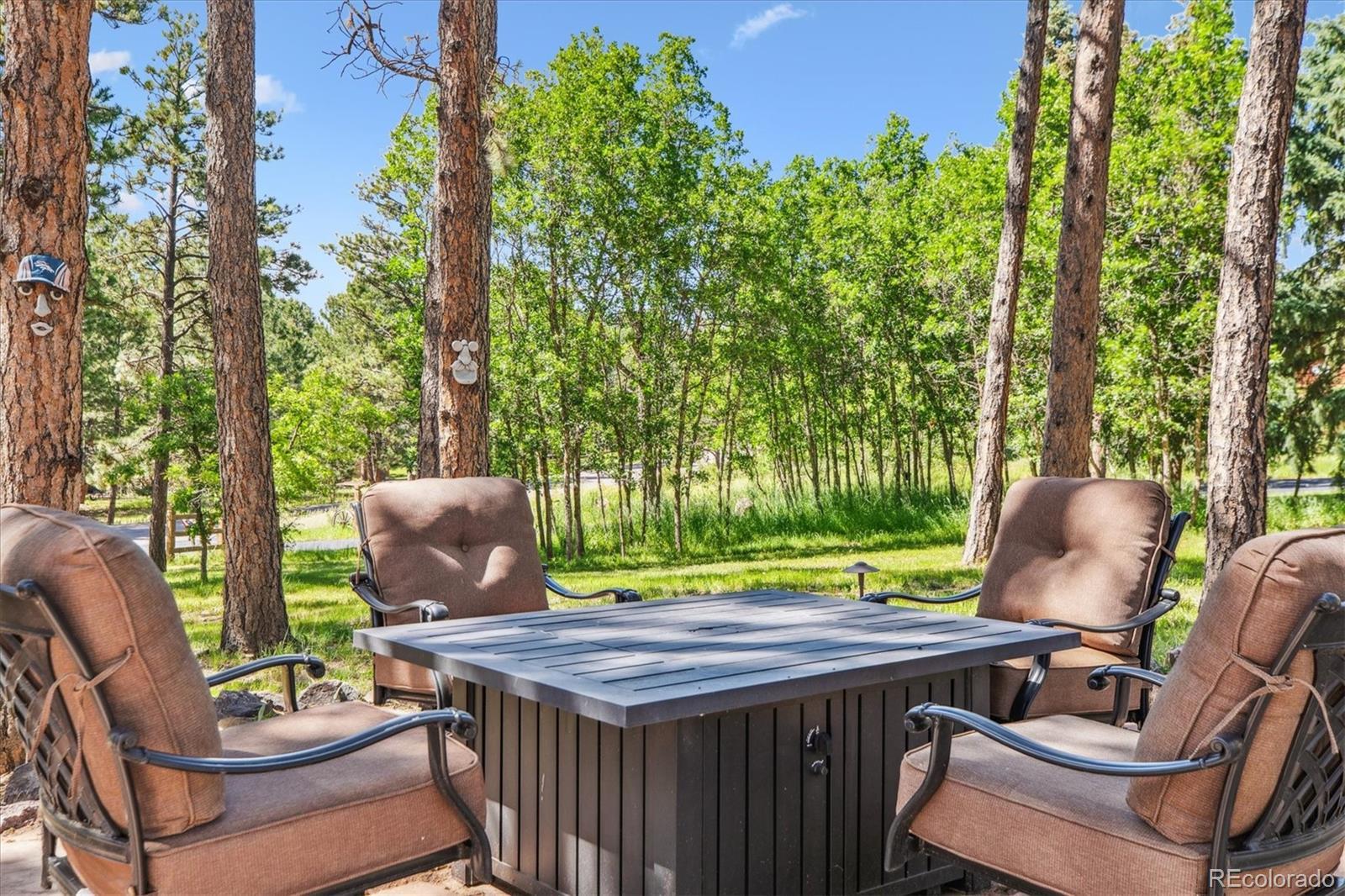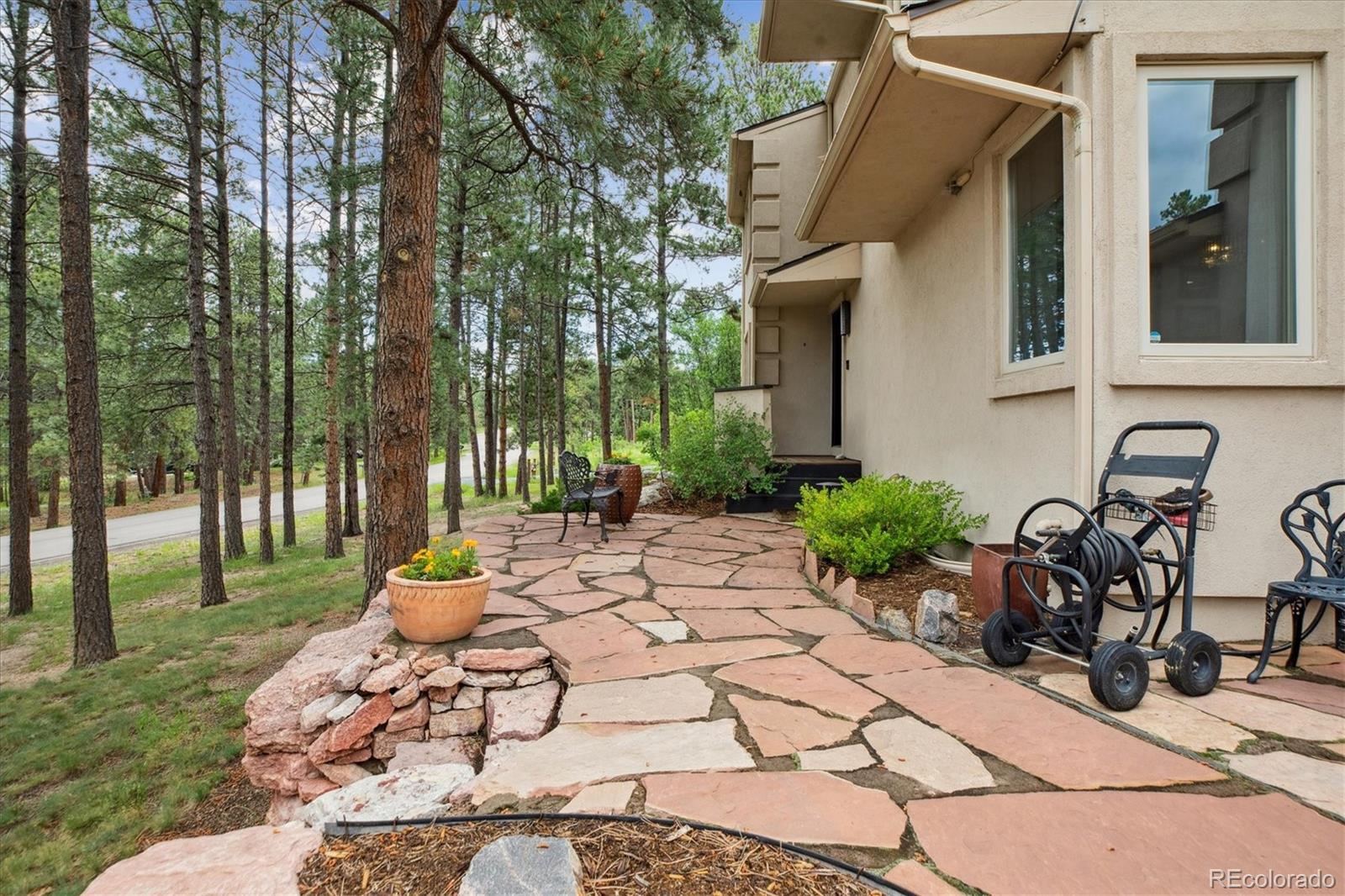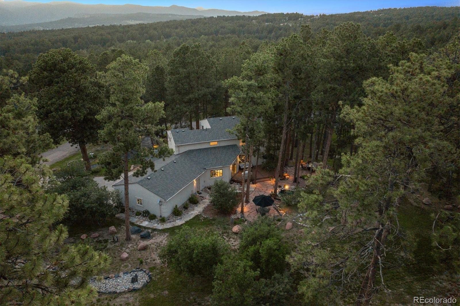 Spectacular Monument Retreat! Nestled on a private, wooded cul-de-sac lot in highly sought-after Woodmoor, this exceptional property offers a rare blend of serene forest surroundings and sun-splashed green meadows, creating a truly park-like setting. Step inside to discover a warm, inviting floor plan highlighted by refinished solid oak flooring, plush new carpet, & high-quality upgrades throughout. The spacious yet private main-floor office provides the perfect setting for working from home or unwinding with morning coffee and a favorite book. The home flows seamlessly into a generous Family Room and a beautifully appointed gourmet kitchen featuring granite countertops, a double oven, gas cooktop, premium Wolf stainless appliances, an expansive center island with seating, a sunlit breakfast nook, a large walk-in pantry, and an elegant formal dining room. A granite wet bar with wine cooler adds a refined touch to the main level. Embrace peaceful Colorado living as you step outside! A stunning rock waterfall and pond create a tranquil backdrop for wildlife watching, while the Trex deck with wrought-iron railings and wraparound flagstone patio offers perfect space for entertaining. Upstairs, the primary suite showcases a newly renovated five-piece bath adorned with marble finishes, a custom oversized shower, stylish dual vanities, a deep soaking tub, and expanded custom walk-in closets. The spacious secondary bedroom features its own walk-in closet and access to a beautifully updated three-quarter bath.The garden-level basement expands your living space with a large game room, flexible bedroom, an impressive granite sports bar, additional three-quarter bath! Additional highlights include a spacious 4 car Garage, newer roof and Milgard Windows! Ideally located just half a mile from The Country Club at Woodmoor, w/18-hole golf course, tennis/pickleball, fitness center, pools, and dining. Close to Tri-Lakes, shopping, parks, trails, downtown Monument, & I-25 and Hwy 83.
