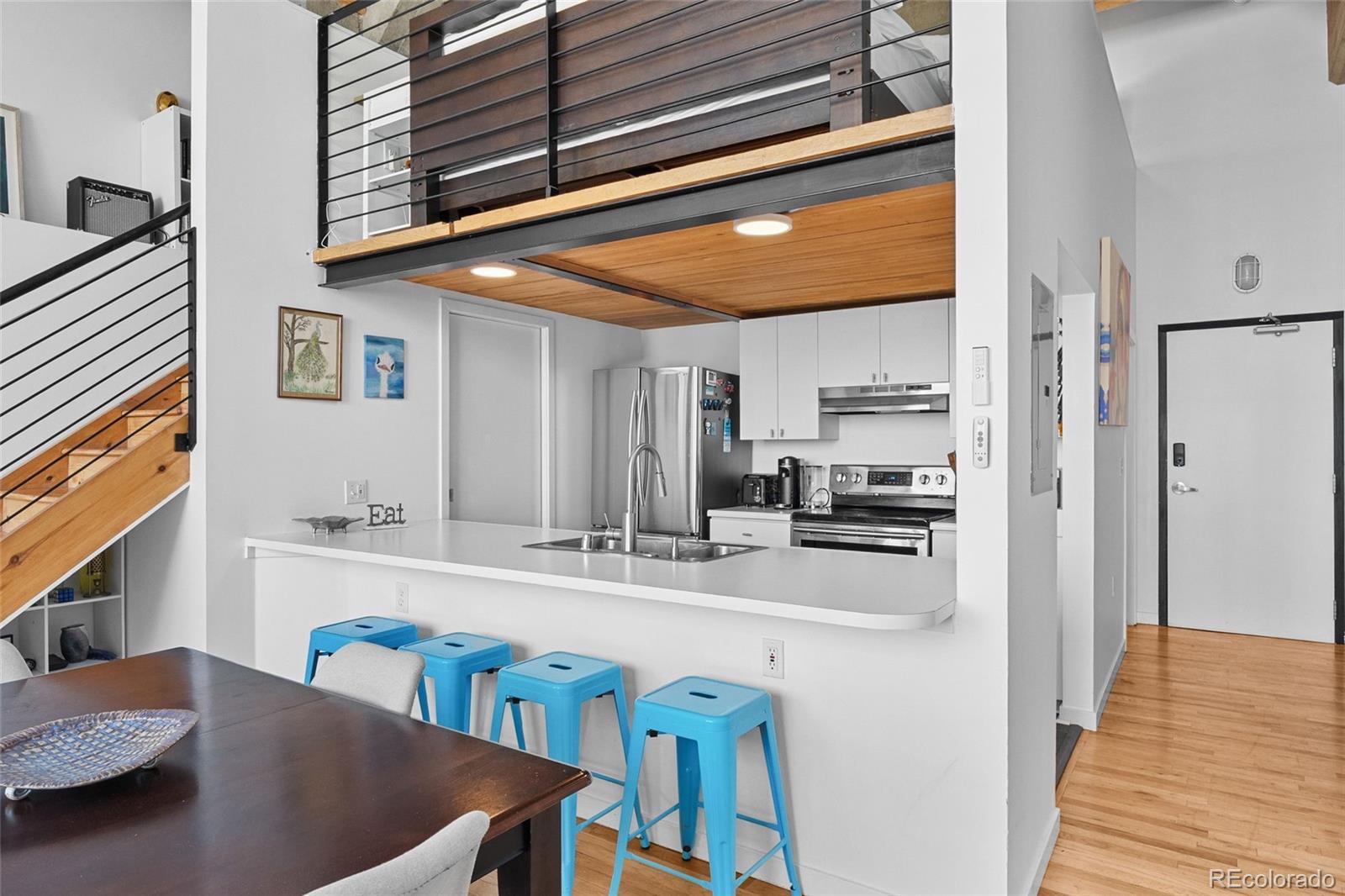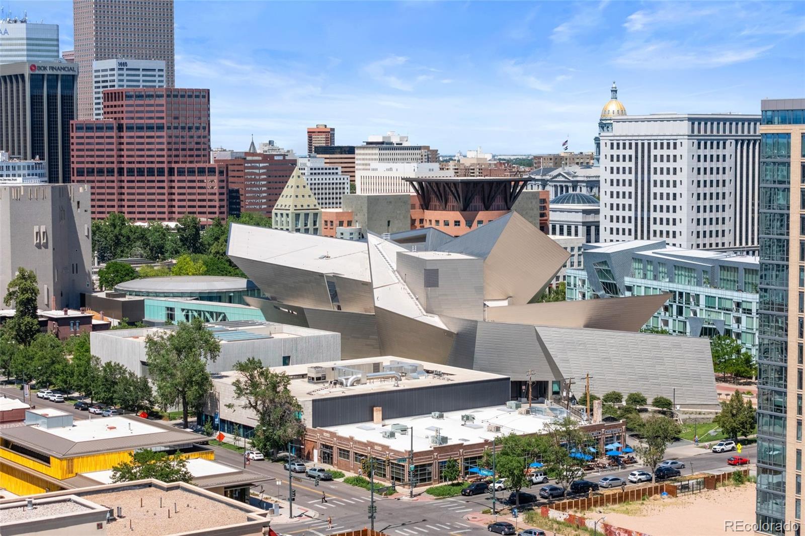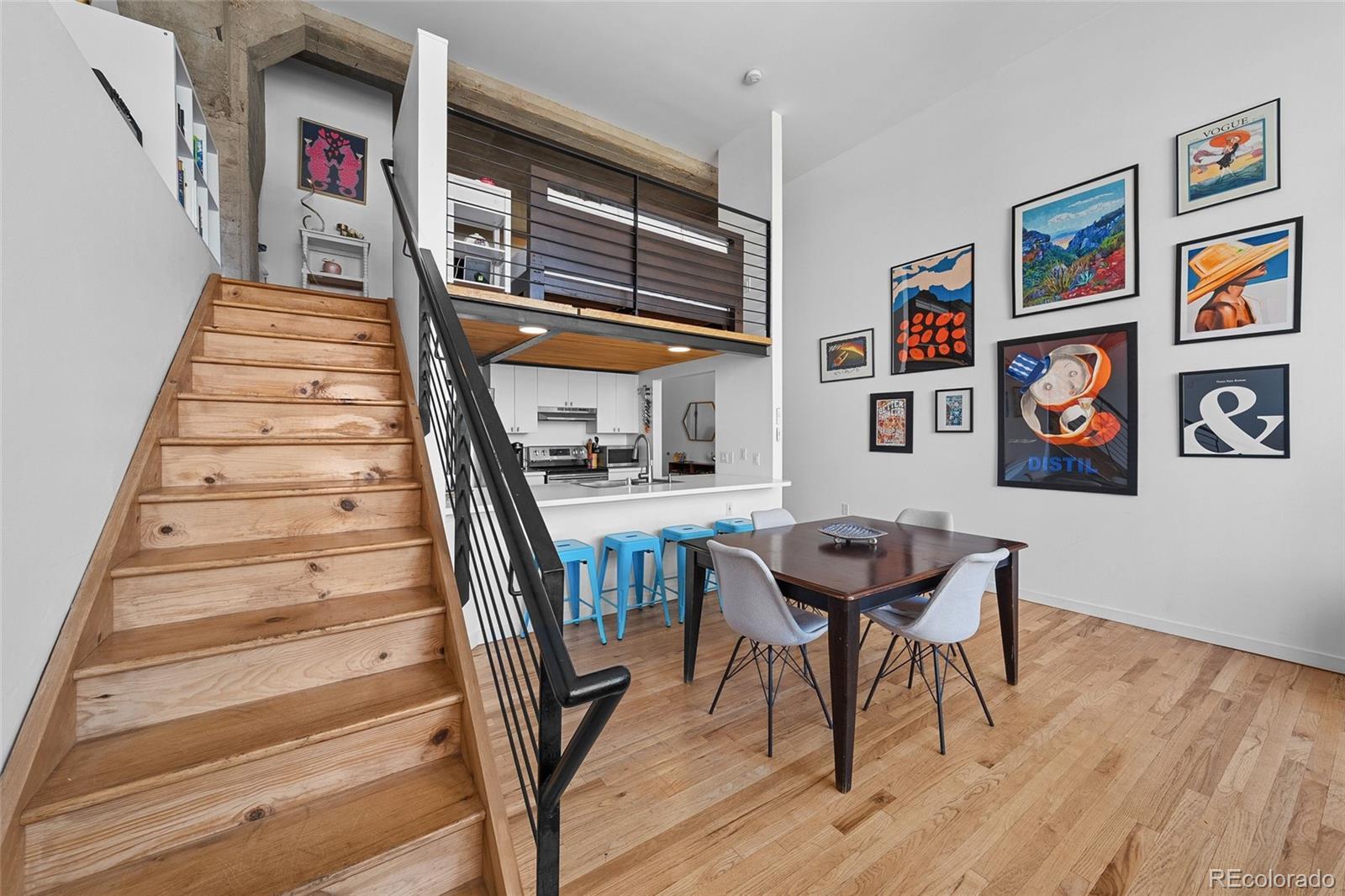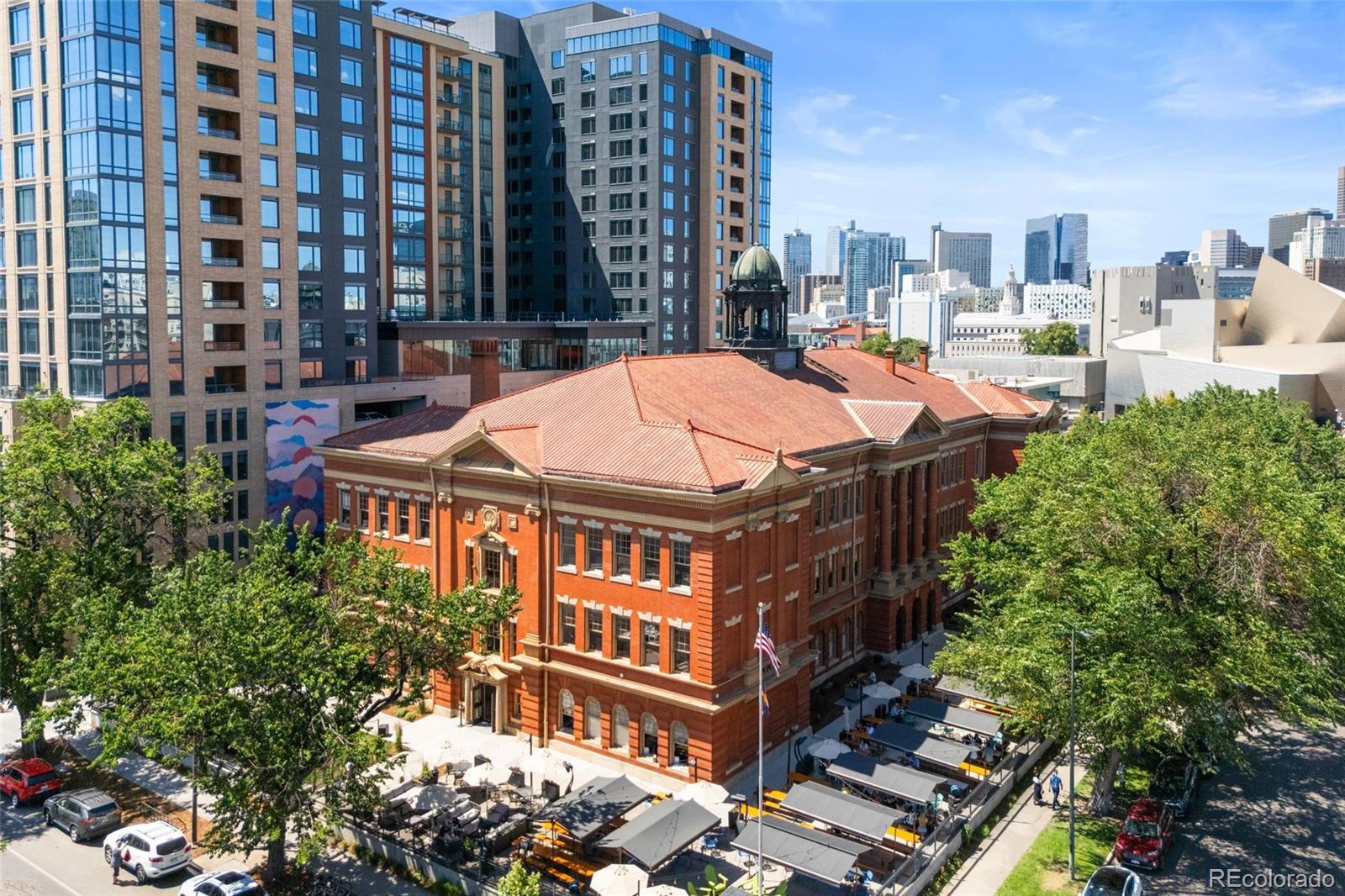 Exceptional two-story, one-bedroom, one-bathroom loft nestled in the heart of Denver’s Golden Triangle. Blending modern luxury with historic charm, this thoughtfully remodeled residence is located in the iconic Cadillac Lofts—once home to the Cadillac Motor Company service garage. The home showcases original hardwood floors, soaring 15-footceilings, and exposed brick walls, preserving the character of its industrial roots while offering contemporary comfort. Oversized windows flood the space with natural light and frame stunning views of the Denver skyline from every room. A benefit is also the electric privacy and blackout curtains installed for each window. This stylish condo boasts a unique blend of character and comfort, starting with soaring wood-paneled ceilings in both the kitchen and bathroom that add warmth and texture to the space. The open-concept main level features an updated kitchen with bar stool seating at the island, ample room for a dining area, and a spacious living room perfect for entertaining. Upstairs, the lofted bedroom offers privacy while still enjoying the unit’s high ceilings and open layout. Additional highlights include updated appliances within last 5 years, new HVAC in past 5 years, Smart thermostat with heat sensors, in-unit laundry, deeded parking with an adjacent storage unit, and sleek laminate and wood flooring throughout. Take advantage of the building’s amenities, including bike storage, secure entry, and an EV charging station. BRAND NEW remodeled Rooftop Deck with entertainment area, BBQs, & unparalleled mountain/city views. Located in the heart of the Golden Triangle, you’re just steps away from museums, art galleries, Civic Center Park, Cherry Creek Trail, and some of the city’s best restaurants, cafes, and cultural attractions. With easy access to public transit and major highways, this condo offers both convenience and urban living at its finest. HOA Credit can also be used for a lender credit if preferred.