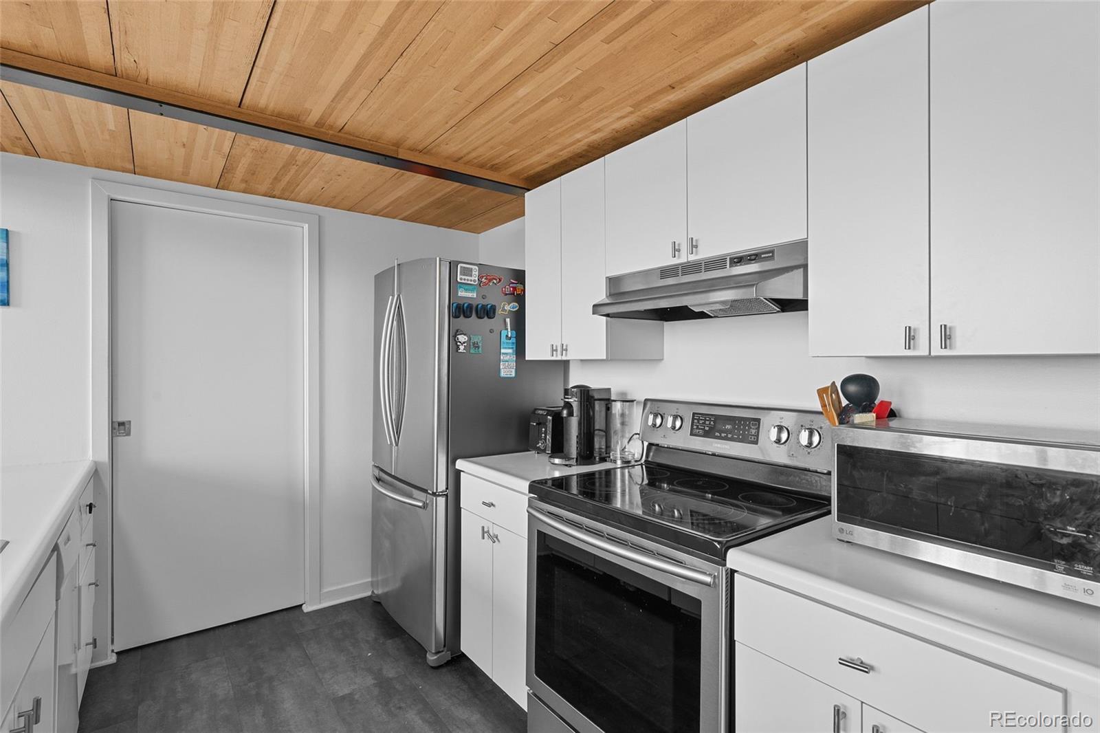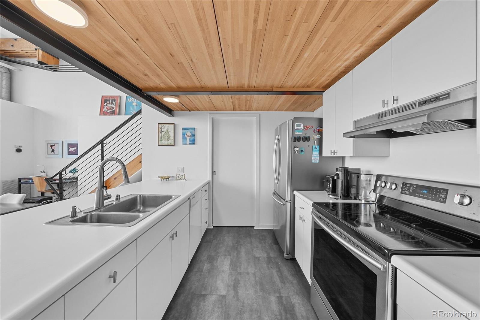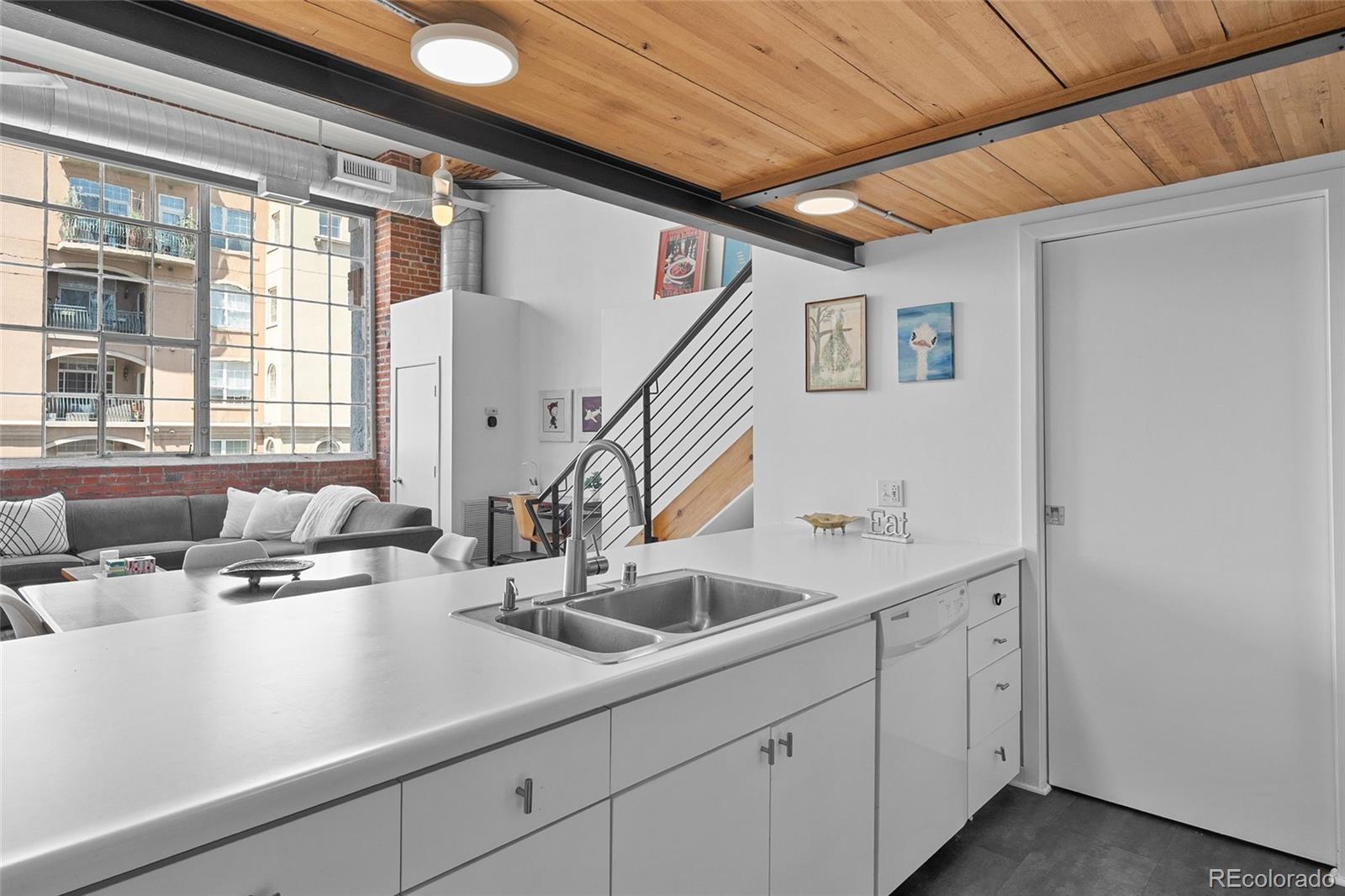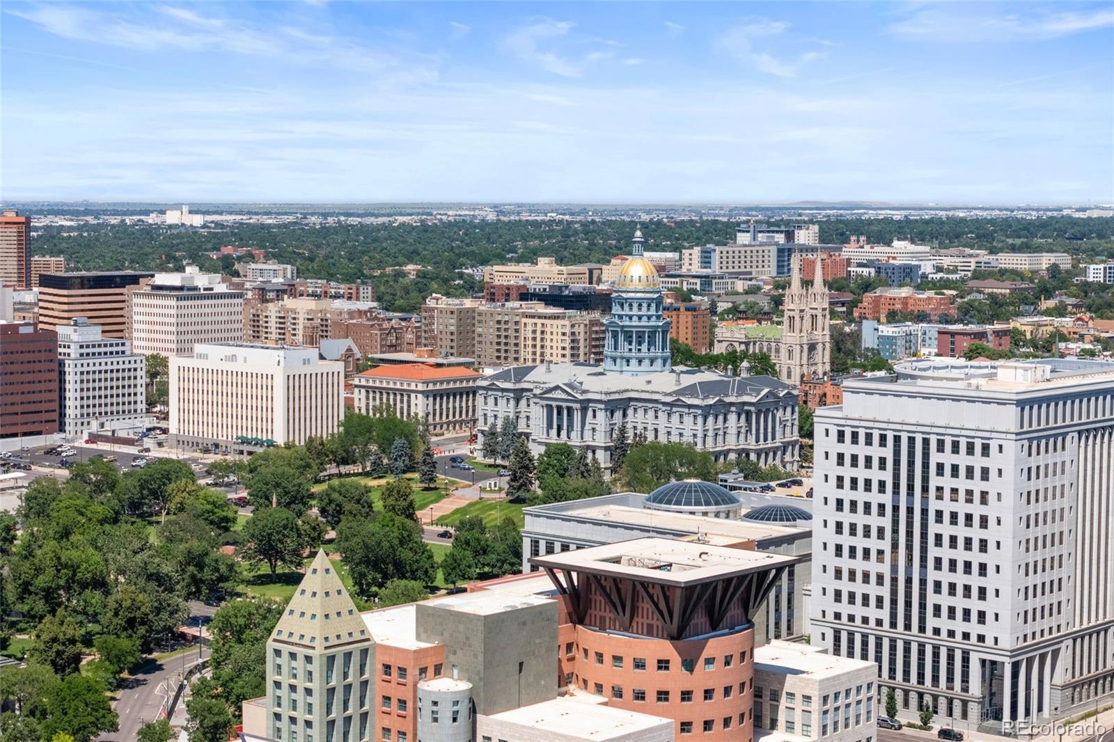 Exceptional two-story, one-bedroom, one-bathroom loft nestled in the heart of Denver’s Golden Triangle. Blending modern luxury with historic charm, this thoughtfully remodeled residence is located in the iconic Cadillac Lofts—once home to the Cadillac Motor Company service garage. The home showcases original hardwood floors, soaring 15-footceilings, and exposed brick walls, preserving the character of its industrial roots while offering contemporary comfort. Oversized windows flood the space with natural light and frame stunning views of the Denver skyline from every room. A benefit is also the electric privacy and blackout curtains installed for each window. This stylish condo boasts a unique blend of character and comfort, starting with soaring wood-paneled ceilings in both the kitchen and bathroom that add warmth and texture to the space. The open-concept main level features an updated kitchen with bar stool seating at the island, ample room for a dining area, and a spacious living room perfect for entertaining. Upstairs, the lofted bedroom offers privacy while still enjoying the unit’s high ceilings and open layout. Additional highlights include updated appliances within last 5 years, new HVAC in past 5 years, Smart thermostat with heat sensors, in-unit laundry, deeded parking with an adjacent storage unit, and sleek laminate and wood flooring throughout. Take advantage of the building’s amenities, including bike storage, secure entry, and an EV charging station. BRAND NEW remodeled Rooftop Deck with entertainment area, BBQs, & unparalleled mountain/city views. Located in the heart of the Golden Triangle, you’re just steps away from museums, art galleries, Civic Center Park, Cherry Creek Trail, and some of the city’s best restaurants, cafes, and cultural attractions. With easy access to public transit and major highways, this condo offers both convenience and urban living at its finest. HOA Credit can also be used for a lender credit if preferred.