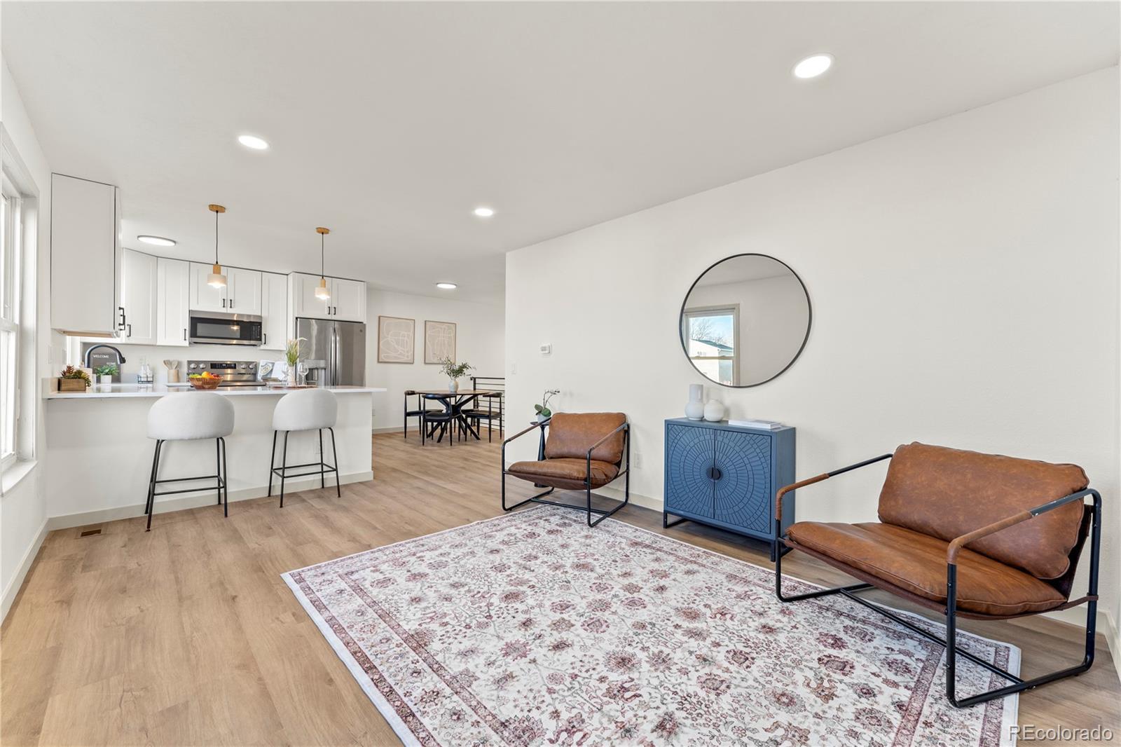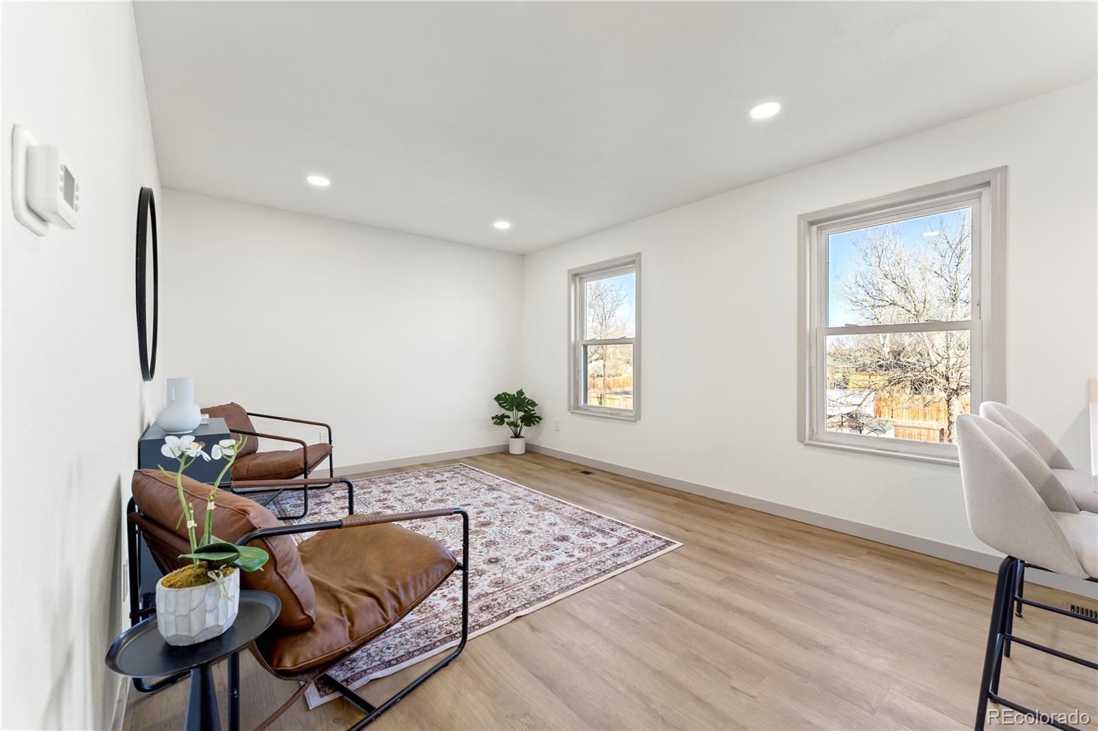 Welcome to this beautifully updated home tucked away on a quiet cul-de-sac in the heart of Aurora. From the moment you walk in, you’ll notice the modern finishes, luxury flooring, and custom railing that give the home a fresh, contemporary feel. The open kitchen is designed for entertaining, featuring brand new cabinets, quartz countertops, updated appliances, and stylish lighting that flows perfectly into the main living space. Both bathrooms have been tastefully remodeled, and the home also offers brand new carpet, fresh interior paint, newer windows, and a newer roof for added peace of mind. Step outside to an oversized, gated backyard with no rear neighbors, offering rare privacy and endless potential. Whether you need space for RV parking, extra vehicles, a future shop, or your own outdoor retreat, the possibilities here are wide open. Conveniently located near parks, soccer fields, and everyday amenities, this move-in-ready home blends comfort, style, and opportunity in one incredible package. Schedule your showing today and come experience it in person.