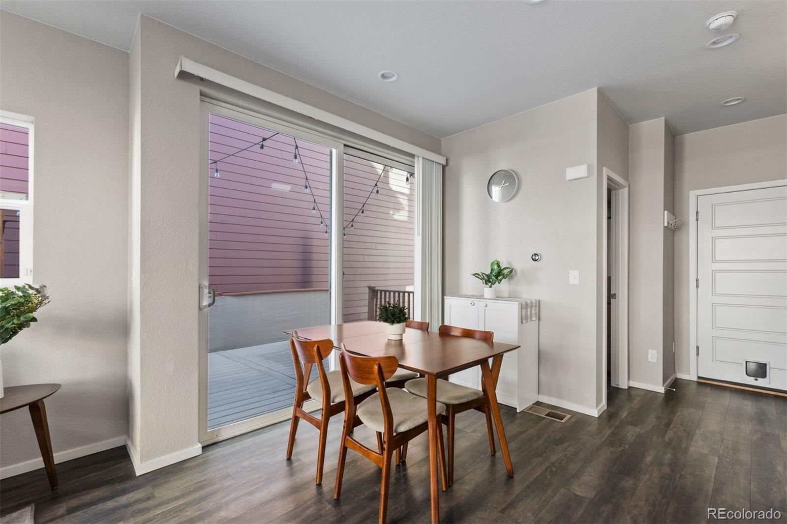 Modern living meets effortless comfort in this freshly updated Midtown residence with 3 bedrooms, 4 bathrooms, and a fully finished basement. Built in 2017 and renewed with a beautifully painted exterior and new carpeting throughout, this home delivers a blend of style, ease, and warmth. The main level welcomes you with an open concept layout where the kitchen, dining, and living spaces flow together with natural clarity. Granite countertops, stainless steel appliances, and soft close cabinetry elevate the kitchen, creating a bright and inviting center for daily life and intimate entertaining. Upstairs, the primary suite offers a calming retreat with a spacious walk in closet and a private bath. Two additional bedrooms, an airy loft area, and a conveniently located laundry room complete this level, bringing function and comfort together with thoughtful intention. The finished basement brings versatility to the home. With its own bathroom and generous layout, this level can serve as a guest suite, a home gym, a media lounge, or a creative studio. Additional features include central air conditioning, a tankless water heater, a whole house humidifier, an attached two car garage, and a private fenced yard that invites quiet mornings and relaxed weekends outdoors. Set within the sought after Midtown community with pocket parks, trails, and walkable favorites such as Bruz Beers and Early Bird, this location offers a connected Denver lifestyle. Colorado living feels effortless here.