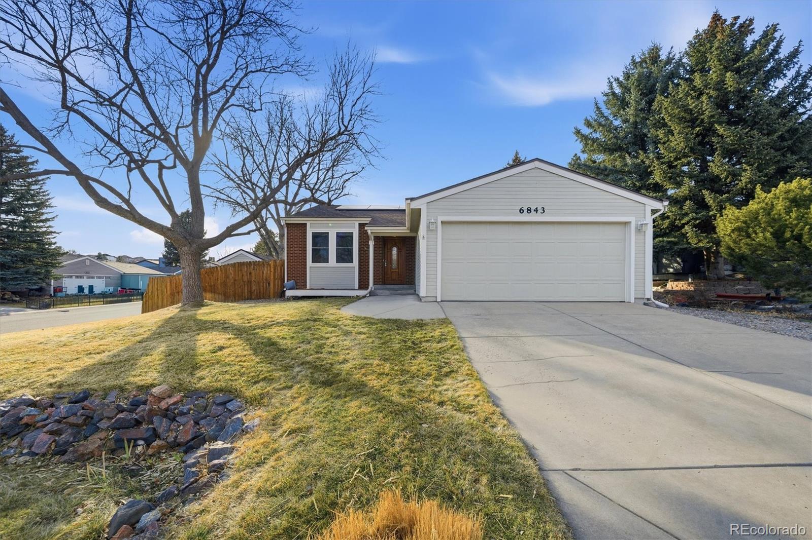 Charming Updated Tri-Level on a Prime Corner Lot in Highly Desirable West Littleton! Welcome to 6843 S Everett St – a move-in-ready 3 bed, 2 bath 2 car garage gem offering modern comforts and outdoor living. The spacious corner lot features side gate access to RV parking, a lush garden area, storage shed, and a delightful patio with a pergola perfect for relaxing or entertaining. Inside, enjoy a beautifully remodeled kitchen with sleek quartz countertops, stainless steel appliances, and a pantry with pullouts. There is luxury vinyl plank flooring on the main and lower living areas along with a cozy wood-burning stove. The upper level features a primary bedroom with vaulted ceilings & ensuite access to the shared hallway bath. The remodeled 3/4 bath adds luxury, while a tankless hot water heater, owned solar panels (energy savings!), newer A/C, and smart thermostat keep utilities low and comfort high. This gem is in a prime location just minutes from foothills/mountain access and hiking trails, plus easy reach to vibrant Downtown Littleton with its charming shops, restaurants, and events. Don't miss this rare blend of updates, outdoor perks, and unbeatable location – schedule your showing today!