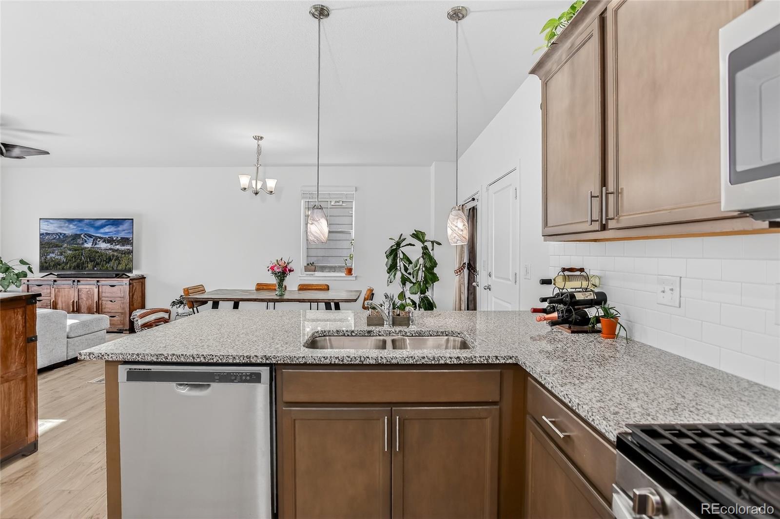 Exceptional value for this better-than-new home on a premium view lot! Perfectly situated across from a beautifully landscaped community park and backing to an open field, this home offers sweeping views and an unbeatable setting. The thoughtfully designed modern floor plan maximizes space with an open-concept layout ideal for everyday living and entertaining. The kitchen is beautifully appointed with rich dark wood cabinetry, gleaming granite countertops, stainless steel appliances, a gas range, a large pantry, and a convenient breakfast bar. The spacious family room is highlighted by a large picture window overlooking the beautifully landscaped neighborhood park, while the dining area easily accommodates any size table. Abundant natural light fills the home, creating a bright, warm, and welcoming atmosphere throughout. The generous primary suite also enjoys serene park views and features a stunning ensuite bathroom with white countertops, dual sinks, rich cabinetry, modern fixtures, and a tiled floor and shower. The walk-in closet offers ample storage space. Two additional upper-level bedrooms are light and bright with mountain views, complemented by a beautifully upgraded full guest bath. Additional highlights include an ultra-convenient upper-level laundry room and immaculate condition throughout—this home has been impeccably maintained and is truly move-in ready. Don’t miss this incredible opportunity—schedule your showing today!