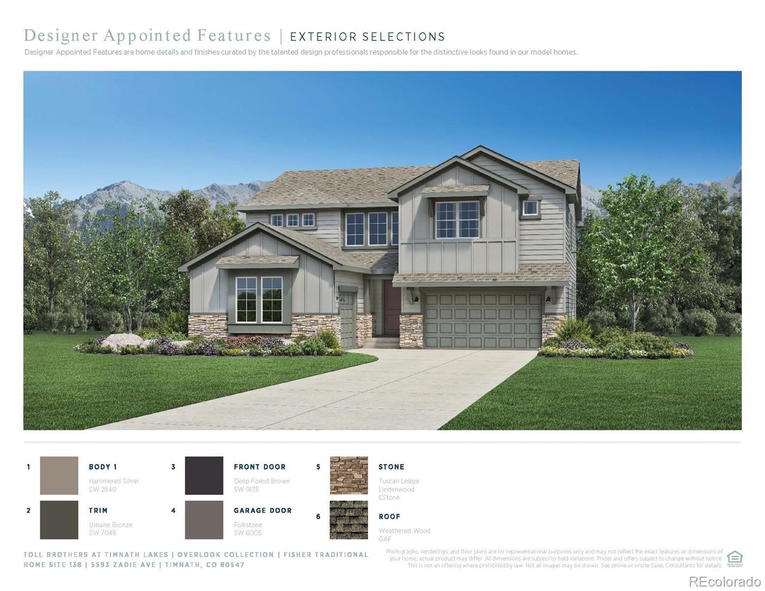 Brand New Toll Brothers Home – Fisher Traditional – Ready February 2026! The popular Fisher floorplan has a grand two-story foyer with a gorgeous staircase. The main level is open concept, but still offers space for private dining and entertaining, including a convenient butler pantry. The 19' tall great room is the focal point of the home, offering a plethora of natural light with large windows overlooking the rear covered patio. The second level showcases a generous primary suite connecting to a resort-style bath with a luxury shower and a free-standing tub, plus a 14' x 8' walk-in closet. The unfinished basement with 9' ceilings, rough-in plumbing, and two daylight windows is perfect for storage or future finishing. The home also offers plenty of storage for cars and toys with a 4-car split garage. Front landscaping is included. Located just blocks from the lake, a 7-mile trail system, future clubhouse and outdoor pool, and walkable to downtown Timnath shops, brewery, post office and Timnath Elementary School. Timnath Lakes sits within Larimer County and the Poudre School district, just north of the Harmony Rd. corridor, 15 minutes southeast of Downtown Fort Collins, and less than two miles east of I-25. Come see it today before it's gone!