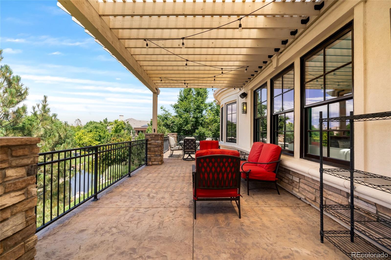 Welcome to 9316 E Harvard Avenue - a beautifully maintained custom home built in 2015, ideally positioned on an interior street within one of Denver’s premier golf communities, home to an award-winning Jack Nicklaus–designed course. Backing to a serene water feature, this residence offers both elegance and tranquility with captivating views of ducks along the stream and stunning Rocky Mountain sunsets. The expansive upper patio and balcony, complete with a built-in gas BBQ and custom pergola, create the perfect setting for outdoor entertaining. Inside, the spacious, open floor plan is designed for both comfort and function and features a fresh coat of paint throughout. The chef’s kitchen features professional-grade appliances, an island that serves as the centerpiece of the space and a breakfast nook. A formal dining room - offered with a custom table and two banquette benches (seats 12) makes entertaining effortless, while the main-floor study provides a quiet space to work from home. The primary suite is private retreat featuring a spacious bedroom with plenty of natural light, an oversized bathroom with dual vanities, soaking tub and a large shower, and the one-of-a-kind walk-in closet. Upstairs, two en-suite bedrooms accompany a versatile loft area that serves beautifully as a sitting room or library. The finished walkout basement is a highlight of the home, offering a complete private living space with two bedrooms, two bathrooms, a recreation area, wet bar with dishwasher, and a covered patio that opens to the lawn and stream. For added flexibility, the basement includes a large unfinished area, perfect for storage or future customization. Additional features include an automatic generator for peace of mind and meticulously cared-for interiors that reflect the pride of ownership throughout. With its combination of thoughtfully designed spaces & a rare walkout basement overlooking tranquil water views, this home delivers a lifestyle of both luxury and ease.
