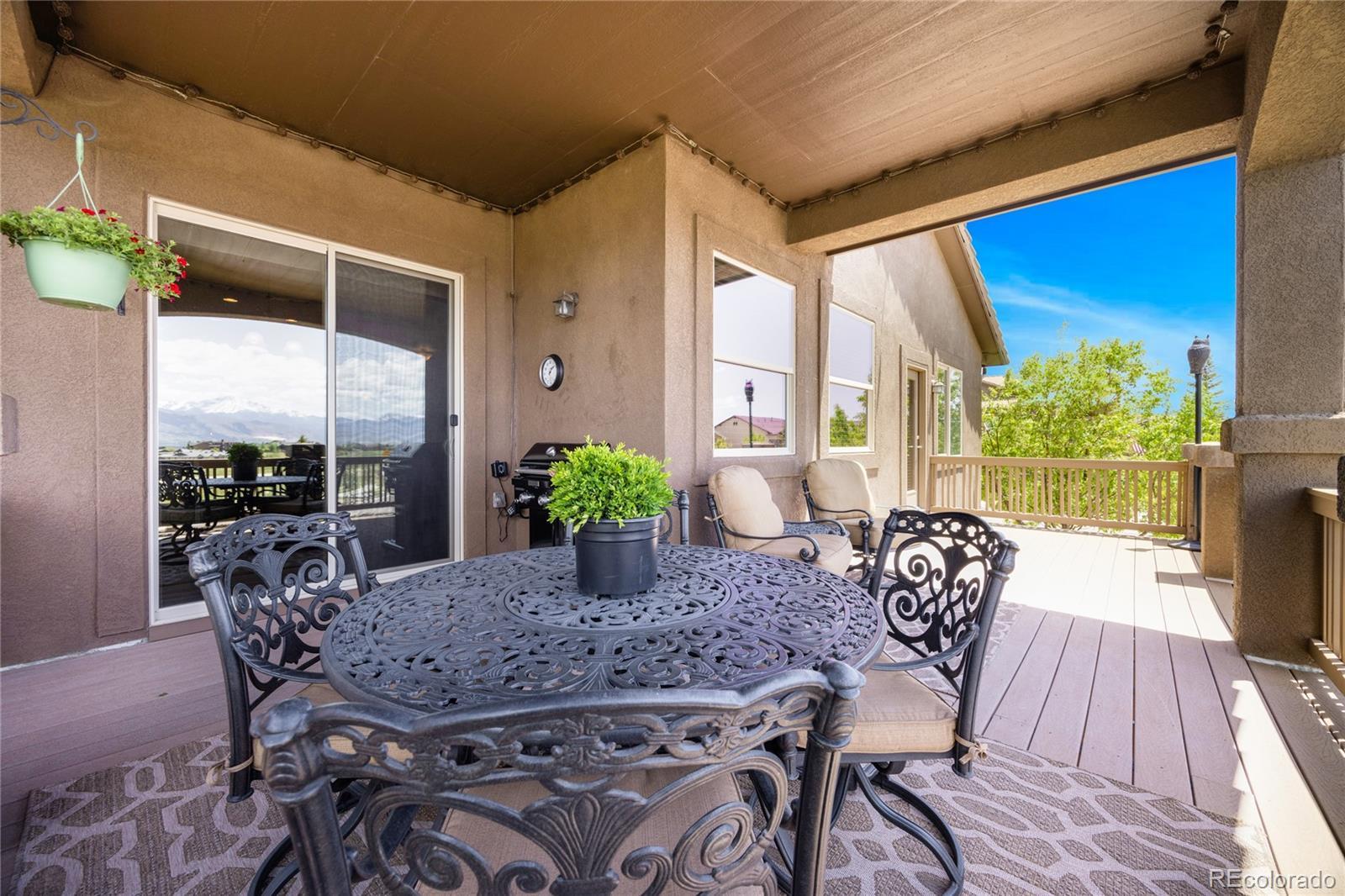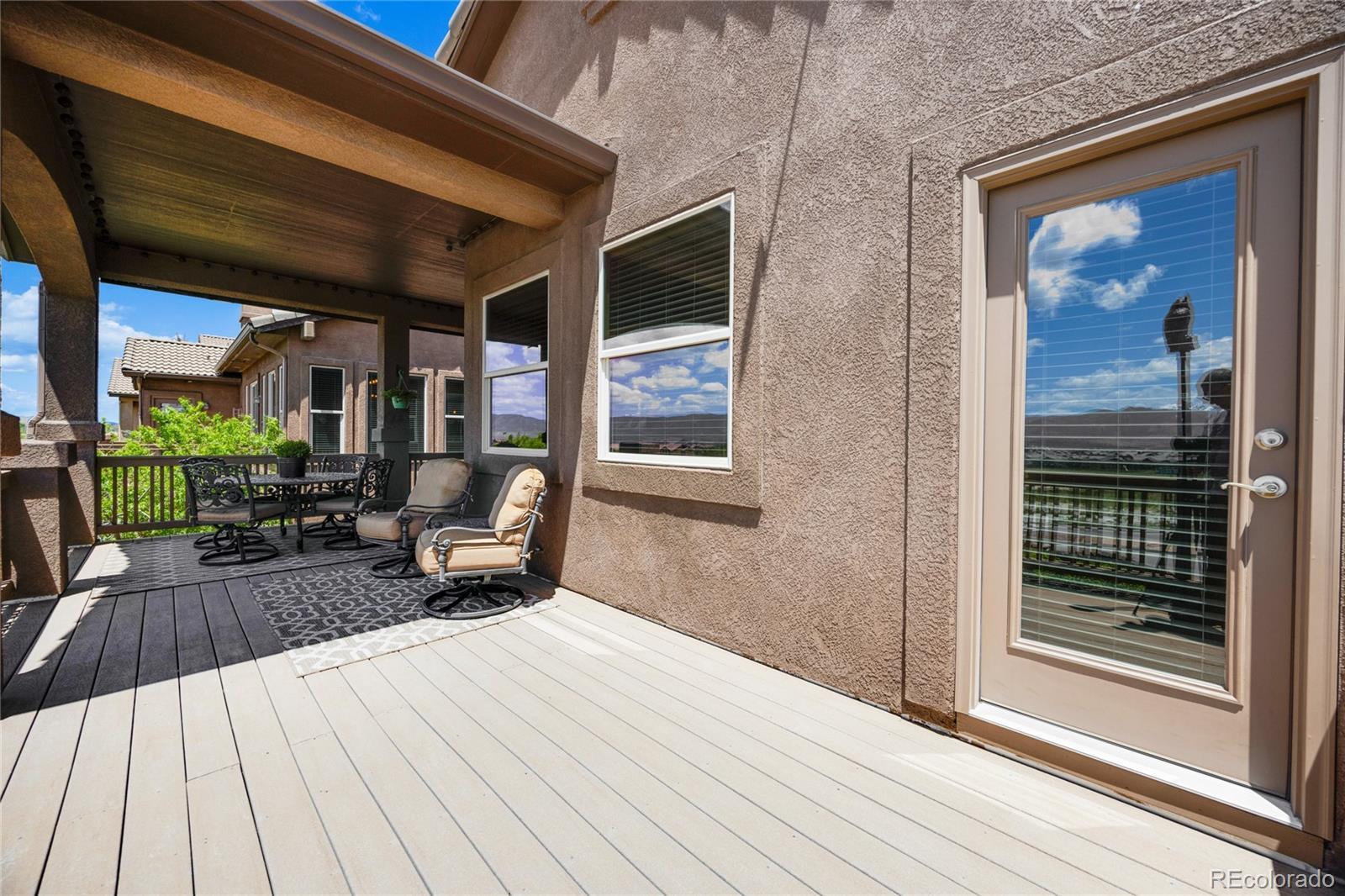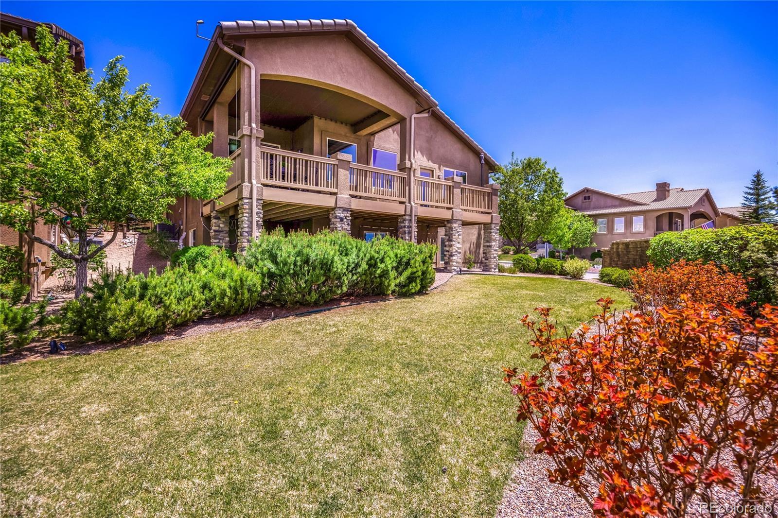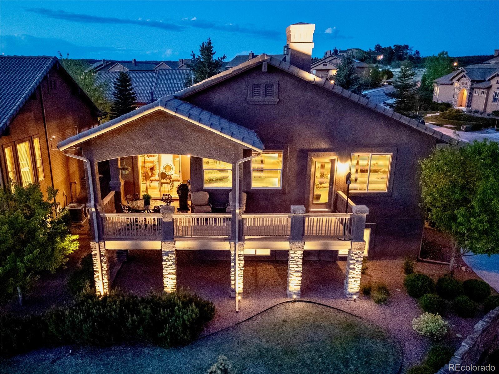STUNNING MULTI-MILLION-DOLLAR VIEWS for Less! Experience luxury living in the exclusive Flying Horse Golf Community, with breathtaking views of Pikes Peak and the Front Range from your large covered deck! This meticulously maintained home, situated on a prime corner lot, offers maintenance-free living at its finest. Key Features: PANORAMIC VIEWS from a refurbished Trex Deck (2023) with gas grill hookup and remote sunshade. MAIN LEVEL PRIMARY SUITE with private deck access, custom walk-in closet, and granite dual vanities. ELEGANT GOURMET KITCHEN with stainless steel appliances, granite countertops, large island with bar, and spacious walk-in pantry. EXPANSIVE LOWER LEVEL includes a handsome gas fireplace, stone surround, granite wet bar with dishwasher and wine rack, two additional bedrooms, a full bathroom, and a large unfinished storage room. IMPECCABLE WOOD FLOORING throughout the home, plus a no-slip coated covered front porch and garage floor. MODERN AMENITIES like upgraded lighting, new water heater (2023), radon mitigation system (2021), and tile roof (2015). ASSOCIATION SERVICES include landscaping, snow removal, trash, and recycling. The FLYING HORSE COMMUNITY offers unparalleled amenities, including the private Tom Weiskopf Golf Course, dining options, wine lockers, and guest bungalows. Stay fit at the athletic club with a fitness center, lap pool, water park, tennis courts, and elite spa. Enjoy miles of scenic trails, parks, and top-rated District 20 schools. This is one of the few properties left which offer views onto the future site of the Colorado Springs Temple and Gardens of The Church of Jesus Christ of Latter-day Saints! Don’t miss out on this incredible opportunity. Schedule a showing today before this one-of-a-kind residence is gone!