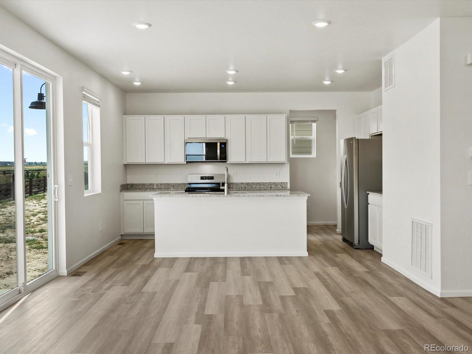 Ask a sales counselor about optional rear yard fencing! Open concept kitchen with granite countertops and white cabinets! The Chatfield is a spacious two-story home featuring a versatile flex space, open-concept kitchen and great room, and four bedrooms including a serene primary suite. With 2.5 baths and a two-bay garage, this design blends style and functionality for modern living. The Meritage Home difference includes spray-foam insulation, advanced air filtration for year-round comfort and healthier air, and durable cementitious siding known for its strength, fire-resistance, and long-lasting performance. A Whirlpool appliance package, and full home blinds are also included for move-in convenience. Welcome home where every detail is built for comfort, efficiency, and LIFE . BUILT. BETTER. Revere at Johnstown offers playgrounds, picnic areas, and walking trails in a scenic setting near the Rocky Mountain foothills. With easy access to I-25, enjoy a connected community and convenient commutes or weekend getaways. *This home qualifies for special incentives through builder preferred lender for a limited time. Terms and conditions apply. See sales counselor for details!