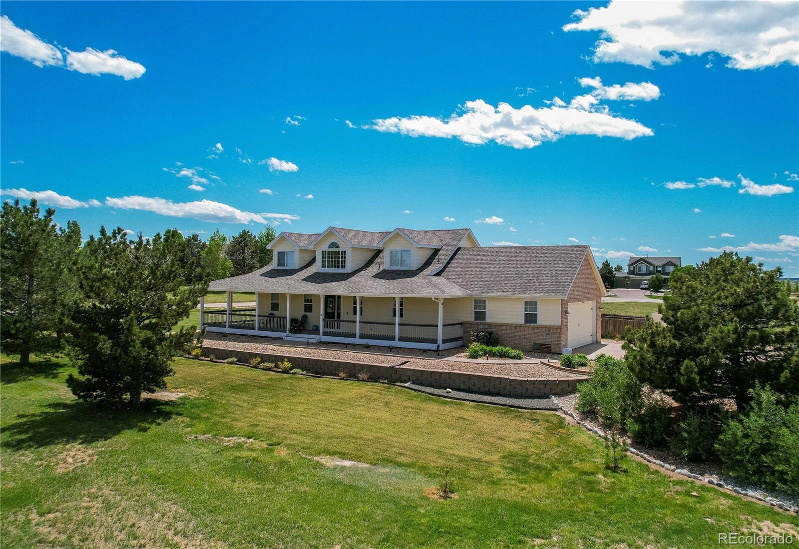 Welcome to 895 Antelope Drive West – a beautifully updated home on 1.16 acres in Bennett's sought-after Antelope Hills neighborhood! This 5-bedroom, 3.5-bath gem offers the perfect blend of space, style, and Colorado charm. The main floor features a spacious primary suite, while two bedrooms upstairs and two more in the finished basement provide flexibility for family, guests, or a home office. You’ll love the brand-new kitchen with quartz countertops, stainless appliances, and modern finishes. Hardwood floors, a cozy double-sided fireplace, and bright, open living spaces make this home feel warm and inviting. The 1,400 sq ft covered wraparound porch is a standout feature—perfect for relaxing, entertaining, or soaking up Colorado’s stunning sunsets in every season. A fun bonus? There’s a secret attic room—perfect for a playroom or hideaway. The finished basement also features a family/media room—ideal for movie nights or entertaining. Sitting on a large corner lot, you’ll enjoy room to roam, plus access to a neighborhood stocked fishing pond just down the street. Don’t miss this move-in ready beauty—schedule your showing today!