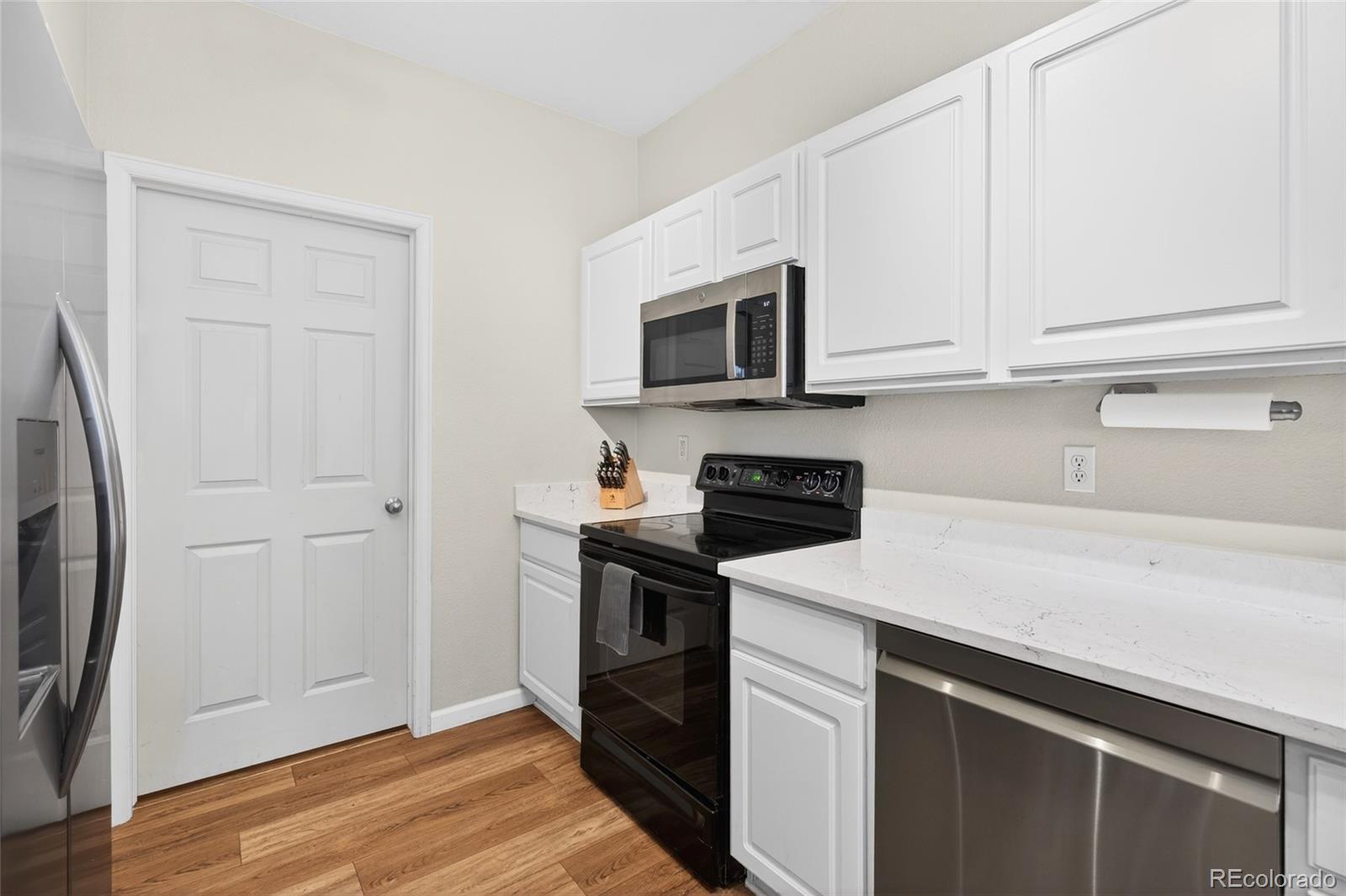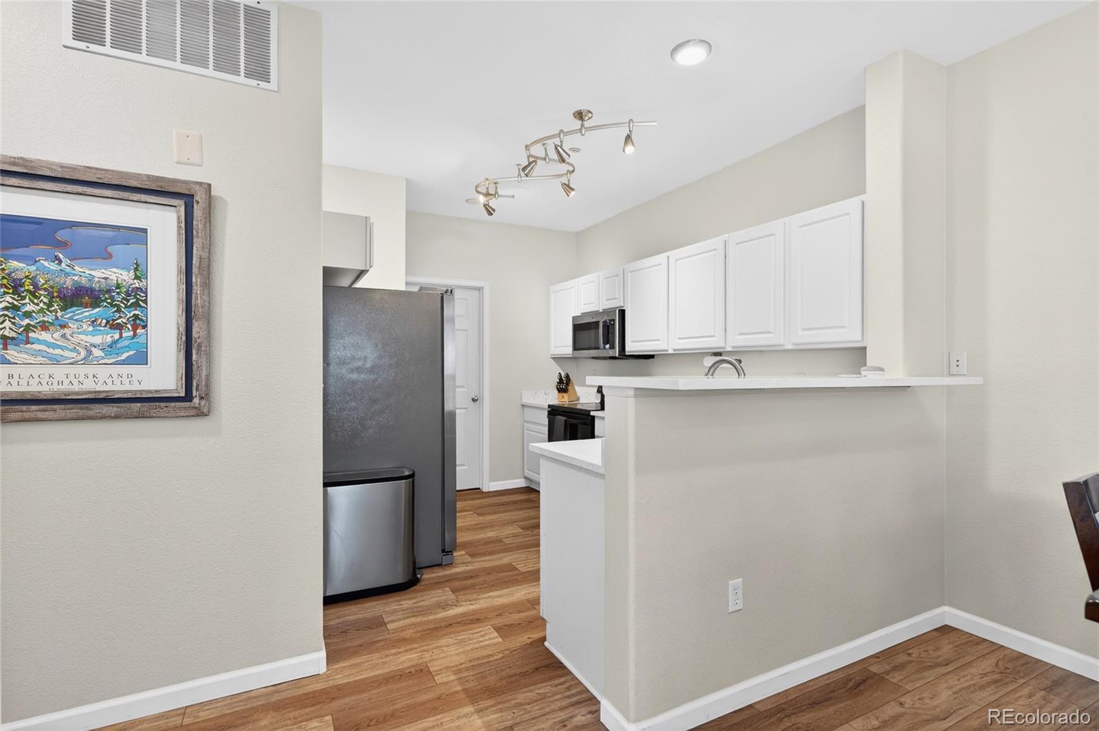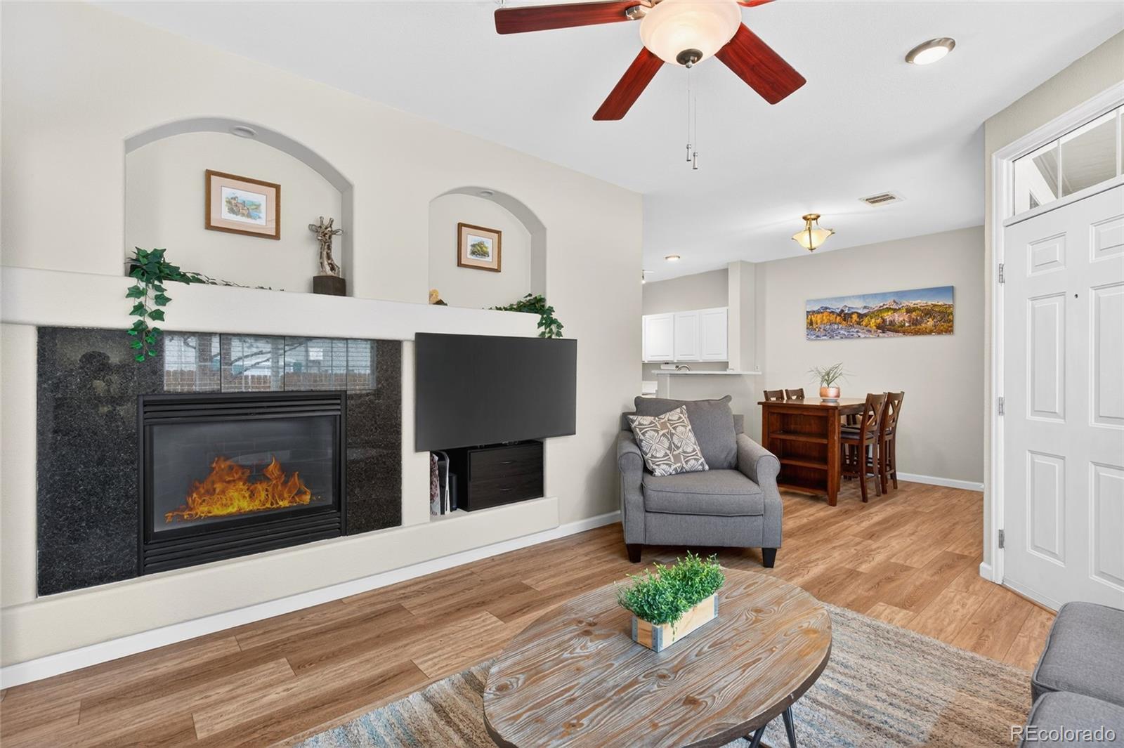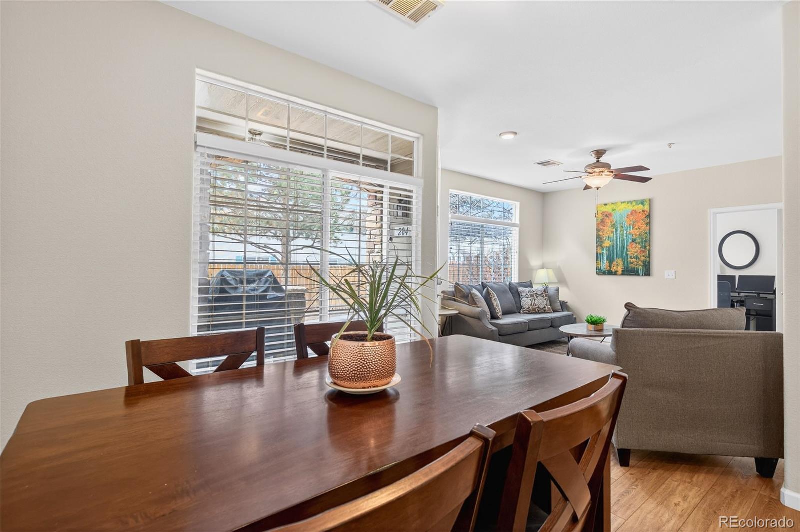 OPEN HOUSE THIS SATURDAY 12 - 2pm ... MUST SEE!!! This beautifully updated, light-drenched, move-in ready end-unit home offers the perfect blend of style, comfort, and everyday ease. Tucked at the end of the complex with a private entrance and ground-level living, it provides a sense of privacy and convenience that’s hard to find. Inside, you’ll find a thoughtfully updated and well-appointed space with fresh interior paint, updated lighting, and two fully renovated bathrooms featuring modern finishes, new flooring, and stylish vanities. The kitchen has been tastefully upgraded with quartz countertops, an undermount sink, updated faucet, and newer appliances, creating a clean and functional space that flows effortlessly into the main living area. New luxury vinyl plank flooring, new carpet in the bedrooms, and updated baseboards add to the home’s polished feel, while a cozy gas fireplace creates the perfect spot to unwind at the end of the day. Major system updates, including a newer furnace, A/C, and water heater, offer peace of mind for years to come. The home also includes a private garage with excellent storage with built-in shelving and bike storage, plus an additional deeded parking space. Enjoy low-maintenance living in a peaceful, well-maintained community with a pool just a short walk away—ideal for relaxing summer days. All of this in a central location on the Denver/Aurora border within the highly regarded Cherry Creek School District, with easy access to everyday essentials like Costco, Safeway, and Lowe’s, as well as dining, I-25, I-225, the Denver Tech Center, and Cherry Creek. *** See Supplements or contact the Listing Agent for a detailed list of upgrades and improvements. *** This property qualifies for a community lending loan with a lower interest rate than a traditional loan. Please call our preferred lender Matt Hanson 303.300.8601 for more information.