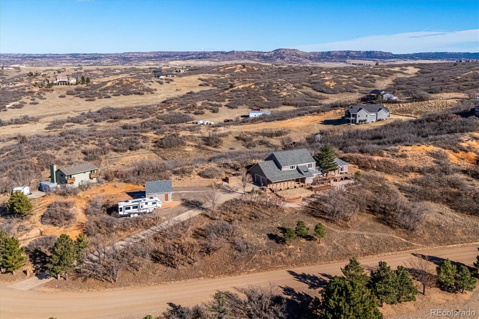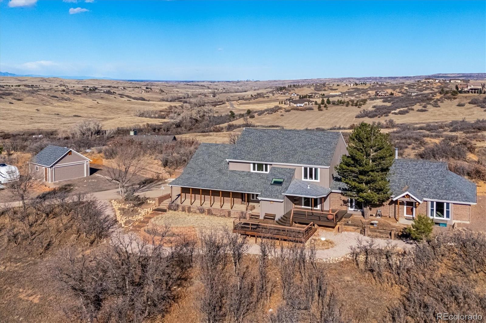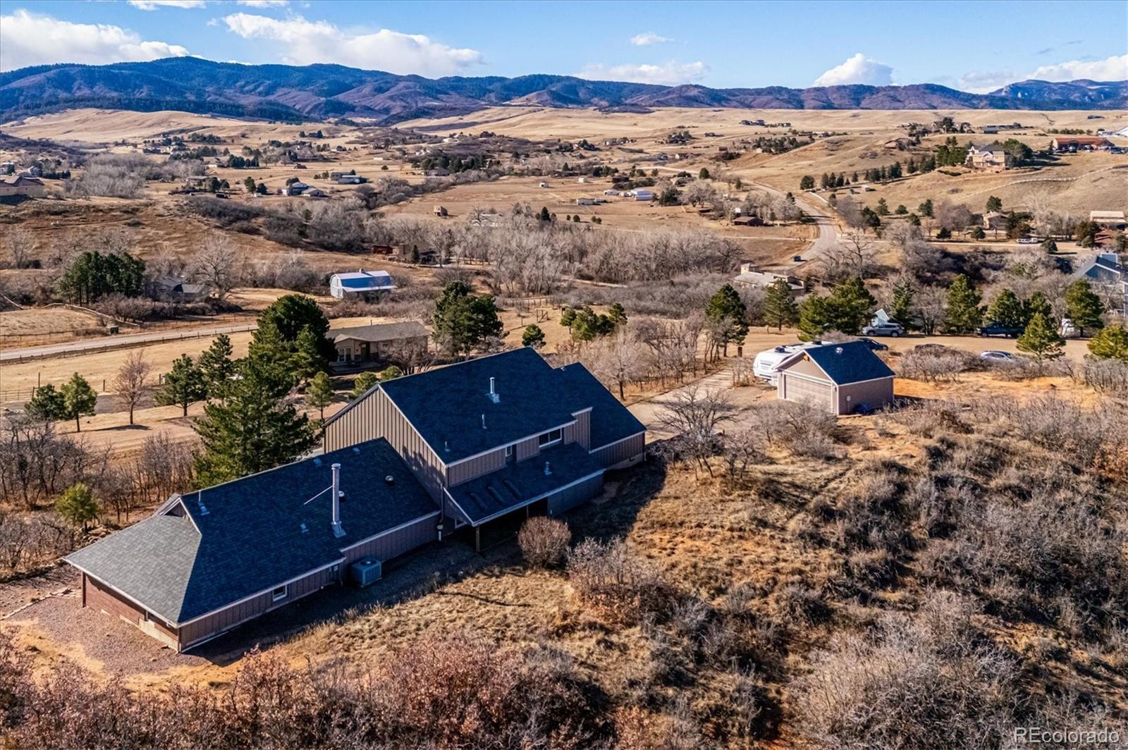 BEAUTIFUL, REMODELED HOME IN CUL-DE-SAC LOCATION WITH INCREDIBLE MOUNTAIN VIEWS ON 5.07 ACRES IN INDIAN CREEK RANCH! MAIN-FLOOR MASTER SUITE ADDITION (2014) WITH MOUNTAIN VIEWS, WALK-IN CLOSET WITH BUILT-IN DRAWERS AND SHELVING, CEILING FAN, CANNED LIGHTS, AND OPTIONAL SEPARATE ENTRANCE! ATTACHED FIVE-PIECE MASTER BATHROOM WITH EURO-STYLE SHOWER WITH SEAT, DOUBLE SINKS WITH GRANITE COUNTERTOP, DEEP SOAKING TUB, AND HEATED FLOORS WITH 18" TILES! REMODELED KITCHEN WITH GRANITE COUNTERTOPS AND DEEP, UNDERMOUNT SINK, DOUBLE OVEN, 5-BURNER ELECTRIC COOKTOP, OAK CABINETS, CROWN MOLDING, CANNED LIGHTS, AND HARDWOOD FLOORS! OPEN DINING ROOM! SPACIOUS LIVING ROOM WITH WOOD-BURNING STOVE, CEILING FANS, SOLATUBES, AND MOUNTAIN VIEWS! FRONT ENTRY FOYER WITH HARDWOOD FLOORS, CEILING FAN, AND SKYLIGHT! MAIN-FLOOR STUDY WITH FRENCH DOORS, BUILT-IN SHELVES, CROWN MOLDING, AND MOUNTAIN VIEWS! POTENTIAL MULTI-GENERATION HOME WITH SECOND MASTER SUITE UPSTAIRS WITH UPDATED BATHROOM, WALK-IN CLOSET, AND MOUNTAIN VIEWS! UPDATED FULL BATHROOM FOR SECONDARY BEDROOMS! LARGE LAUNDRY/MUD ROOM WITH UTILITY SINK AS WELL AS DEDICATED STORAGE ROOM! NEW SEPTIC TANK (2026)! NEW EXTERIOR PAINT (2025)! NEW DECK (2023)! DOUBLE-PANE WINDOWS! SIX-PANEL DOORS! CROWN MOLDING! CENTRAL AC! WASHER/DRYER INCLUDED! RADON MITIGATION SYSTEM! HOME COMES WITH A 14-MONTH BLUE RIBBON HOME WARRANTY! GORGEOUS FIVE ACRES WITH POTENTIAL FOR UP TO FOUR HORSES! AMAZING VIEW OF SURROUNDING MOUNTAINS, INCLUDING WILDCAT MOUNTAIN, FROM COVERED, 18' x 13' DECK AND LOWER, 23' x 14' DECK! ATTACHED, OVER-SIZED TWO-CAR GARAGE WITH 9-FOOT DOORS AND DETACHED TWO-CAR GARAGE/SHOP WITH ELECTRICAL UPGRADES! DEDICATED RV/BOAT/TRAILER PARKING! LOCATED NEAR DOUGLAS COUNTY OPEN SPACE AND PIKE NATIONAL FOREST! EASY COMMUTE TO LITTLETON, DTC, OR CASTLE ROCK! HOA IS $200 A YEAR AND INCLUDES CLUBHOUSE, PLAYGROUND, COMMUNITY HORSE ARENA, AND MILES OF BRIDLE PATHS!
