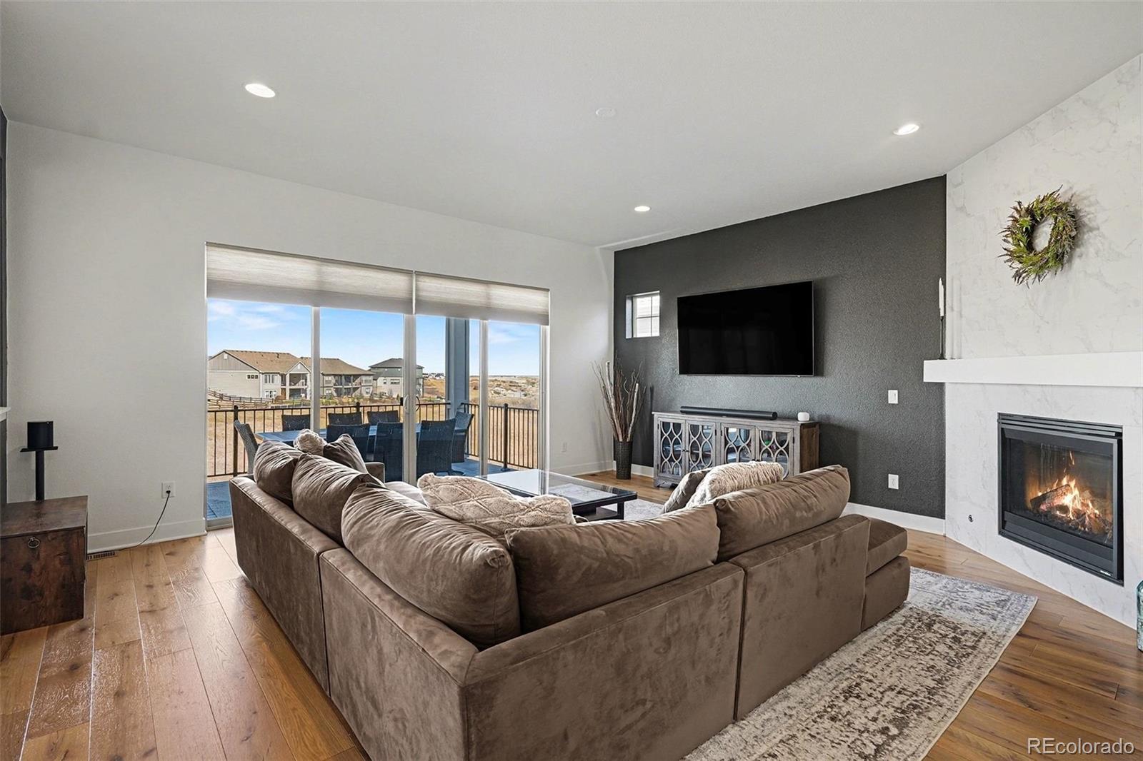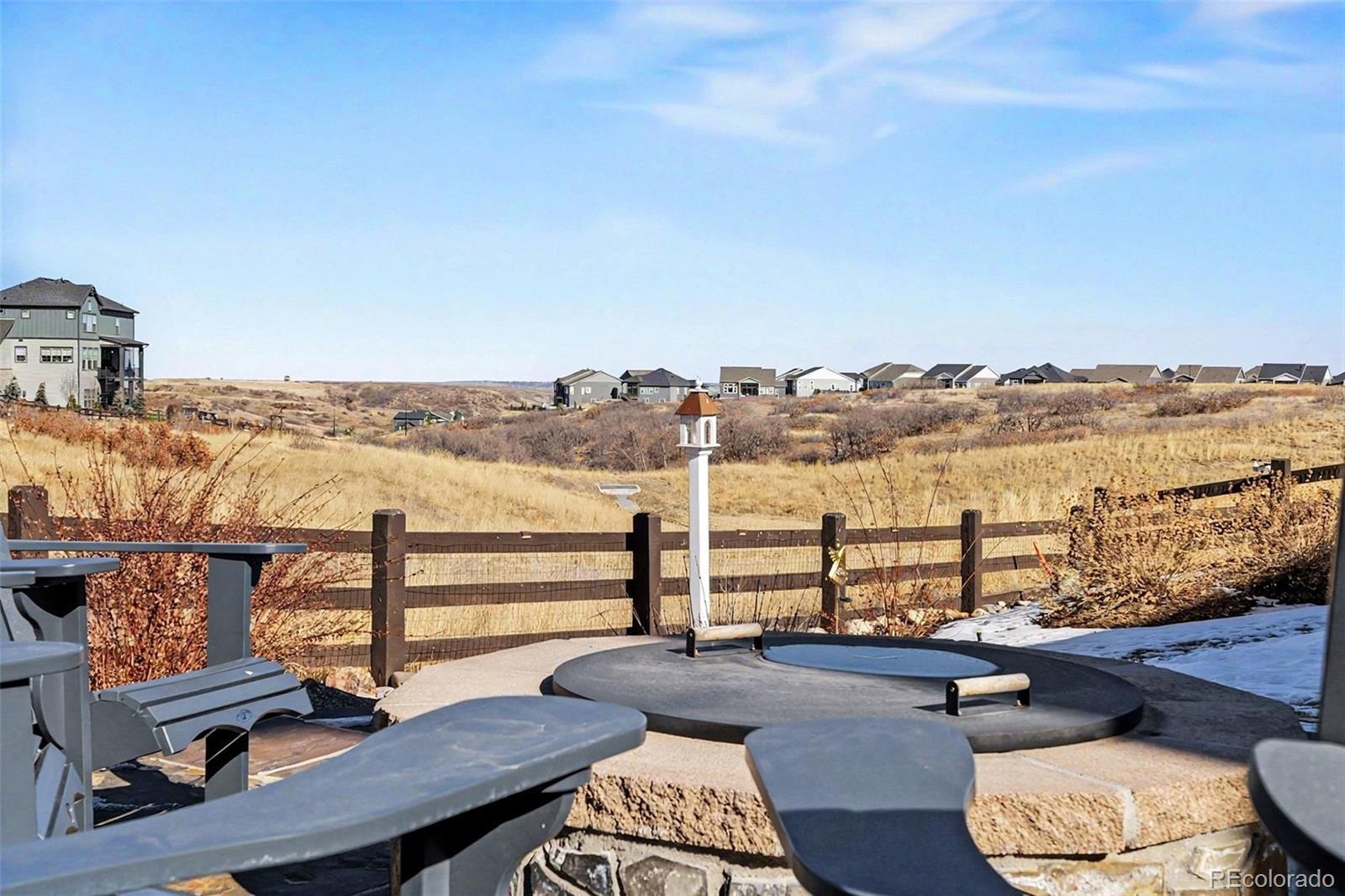 Luxury living at its finest in Macanta at Castle Rock, featuring the rare David Weekley Dansby floor plan on a private cul-de-sac, backing to open space with breathtaking views of rolling hills! This exceptional walk-out home offers incredible indoor-outdoor living, a 3-car garage, and a fully finished basement—all set on a spacious, beautifully landscaped lot. Step inside to a light, bright, and open layout showcasing 8’ doors, soaring 12’ ceilings, and wide-plank flooring throughout. The gourmet kitchen is a chef’s dream with stainless steel appliances, quartz countertops, a 5-burner gas cooktop with professional hood, oversized center island with breakfast bar, and open views to the breakfast room and great room. The inviting great room features a cozy fireplace, while the elegant staircase with iron railings adds architectural charm. A formal dining or bonus room, main-floor study with French doors, mudroom with storage, and a main-level guest suite with ¾ bath complete the main floor. The luxurious primary suite offers a spa-like bath with an oversized walk-in rain shower and large walk-in closet. Upstairs you’ll also find a convenient laundry room, plus three additional spacious bedrooms and two full baths. The fully finished lower level is ideal for entertaining, featuring a recreation/game room, media room, wet bar with wine refrigerator, and a second guest suite with full bath. Enjoy Colorado living year-round on the oversized covered deck or in the expansive backyard with patio and fire pit. Additional highlights include custom window treatments, designer paint, high-efficiency HVAC, and a tankless water heater. Located near The Spoke Community Center, residents enjoy access to an outdoor pool, 1,500-square-foot fitness center, studio space, coffee bar, workspaces, and playground—plus easy access to I-25, Castle Rock, outlet malls, shopping, dining, parks, and trails.