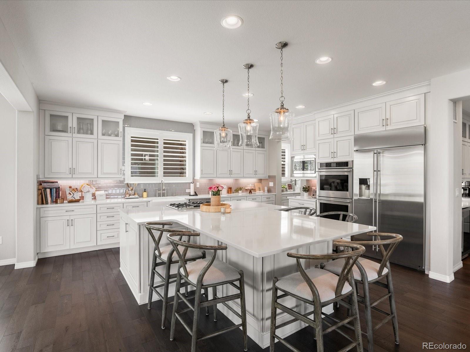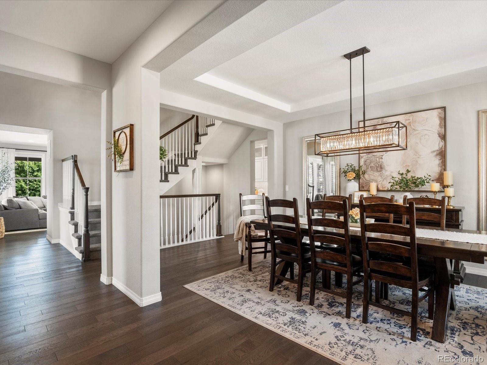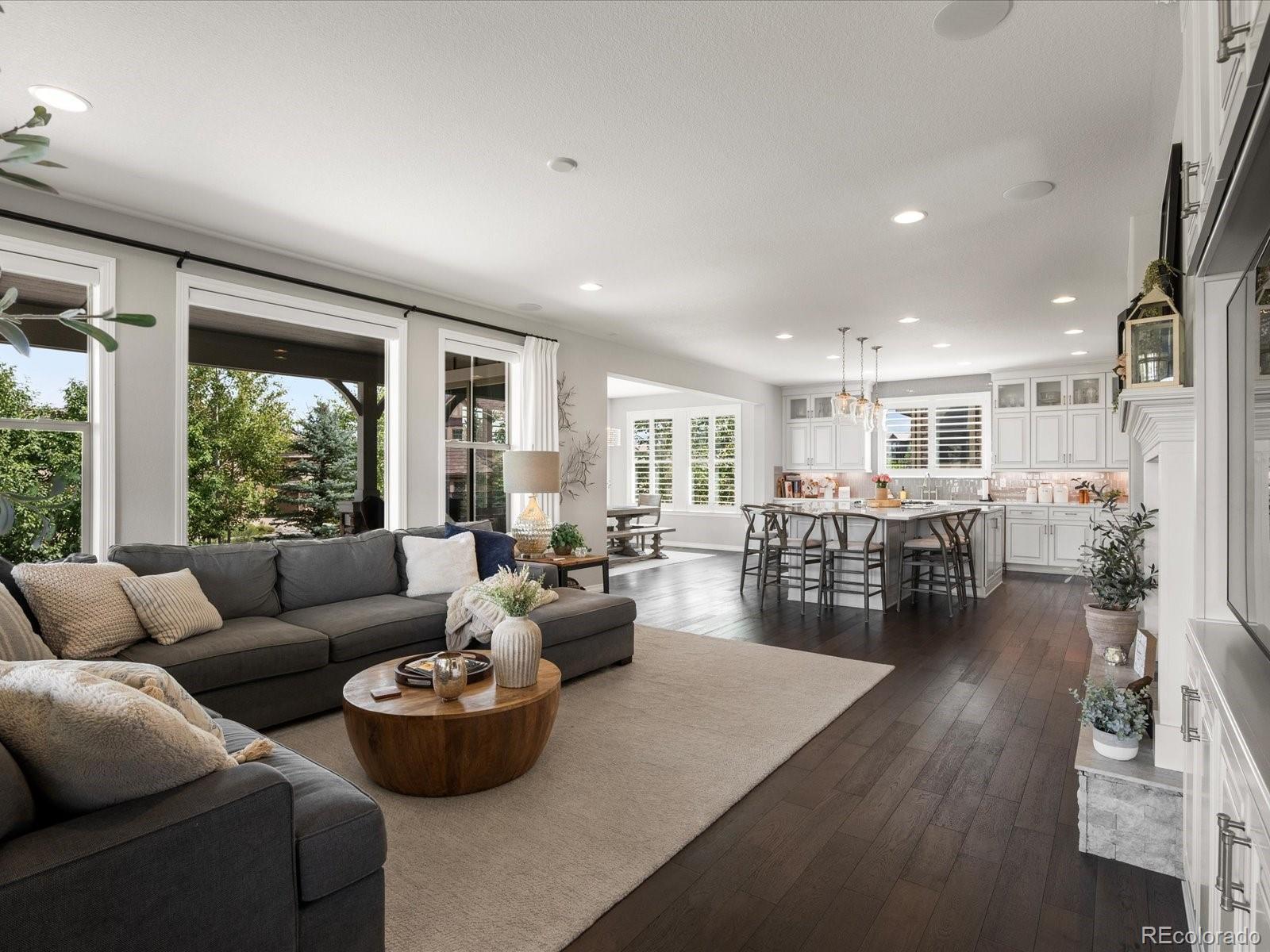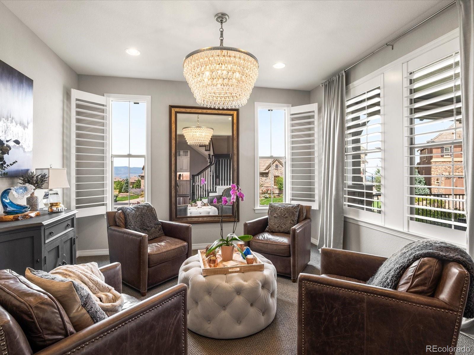 Welcome to this stunning 6-bedroom, 6-bathroom home in the highly sought-after Backcountry neighborhood of Highlands Ranch, where breathtaking sunsets and mountain views can be enjoyed from the expansive wraparound back patio. The professionally landscaped yard is perfect for entertaining, offering space to play, lounge by the gas fire pit, or dine under the Colorado sky. Inside, the main floor showcases a massive chef’s kitchen with butler’s space, two pantries, a huge island with new quartz countertops and farmhouse sink, a spacious living room wrapped in windows with remote-controlled treatments and a cozy fireplace, a formal dining room, a private office, a bedroom with en-suite bath, plus a half bath and laundry room. Upstairs features four additional bedrooms and three full bathrooms, including a luxurious primary suite with fireplace and spa-like 5-piece en-suite. The finished basement boasts a large rec room with surround sound for movie nights, a guest bedroom with full bath, and over 1,190 sq ft of unfinished space ready for your vision. With three garage spaces, designer finishes, and resort-style community amenities, this Backcountry beauty is the perfect blend of luxury and comfort. Note: Please check out property website at https://justpendeddenver.hd.pics/751-Winding-Pine-Ln