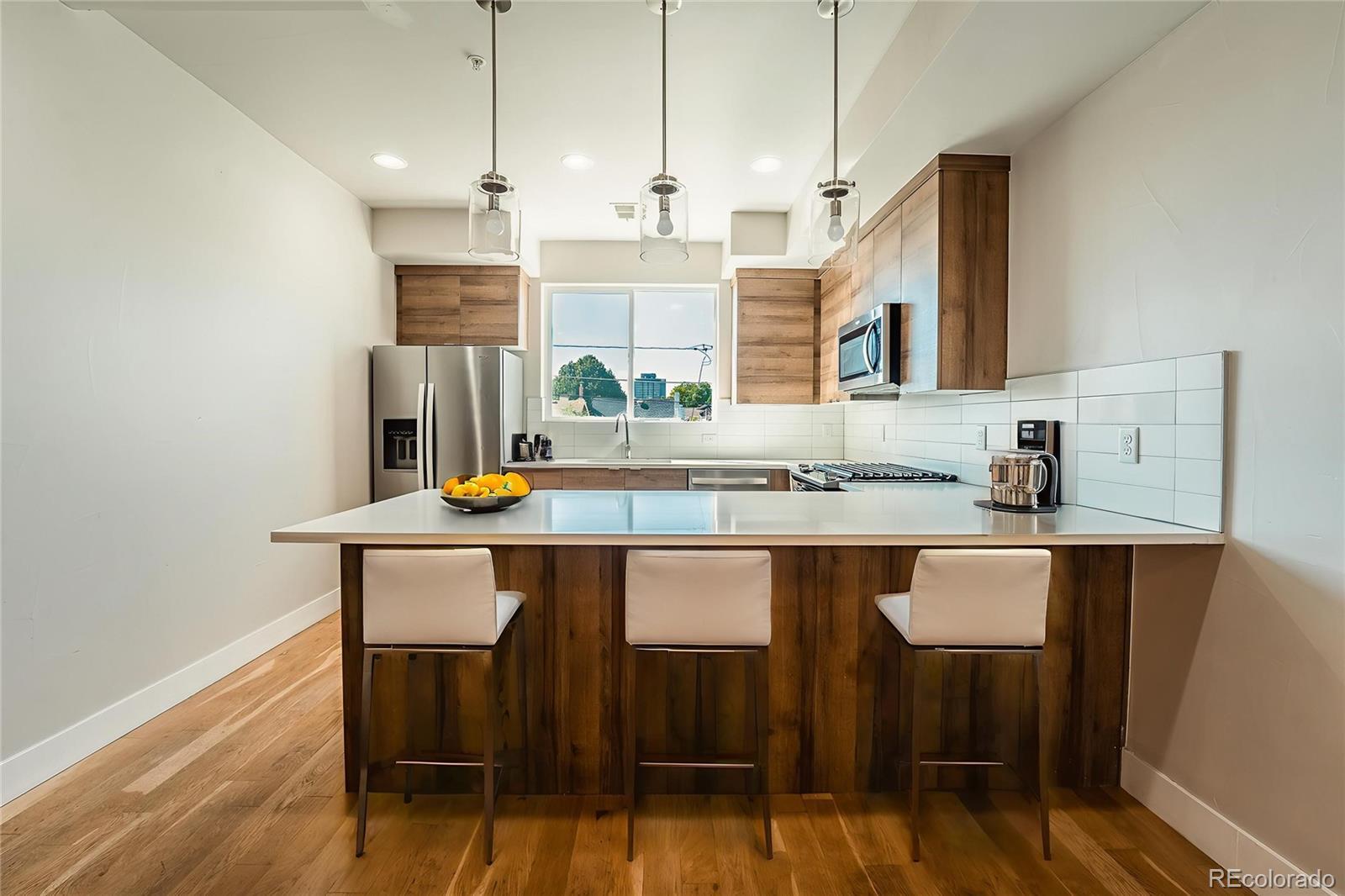The property qualifies for a $5,000 Home Purchase Grant! Call Kenyon today to schedule your private showing - 505-699-3603 Welcome to your dream home in Denver’s highly desirable Sloan’s Lake neighborhood! Just two blocks from the lake, this modern 2-bedroom, 3-bath townhome offers the perfect blend of sleek design, natural light and unbeatable location. Step inside to a bright, open floor plan with stylish finishes throughout - hardwood flooring, quartz countertops, and stainless steel appliances. The second level flows seamlessly from the living area to the kitchen, making it perfect for both everyday living and entertaining. Both bedrooms feature en-suite bathrooms, with the primary suite offering a private balcony - your first of two outdoor retreats. The show-stopping rooftop deck provides expansive 360-degree views of the Denver skyline and Rocky Mountains, ideal for summer BBQs, lounging under the stars, or soaking in those famous Colorado sunsets. Situated on a quiet street yet moments from some of Denver’s most popular restaurants, coffee shops, and parks, you’ll enjoy both city convenience and outdoor adventure. With quick access to Downtown Denver, Edgewater Public Market, and a light rail station, commuting and exploring are effortless. This move-in ready Sloan’s Lake townhome combines modern design, functional living, and iconic Denver lifestyle. Don’t miss your chance to call one of Denver’s most sought-after neighborhoods home!